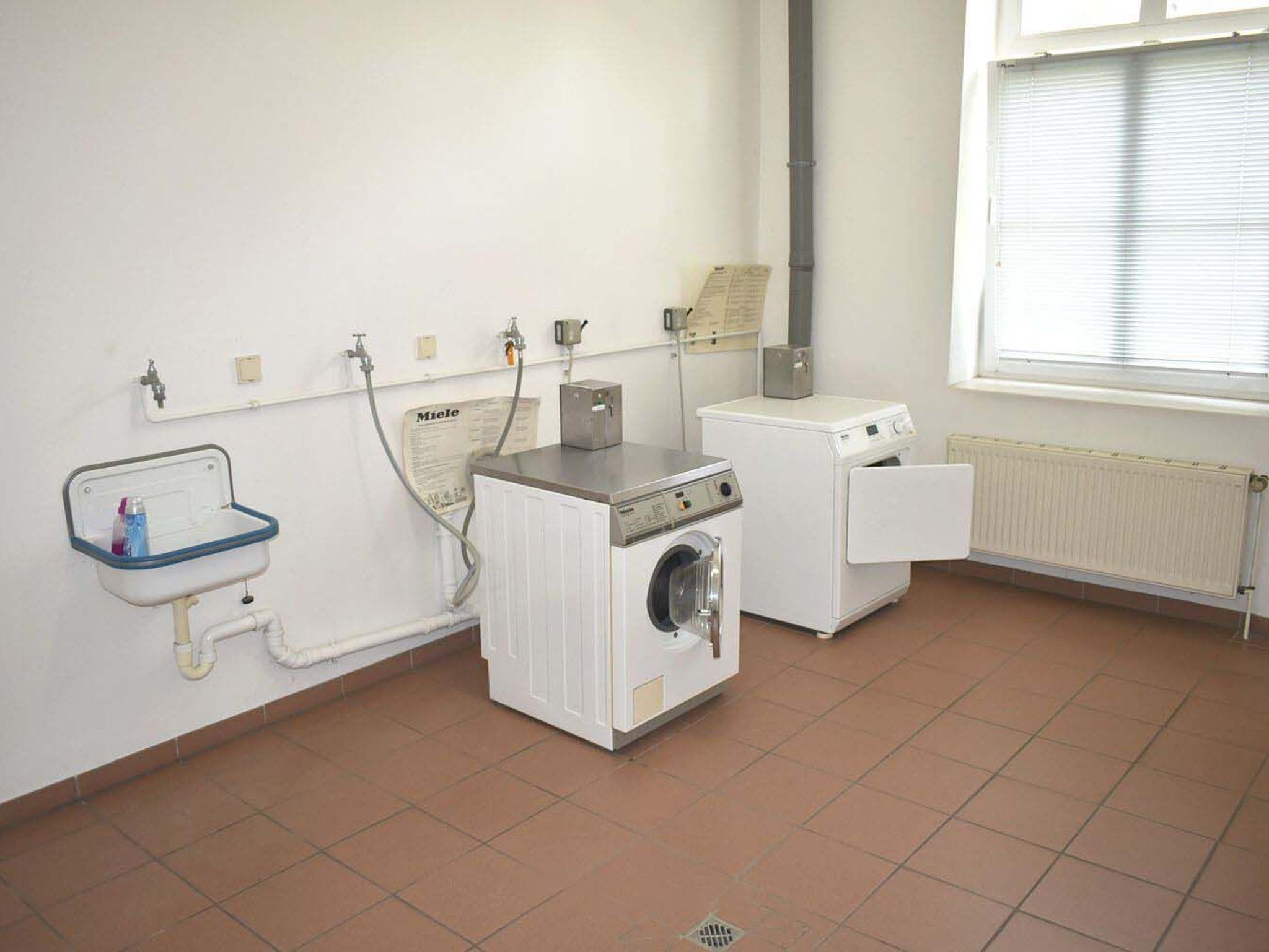 Waschraum: Münzwaschmaschine und Trockner befinden sich im Erdgeschoss