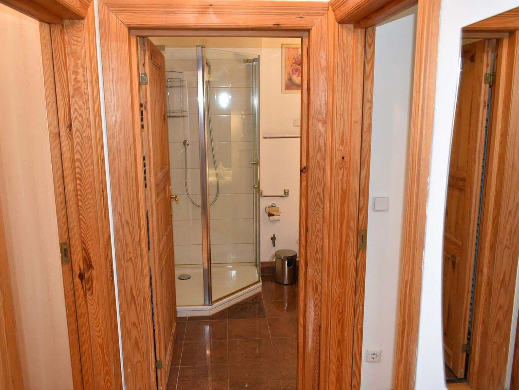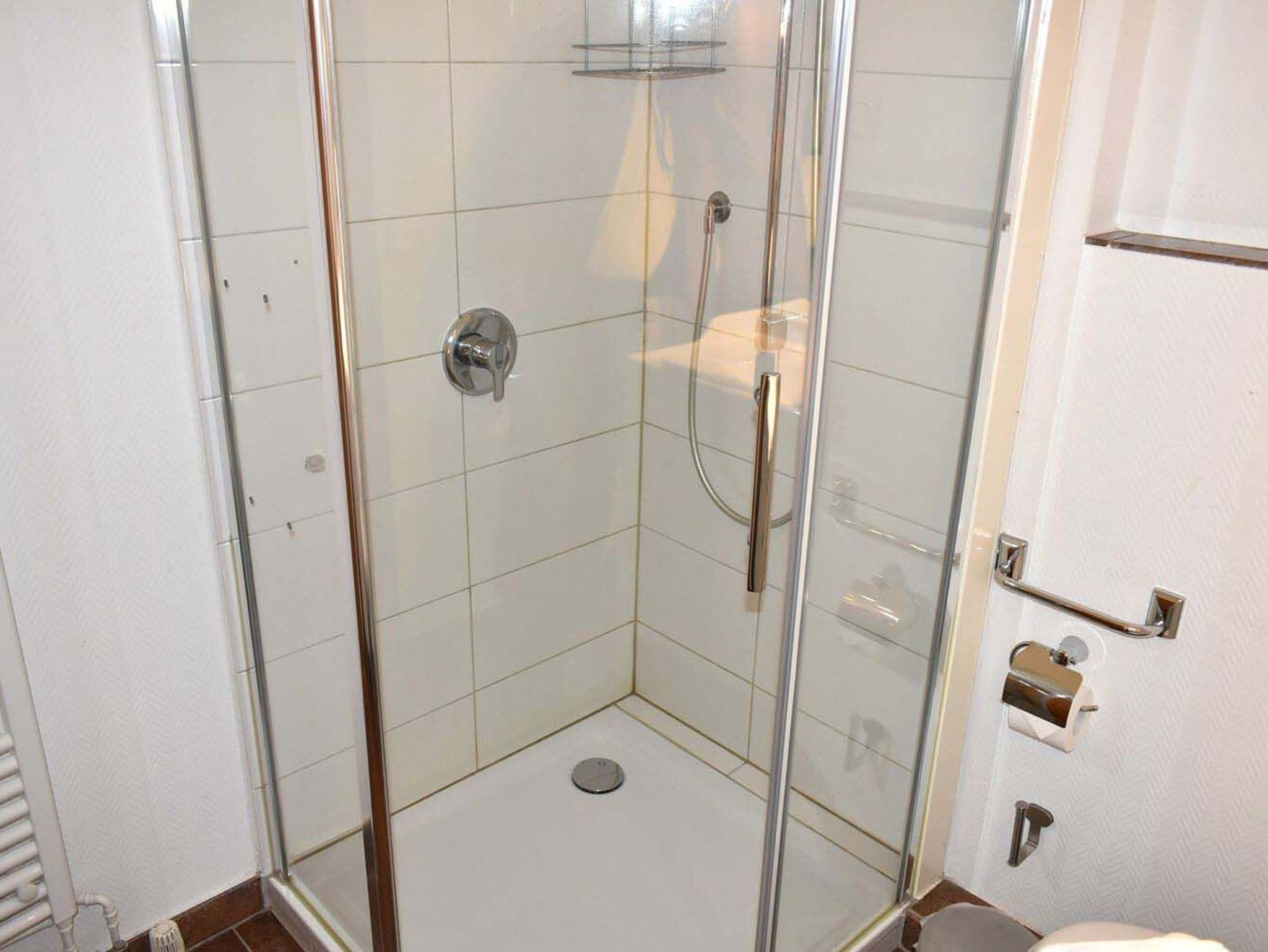 Bad 1: Dusche, Duschkabine, Fön, Handtuchheizung, Kosmetikspiegel, Spiegel, Waschtisch mit Unterschrank, WC