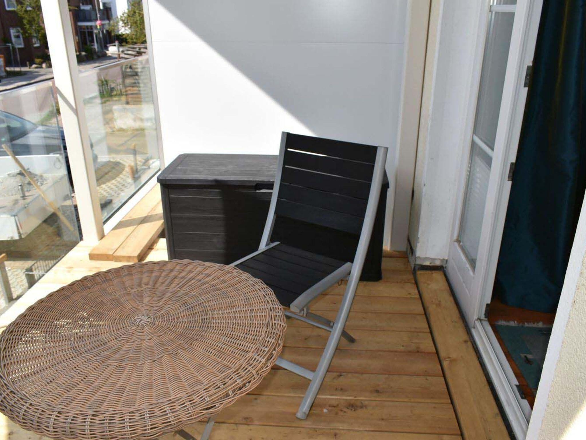 Balkon: 2 Stühle, Nachmittagssonne, Tisch