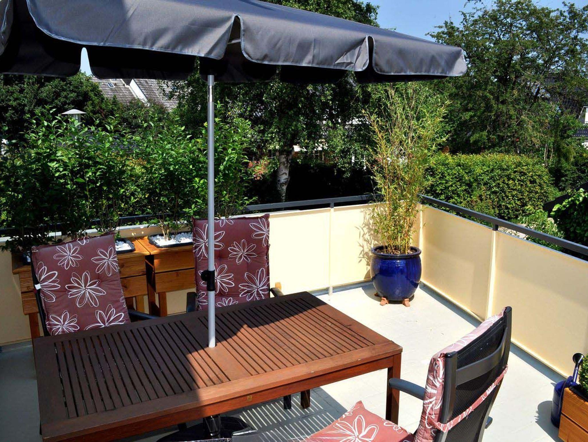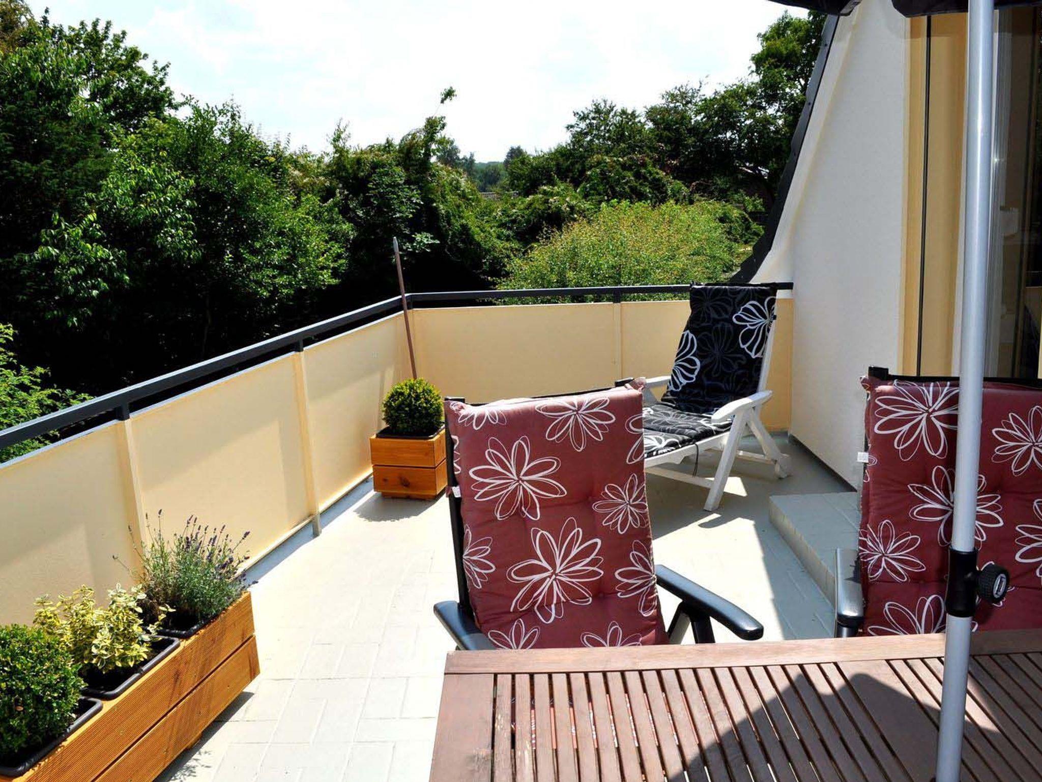Balkon: 4 Stühle, Liege, Sonnenschirm, Süd- Ostlage, Tisch