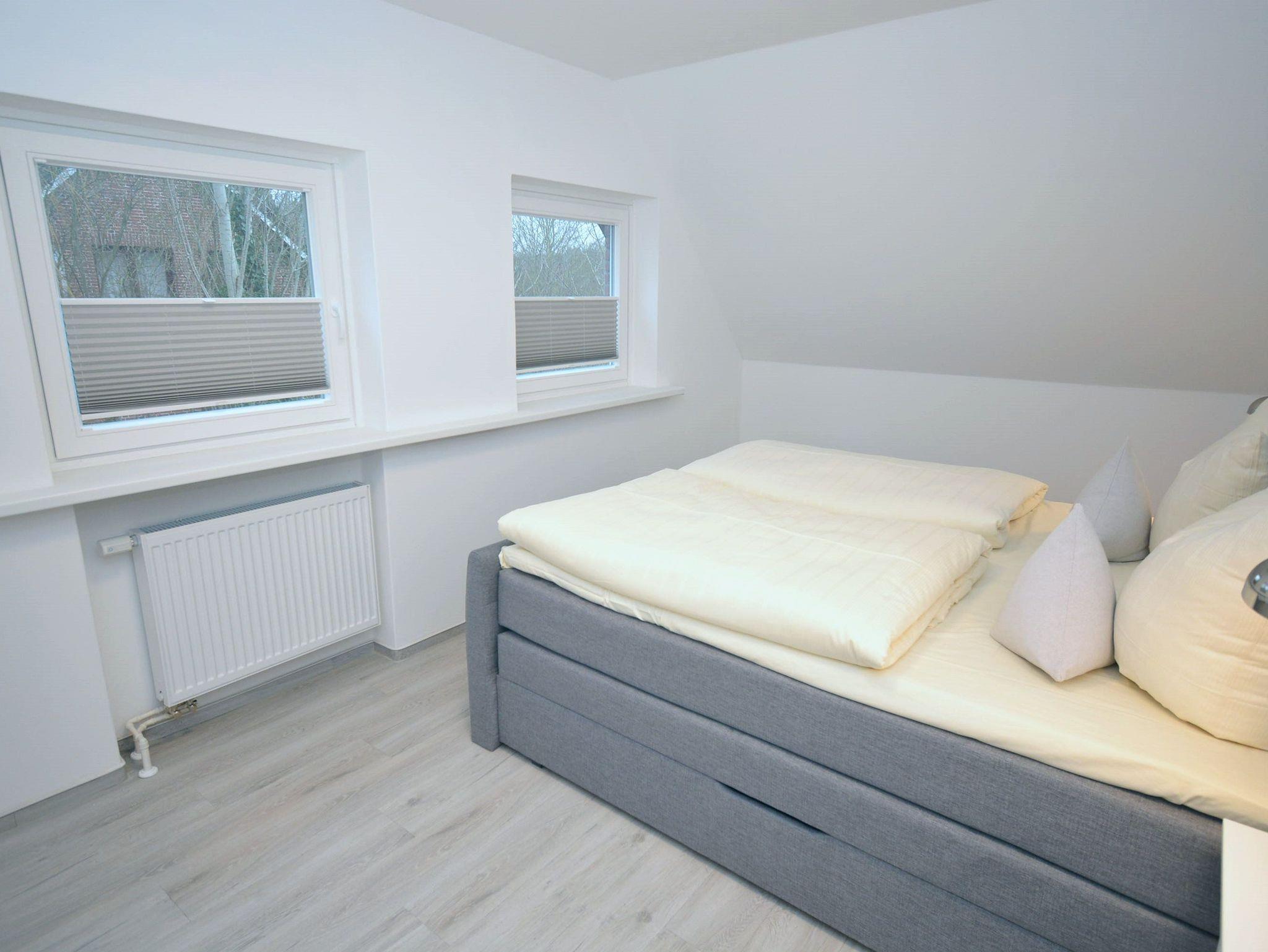Schlafzimmer 1: Kleiderschrank, 1 Matratze, 2 Nachttische, 2 Nachttischlampen, Boxspringbett 2,00 x 1,80, Flachbildschirm, Kabel-TV, Kommode, Verdunklungsplissee