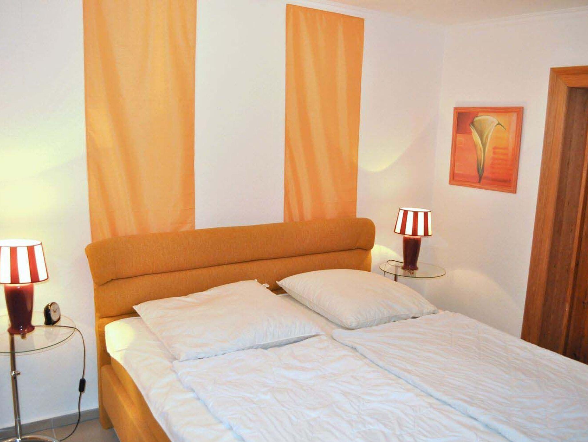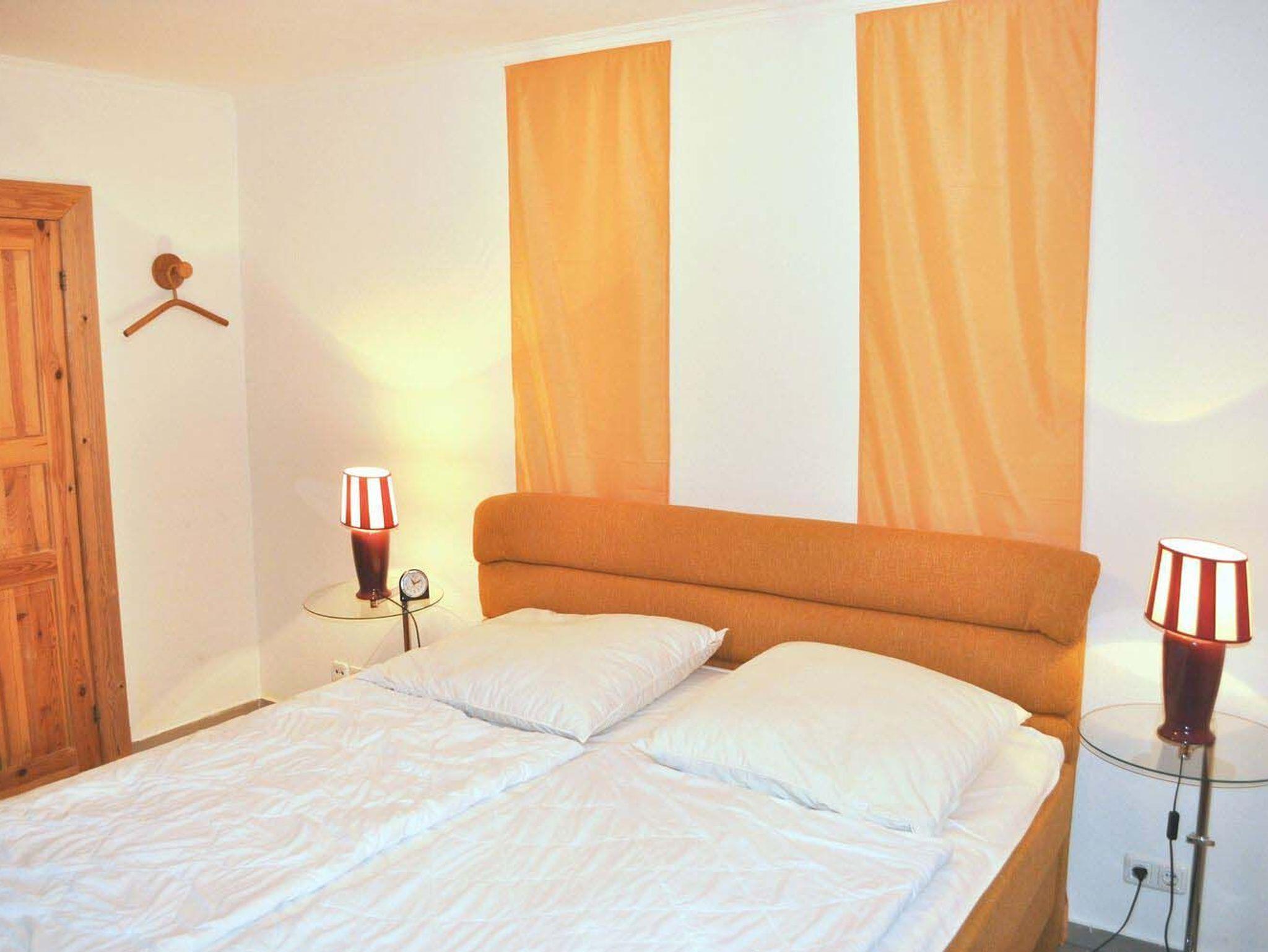 Schlafzimmer 1: 1 Matratze, 2 Nachttische, 2 Tischlampen, Boxspringbett 2,00 x 1,80 m, Bügeleisen, Fliegenschutzgitter, Staubsauger, Wäscheständer, Wischer mit Eimer