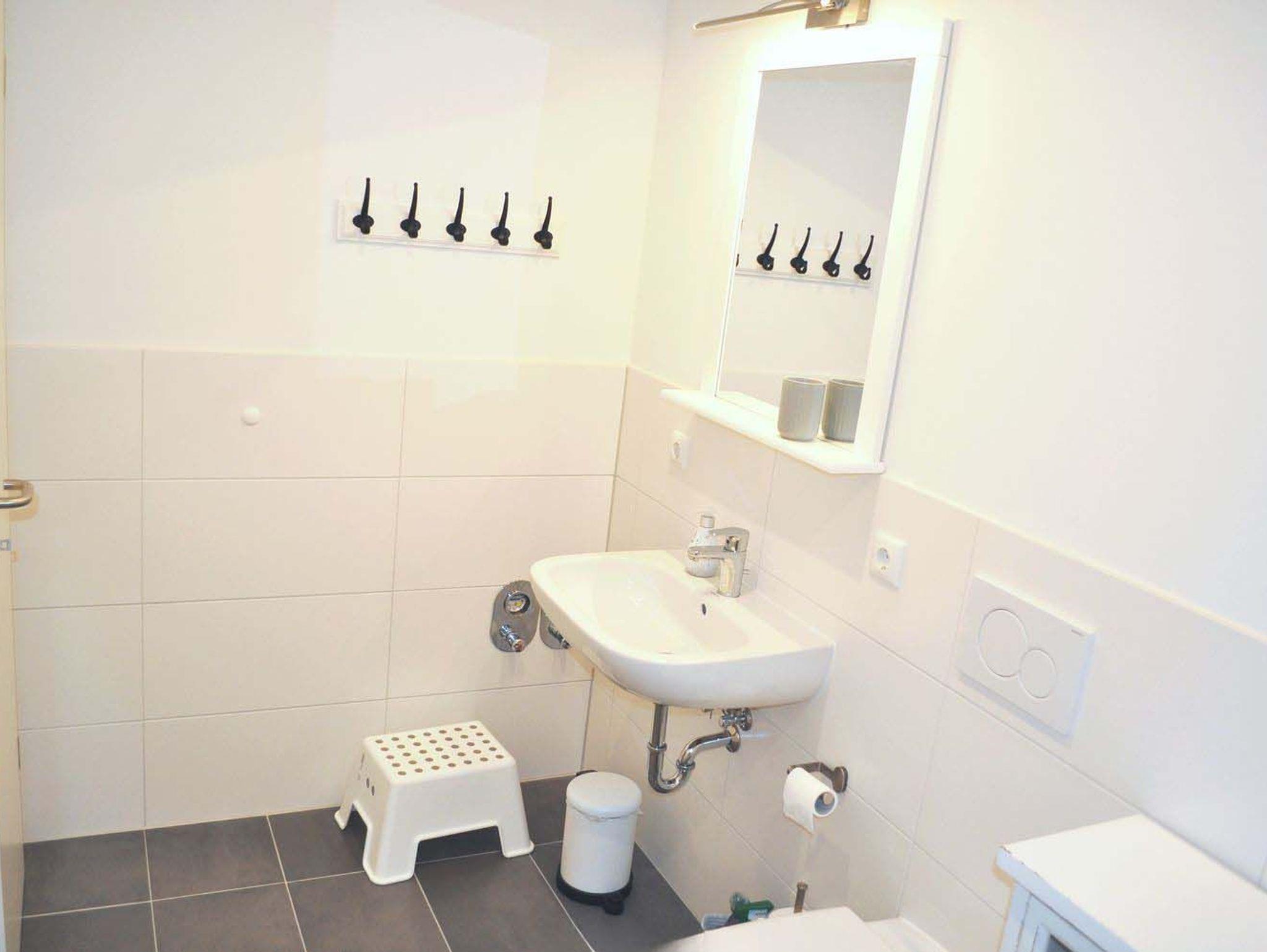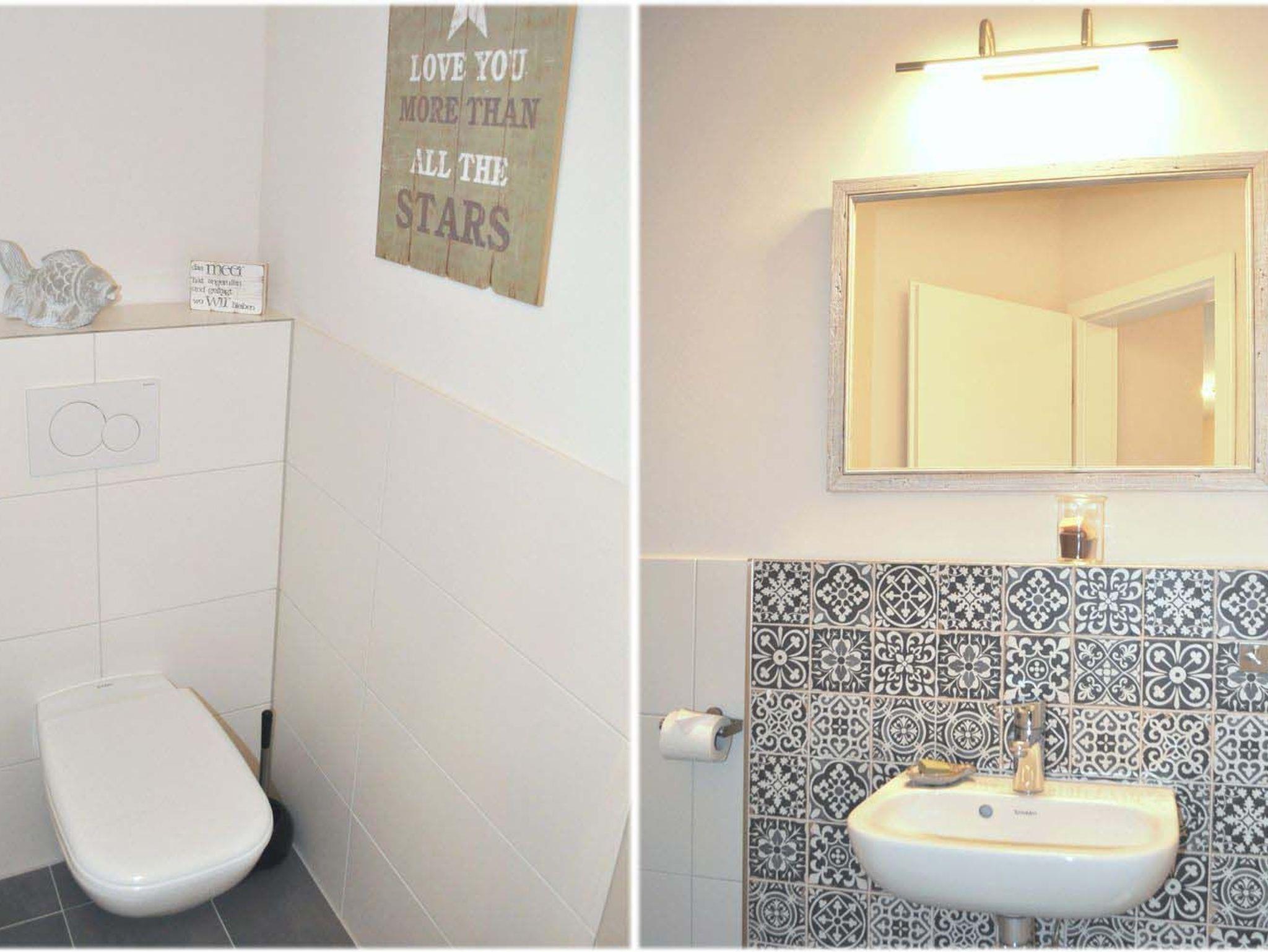Gäste-WC: WC, Waschbecken, Spiegel, Fußbodenheizung