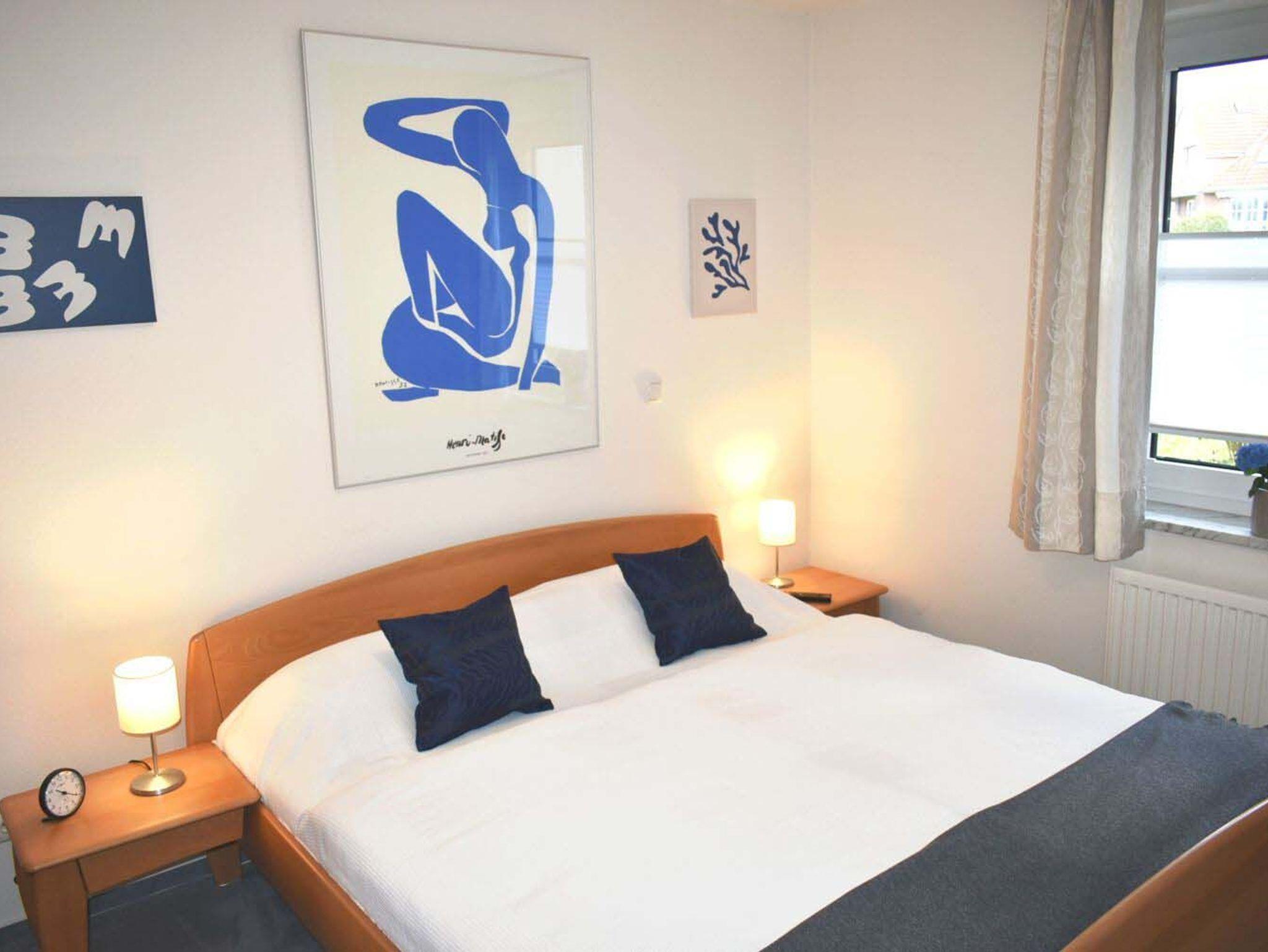 Schlafzimmer 1: 2 Matratzen, 2 Nachttische, Bügelbrett, Bügeleisen, Doppelbett 2,00 x 1,80 m, Flachbildschirm, Kabel-TV, Kleiderschrank, Spiegel, Staubsauger, Wäscheständer