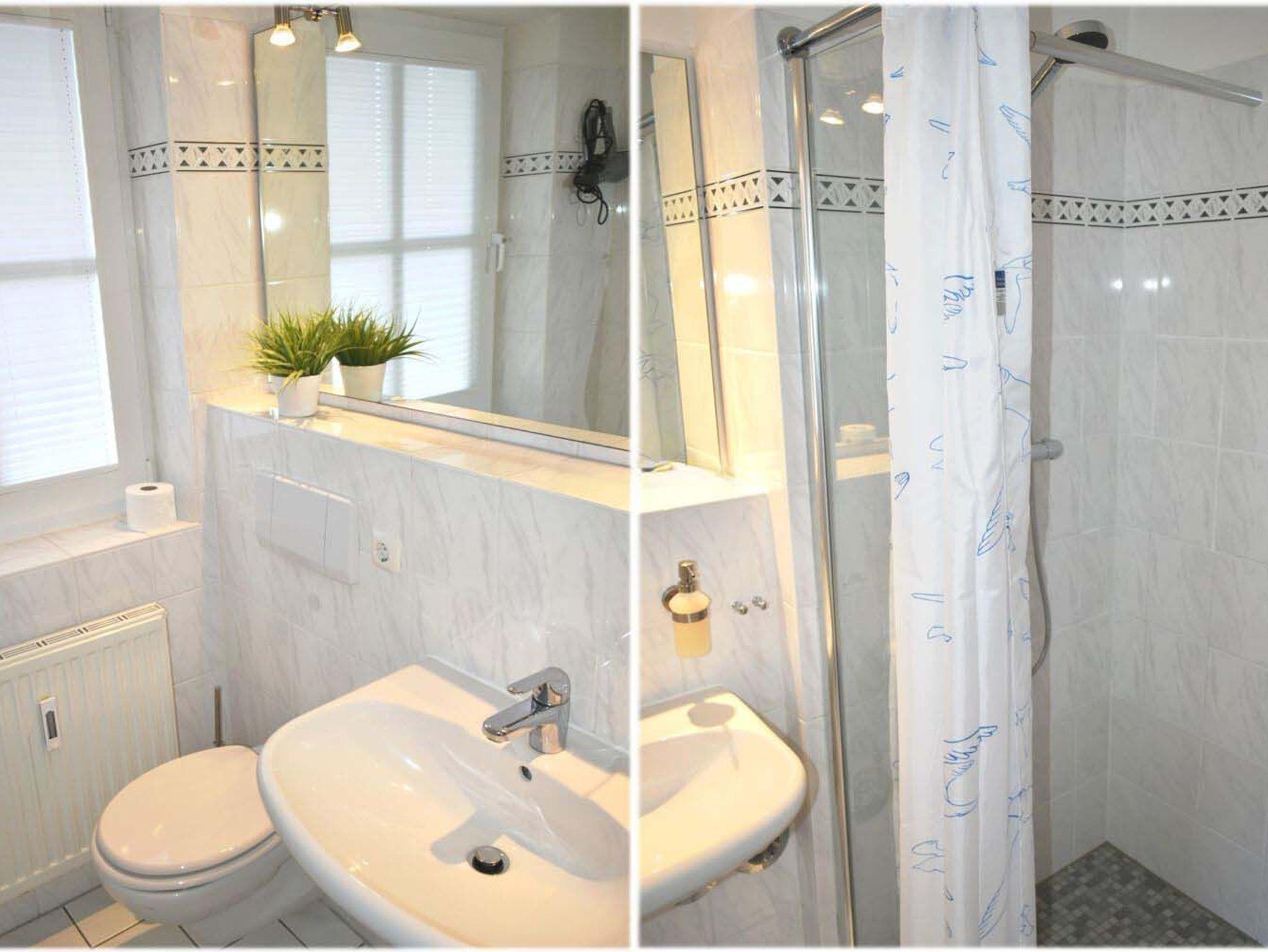 Bad 1: Dusche, Dusche bodengleich, Fön, Waschbecken, WC