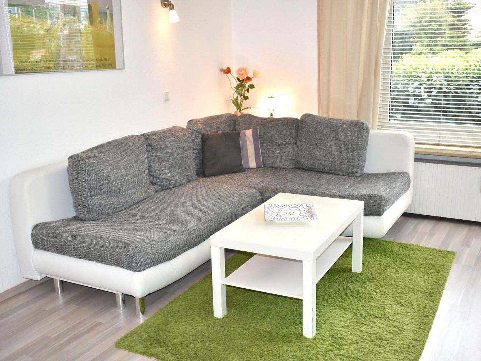 Wohnzimmer: 3 Stühle, 4 Plattenherd mit Ceranfeld und Backofen, Anrichte, Couchtisch, Dunstabzugshaube, DVD-Player, Eckschlafcouch, Esstisch, Flachbildschirm, Geschirr, Handmixer, Kabel-TV, Kaffeemaschine, Kochtöpfe, Küchenzeile, Kühlschrank mit Gefrierfach, Mikrowelle, Spülmaschine, Stereoanlage mit CD-Player und USB-Anschluss, Tischlampe, Toaster, Wasserkocher