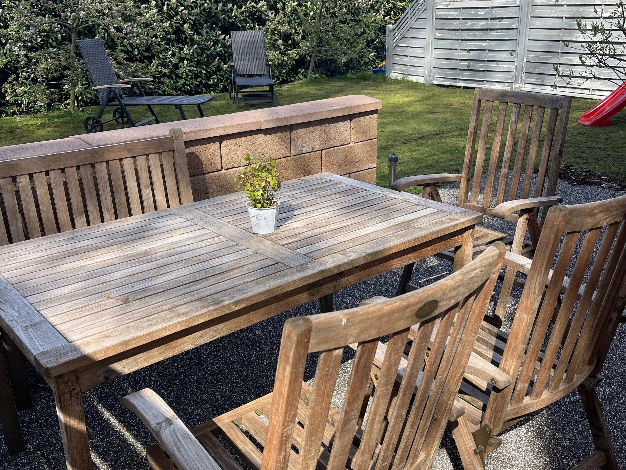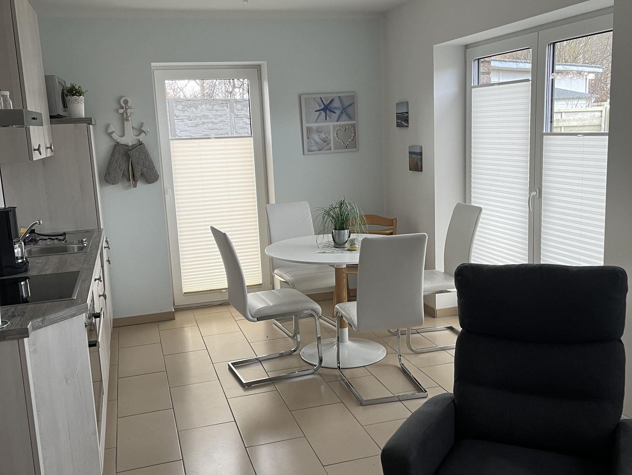Der Wohnbereich und Küchenbereich ist durch 3 Terrassentüren lichtdurchflutet und es gibt einen direkten Zugang zur Terrasse, wo ein Tisch mit vier Stühlen zur Verfügung steht. Ausserdem steht den Gästen ein Grill zur Verfügung .