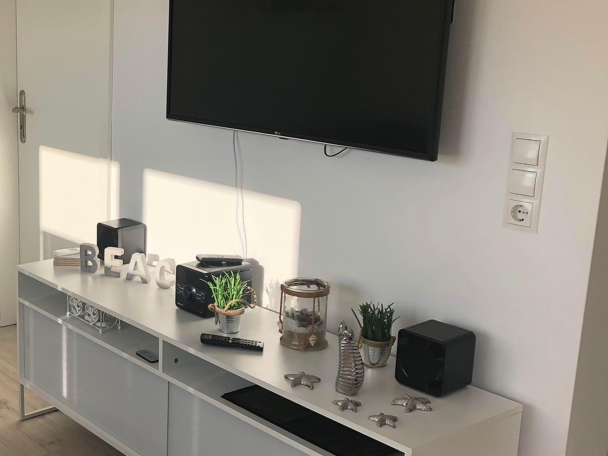 Im Wohnbereich gibt es eine gemütliche Sofaecke mit Flachbildschirm Smart TV,DVD Player und Radio. Einige Spiele und Bücher sind vorhanden.