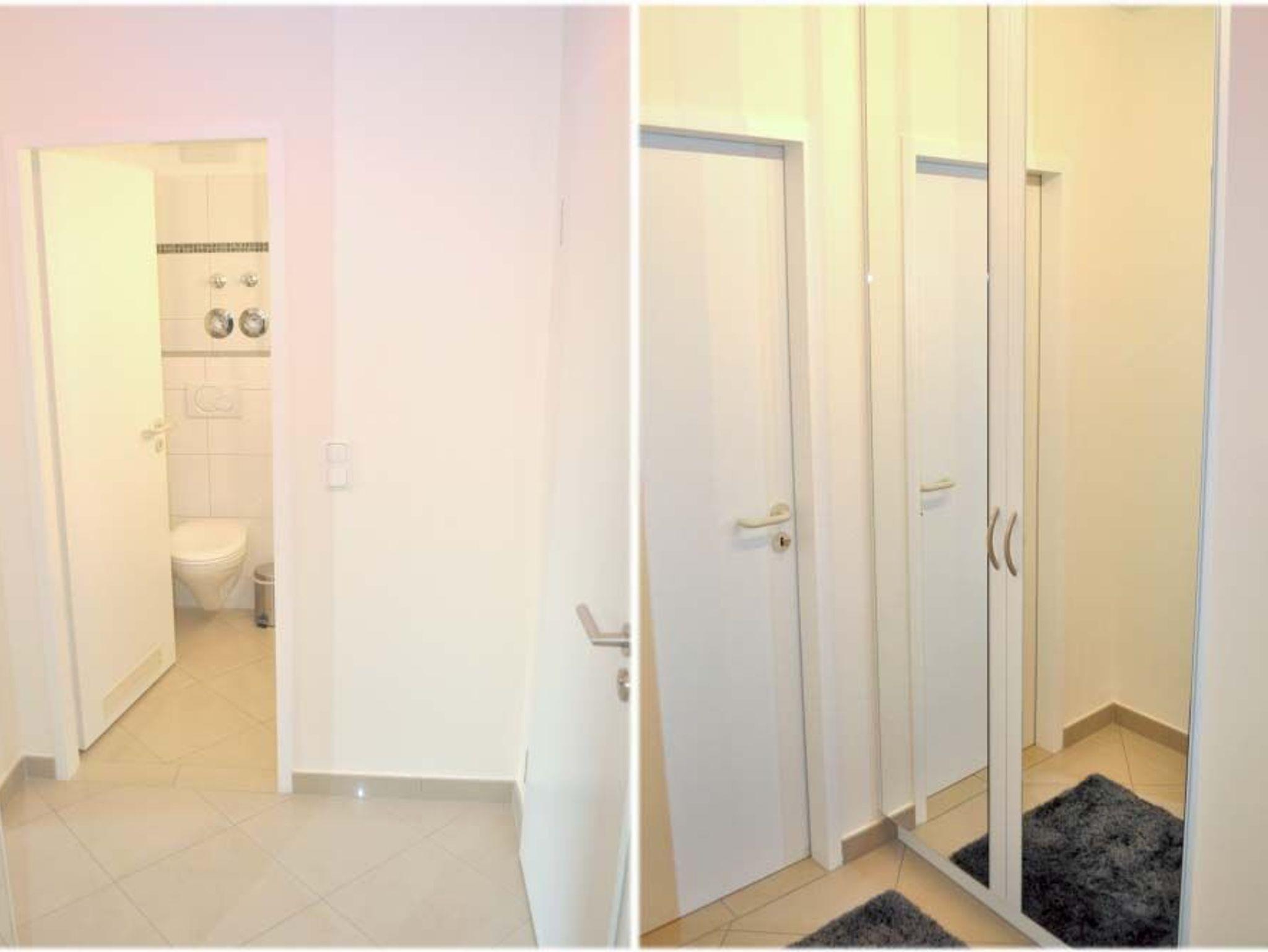 Flur: Einbaugarderobenschrank, Spiegel