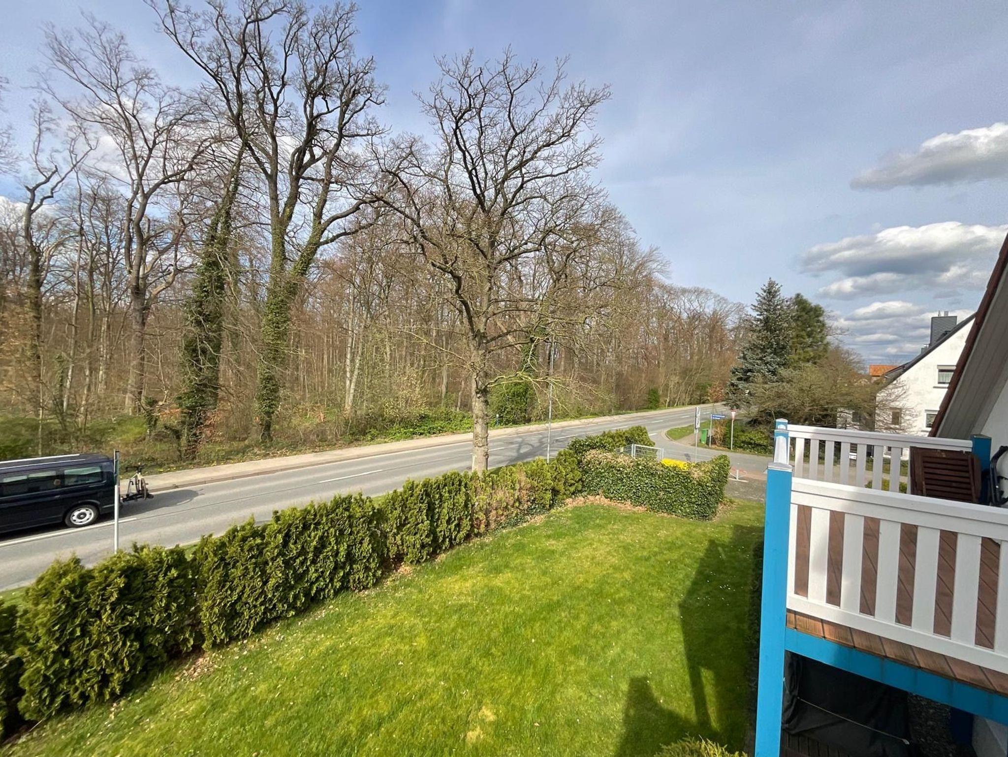 Der große Balkon mit Sitzmöbeln bietet zusätzlichen Platz zum Entspannen.