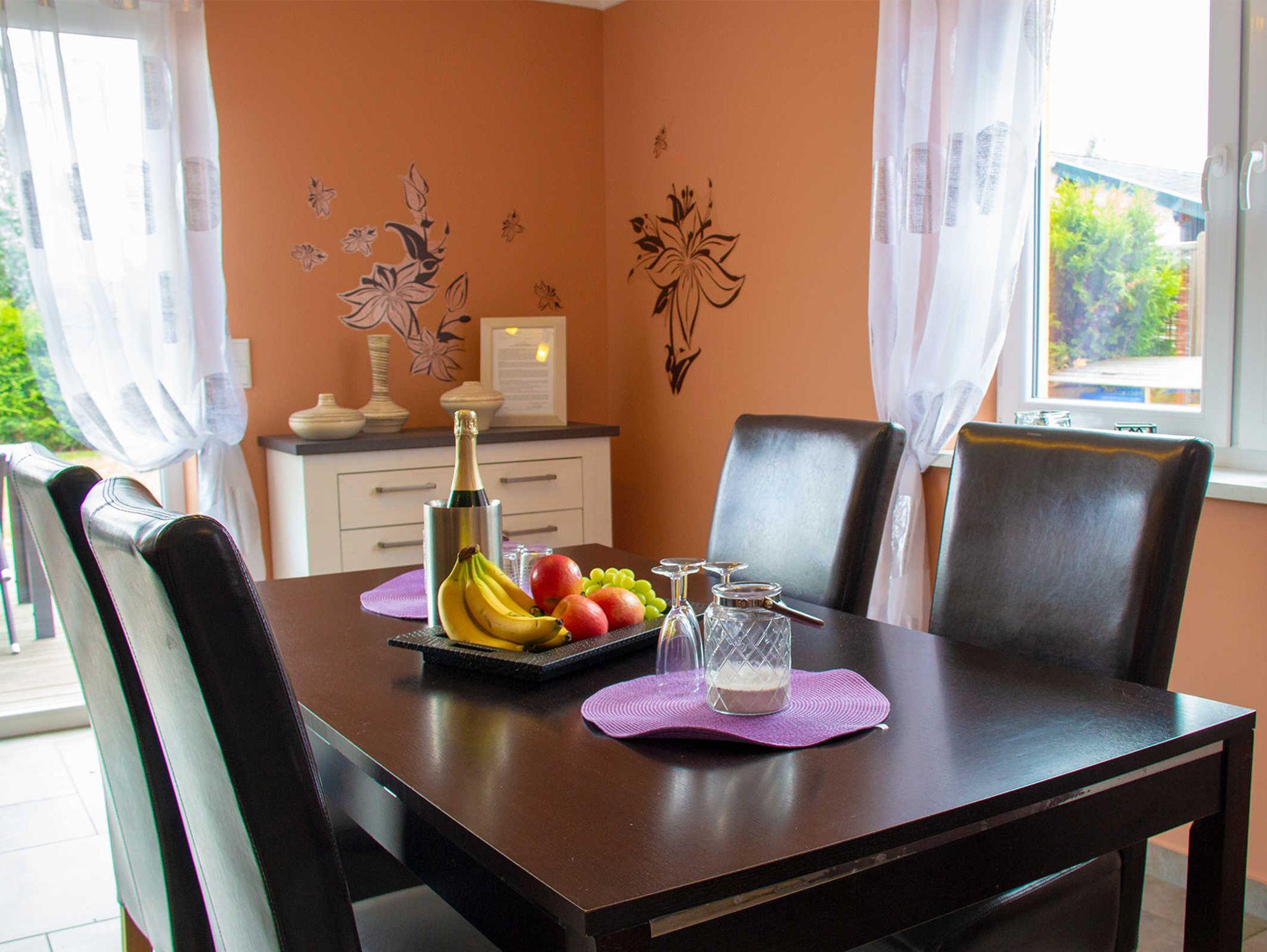 Das Erdgeschoss und die Bäder haben im Ferienhaus in Nienhagen einen Fußbodenheizung, alle Fenster haben Rollladen und die Terrasse verfügt über eine Markise.