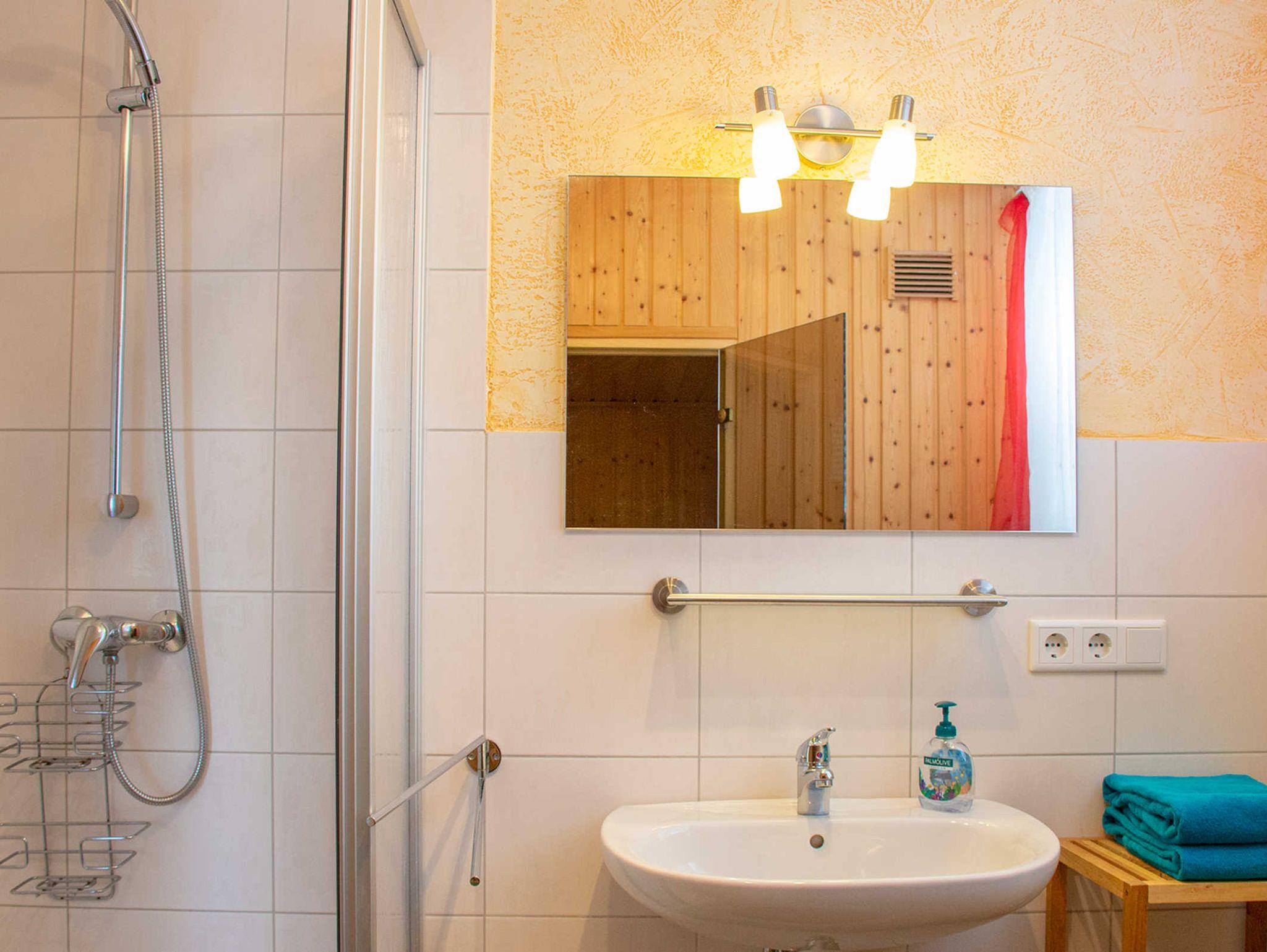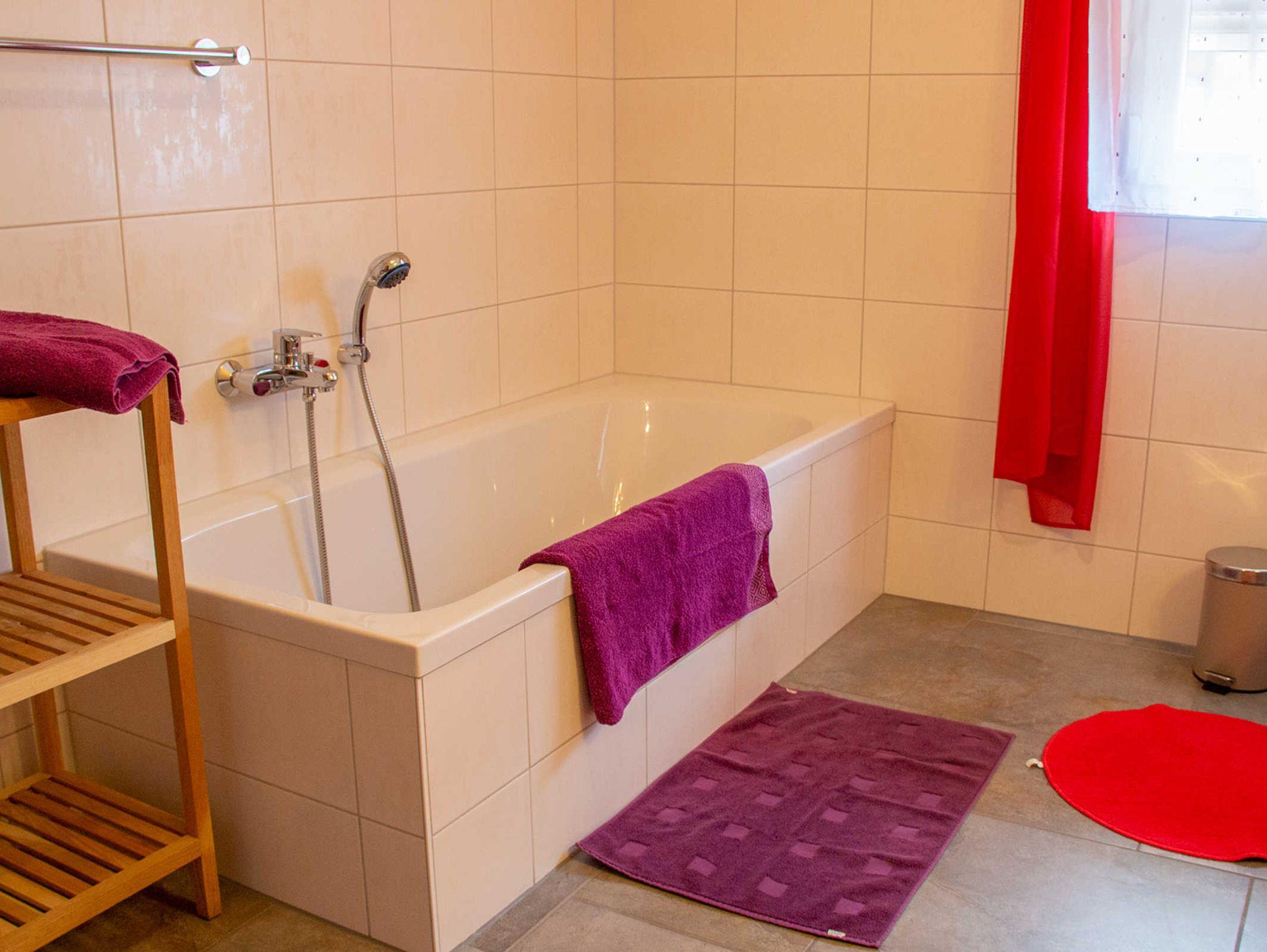 Das Ferienhaus in Nienhagen hat im Obergeschoss drei separate Schlafzimmer und ein Bad mit Dusche, Badewanne und Haartrockner. Im Erdgeschoss gibt es ein Wohnzimmer mit Kamin und angrenzender offener Küche, sowie ein Bad mit Dusche und Sauna. Zusätzlich stehen eine Schlafcouch, ein Kinderreisebett und ein Kinderhochstuhl zur Verfügung.