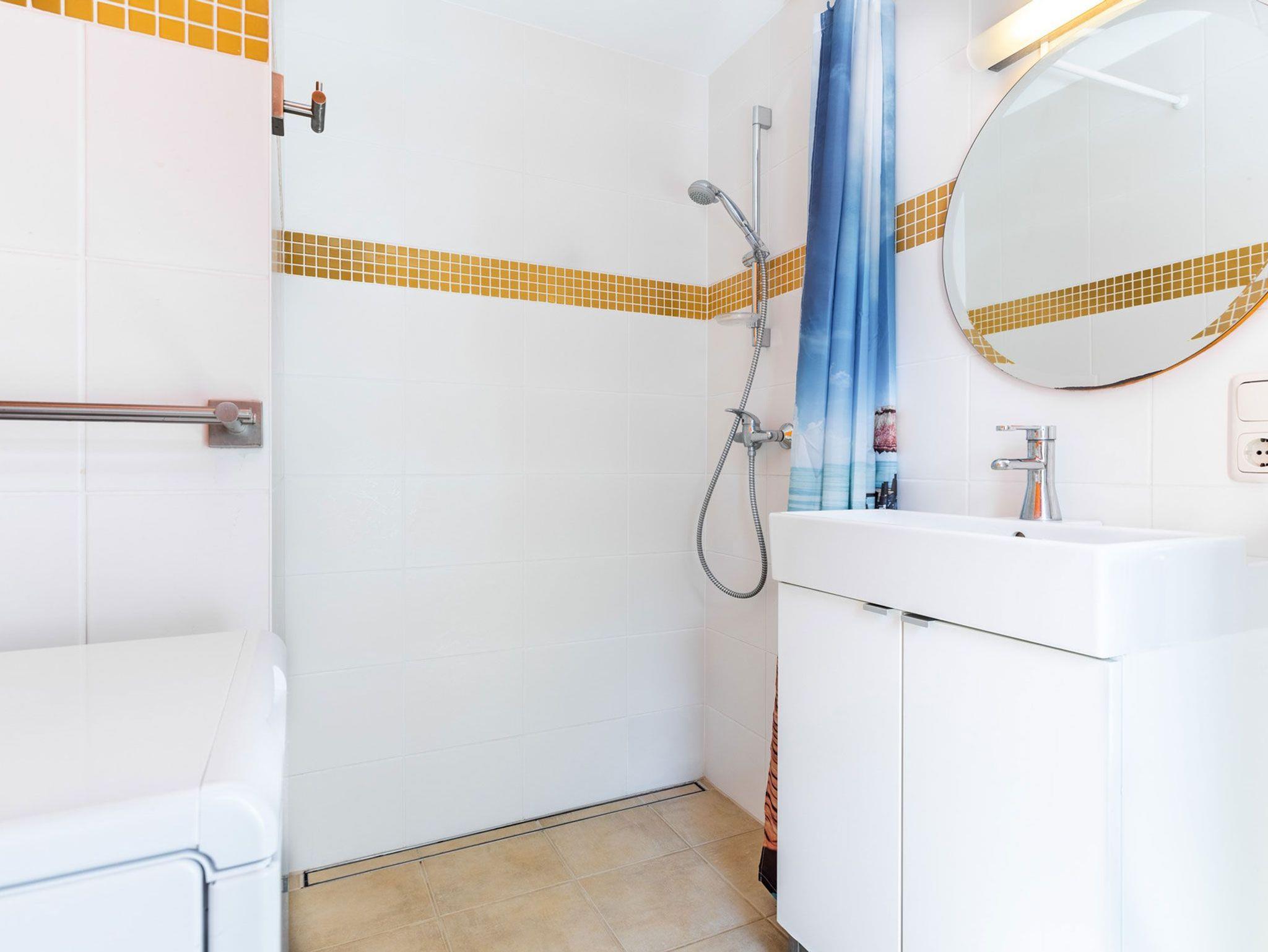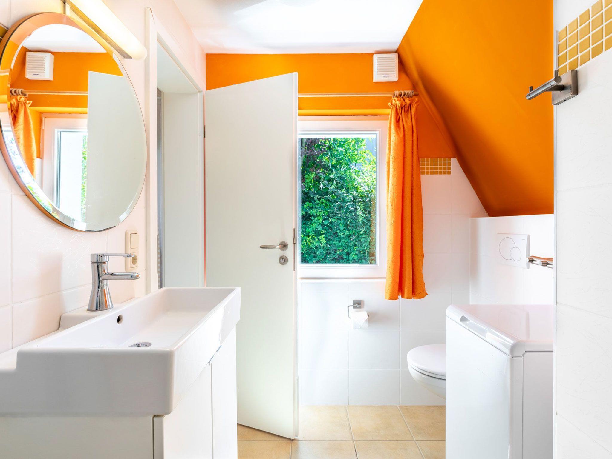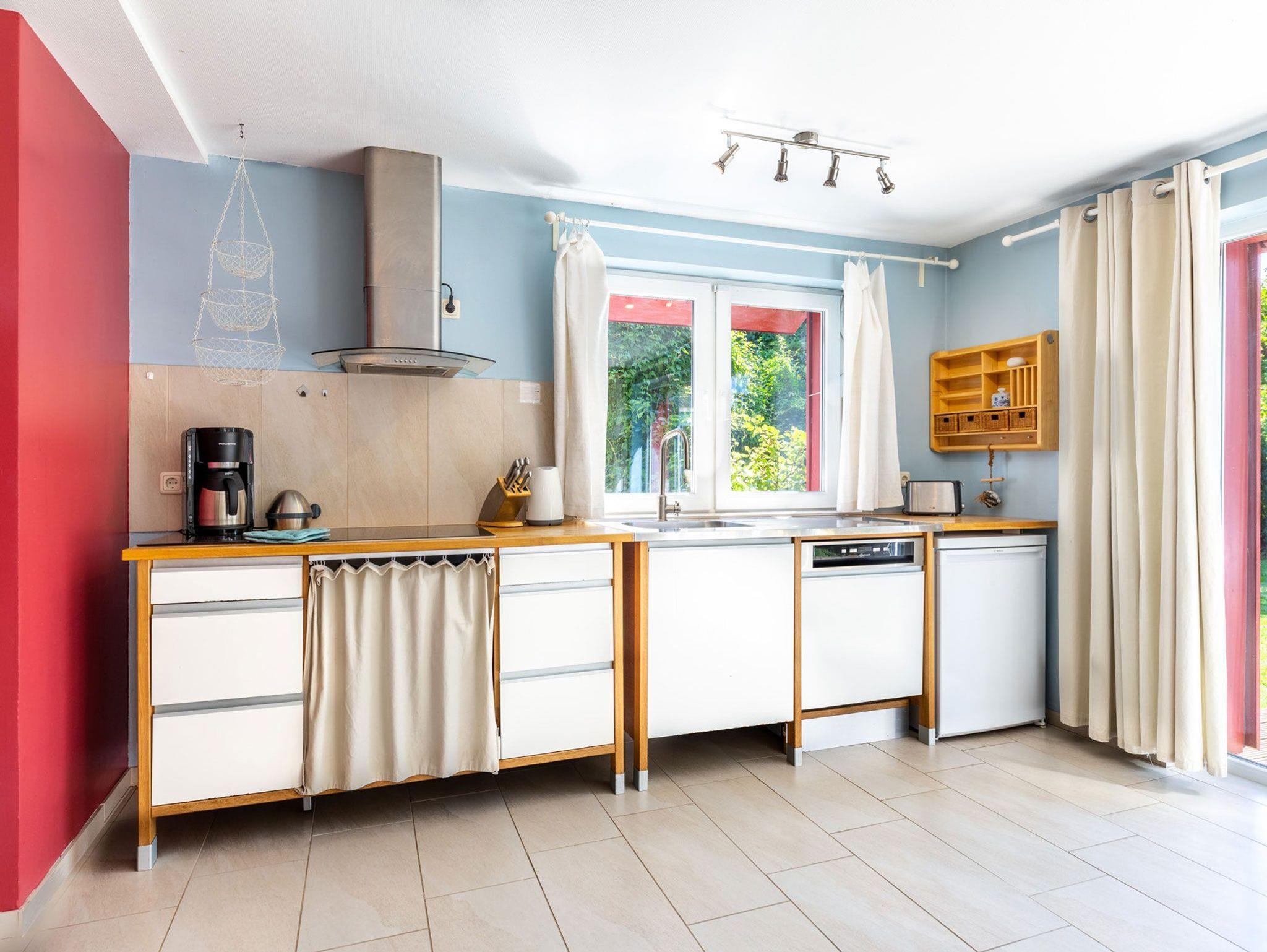 • Erdgeschoss: Grosses Wohnzimmer mit Essbereich mit Gartenblick und Terrassenzugang, Eßtisch, Sitzecke (Schlafcouch 1,60m x 2m im Erdgeschoß) mit Kaminofen und Flachbild- TV, Fussbodenheizung. Küchenzeile (Kühlschrank/ Gefrierfach, Induktionskochfeld (4 Kochfelder), Mikrowellenofen mit Grill/ Heissluft, Geschirrspüler. Duschbad/ WC (4,5m²).