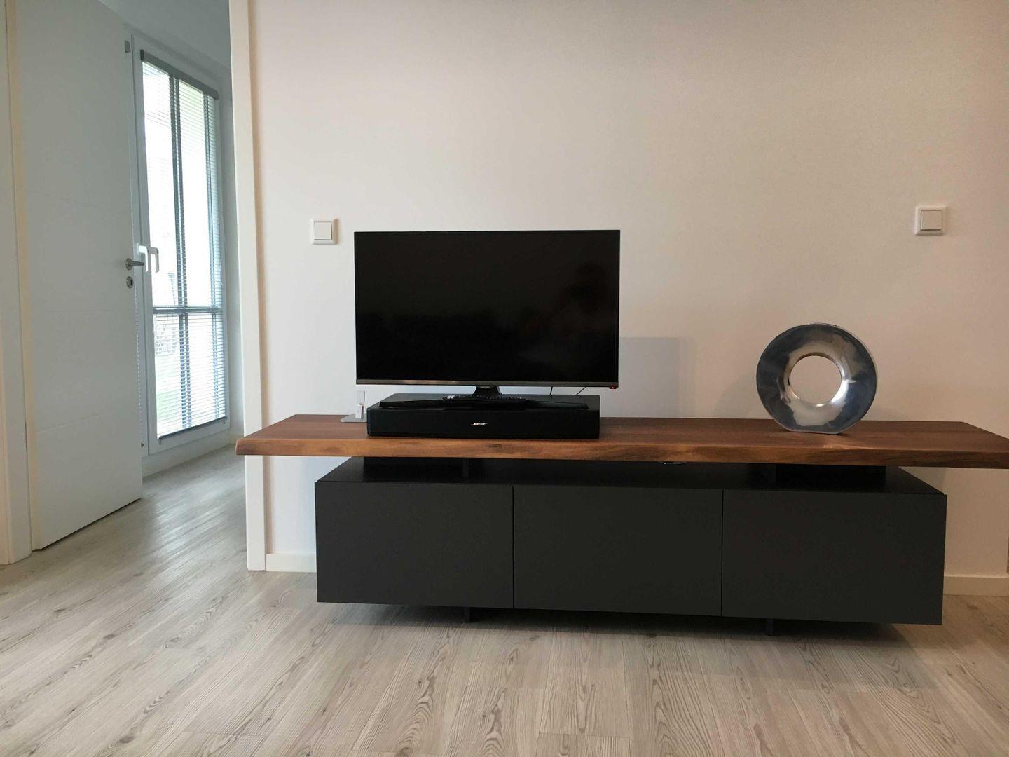 Im Wohnzimmer finden Sie eine schicke Couch 70x200, Flatscreen- TV und