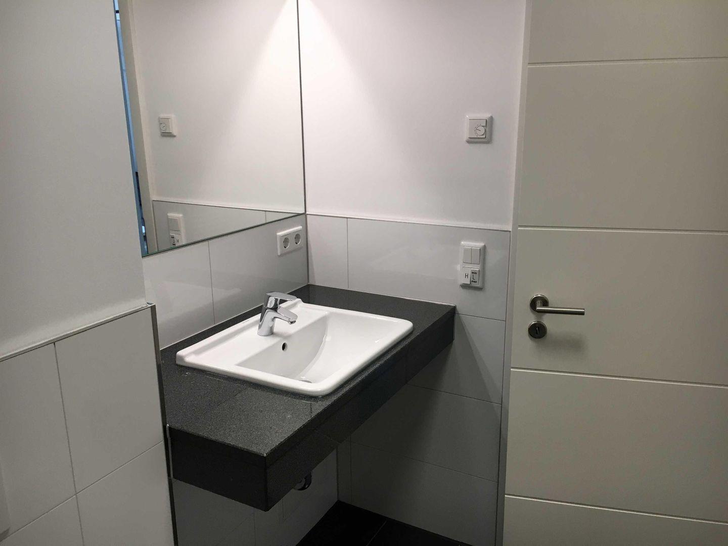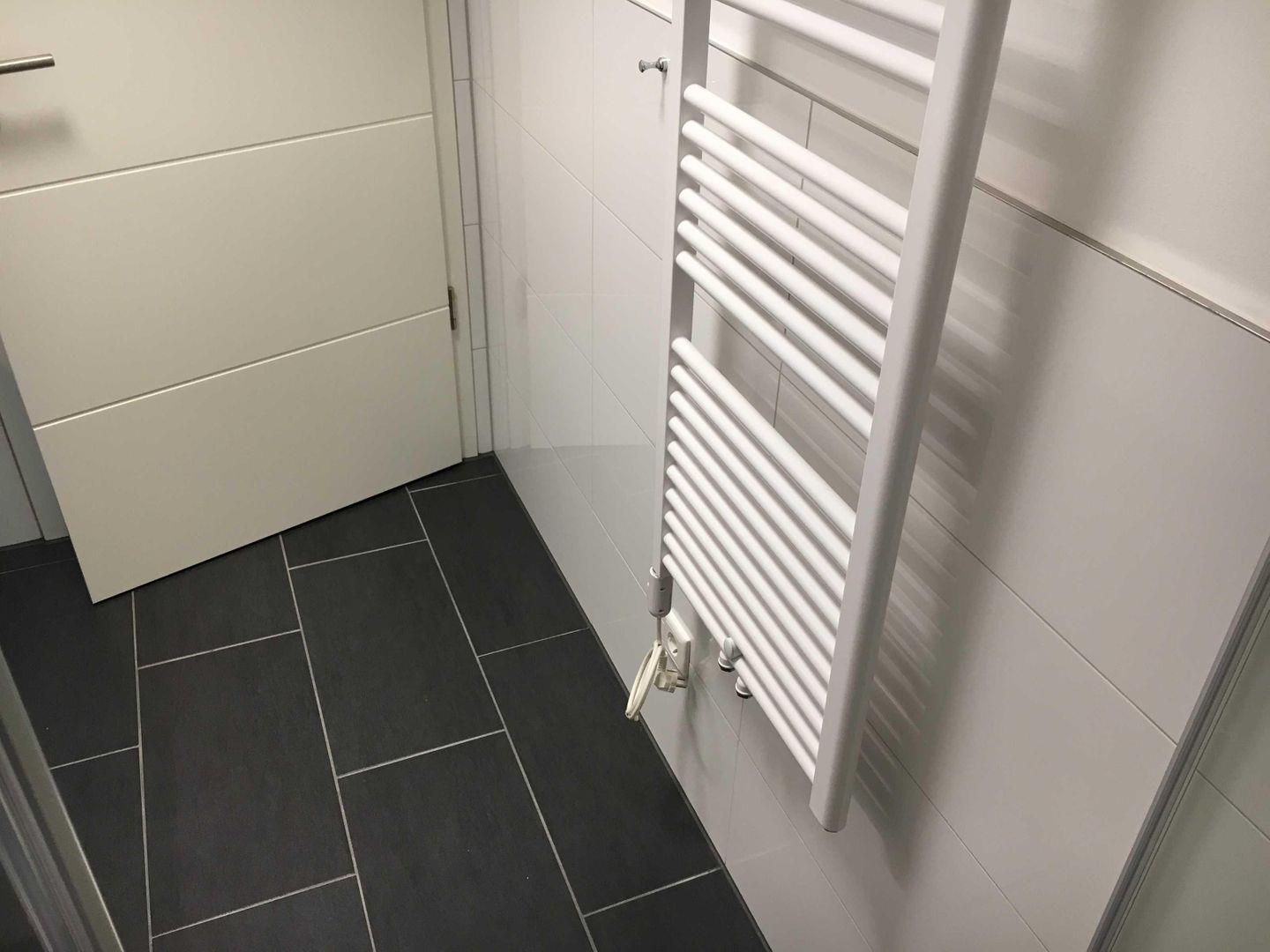 Im Bad ist eine begehbare, ebenerdige Dusche zum Wohlfühlen eingebaut.