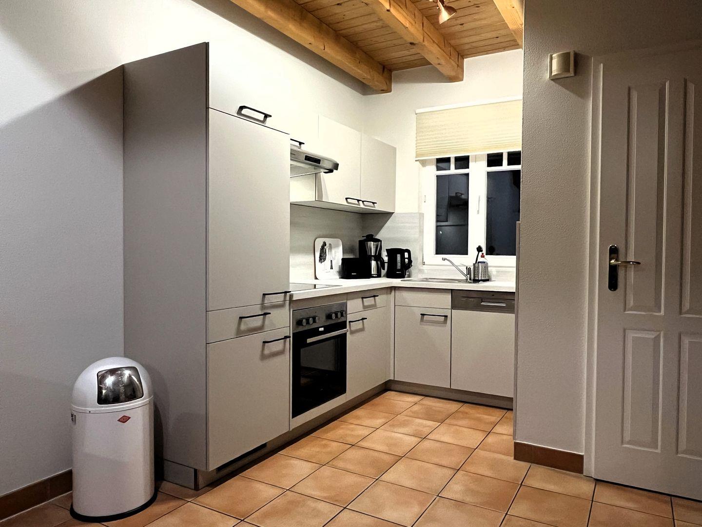 voll ausgestattete Küche (Herd, Backofen, Mikrowelle, Kühlschrank inkl. Gefrierfach, Geschirrspüler)