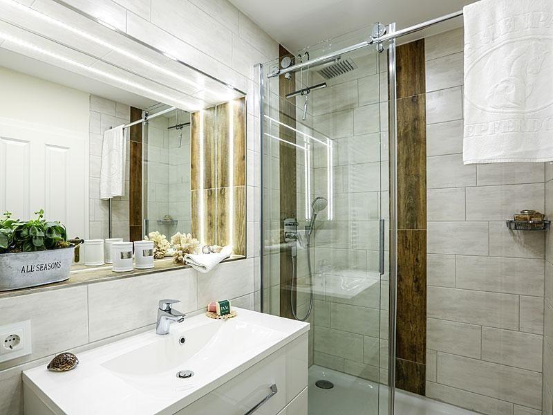 Das moderne Badezimmer bietet alles, was Sie für einen entspannten Start in den Tag brauchen: Dusche, WC, Waschbecken mit großzügigem Unterschrank, Handtuchtrockner und ausreichend Ablageflächen für Ihre Pflegeprodukte.