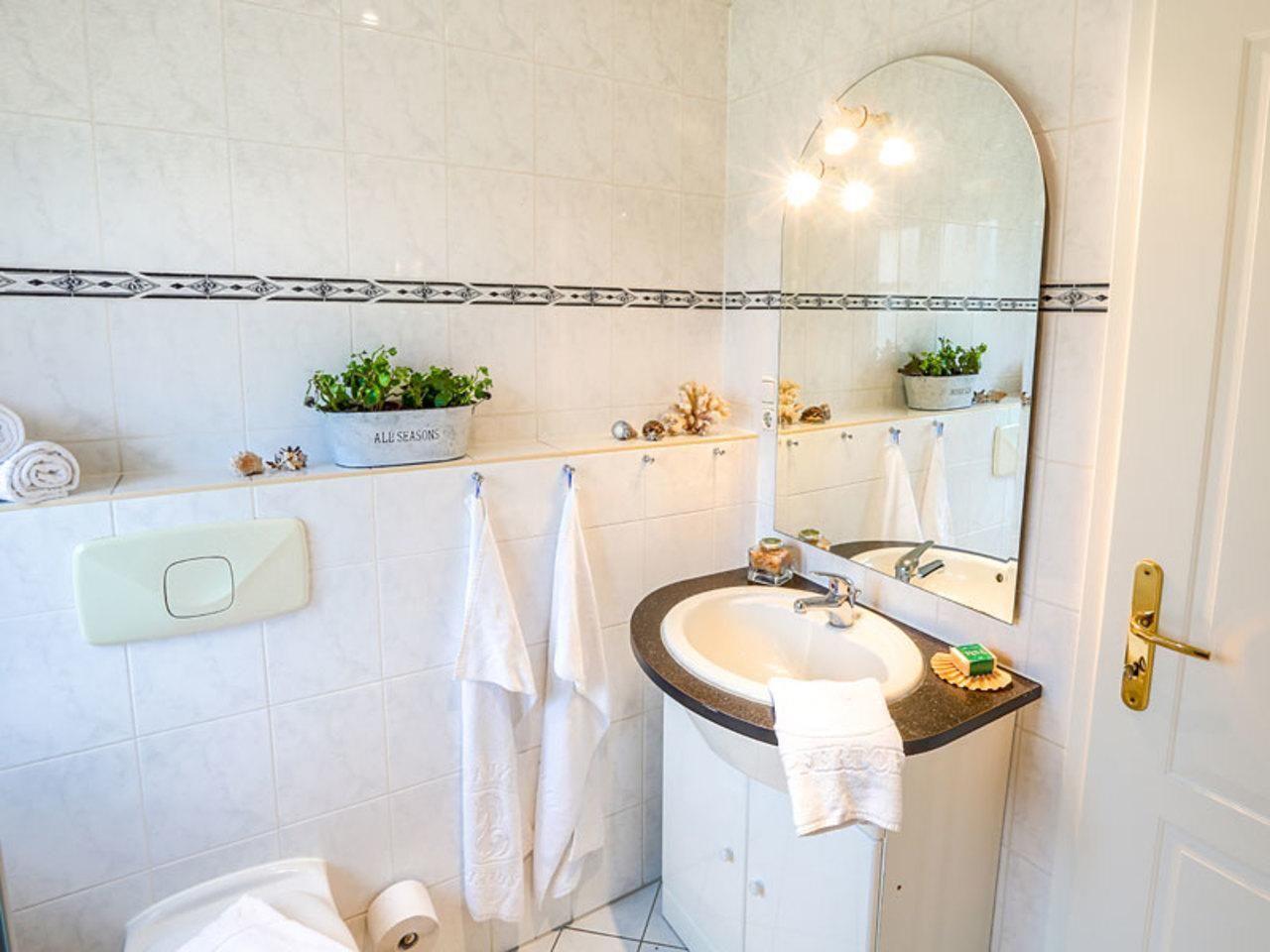 Das moderne Badezimmer bietet alles, was Sie für einen entspannten Start in den Tag brauchen: Dusche, WC, Waschbecken mit großzügigem Unterschrank, Handtuchtrockner und ausreichend Ablageflächen für Ihre Pflegeprodukte.
