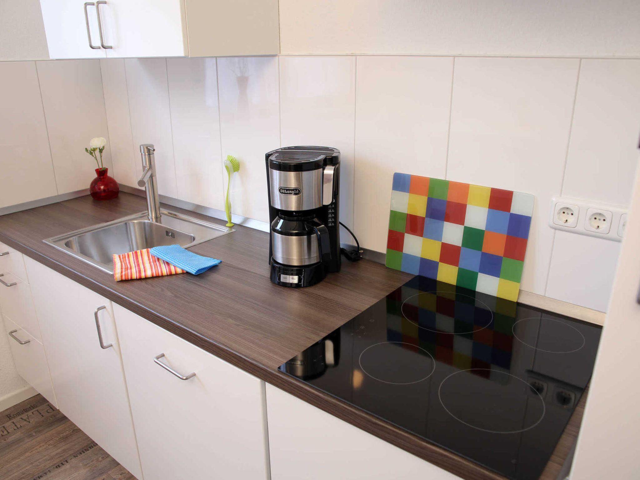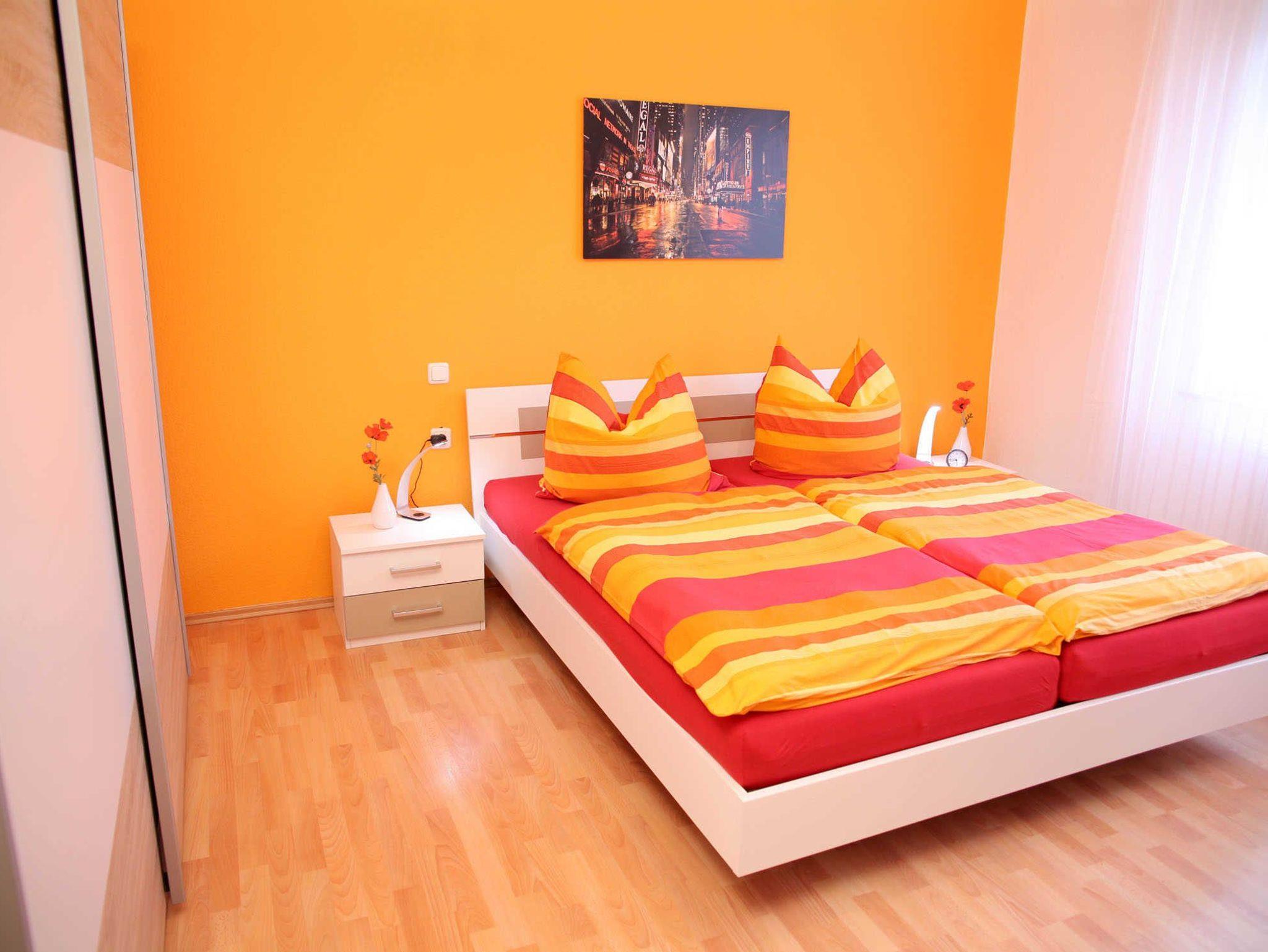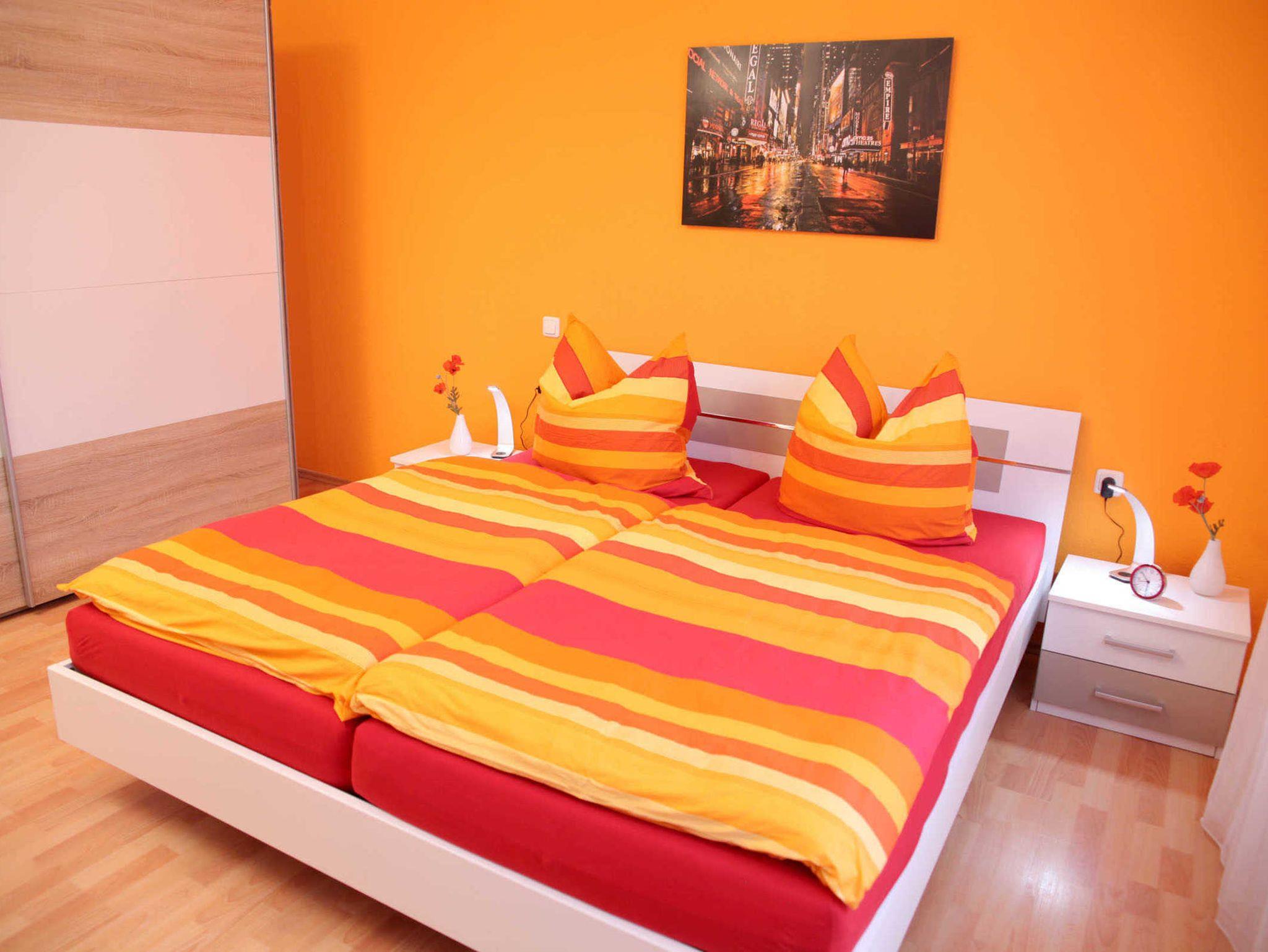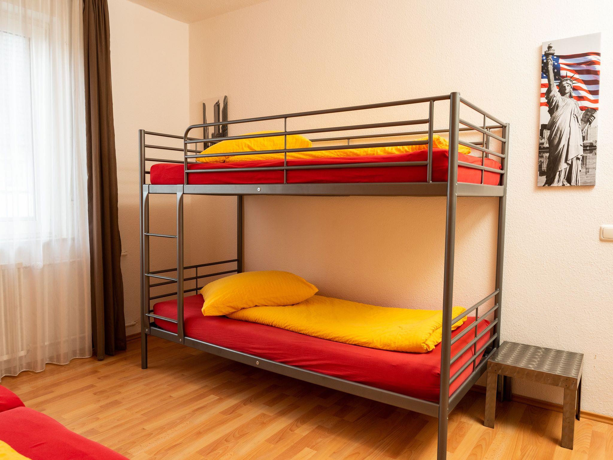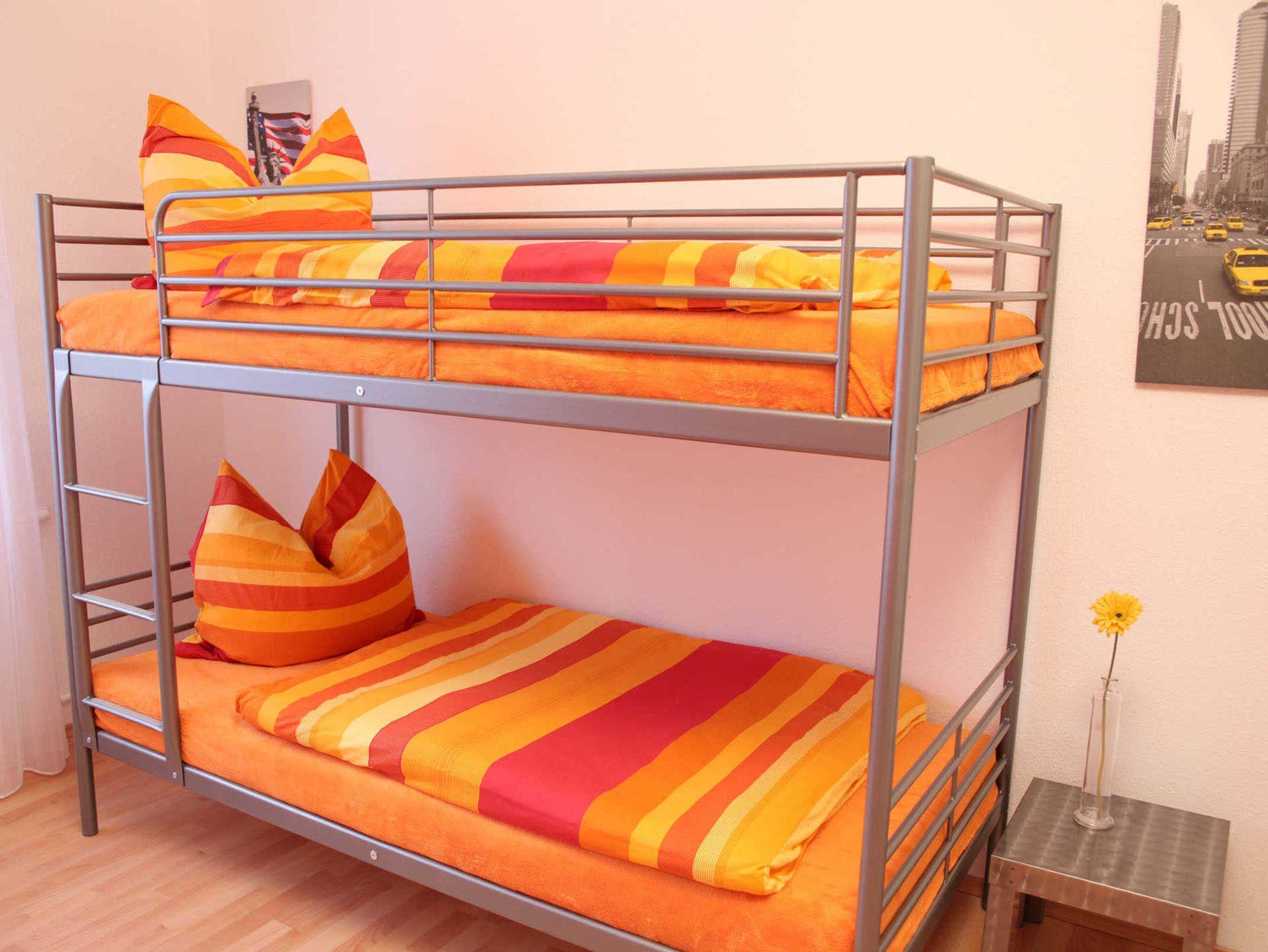 Die Wohnung verfügt über ein Schlafzimmer mit einem Doppelbett (1,80m x 2,00m) UND einem Doppelstockbett sowie einem großen Kleiderschrank.