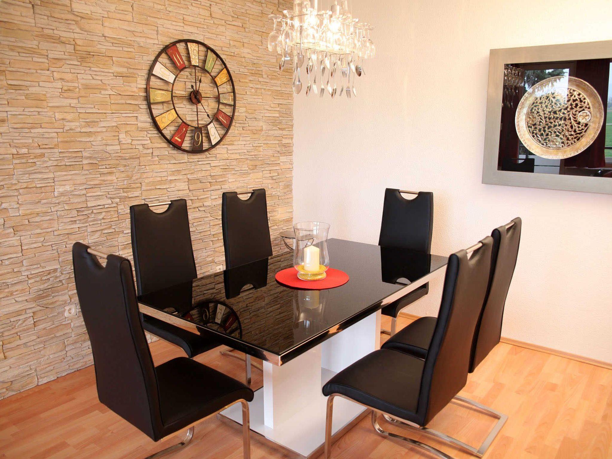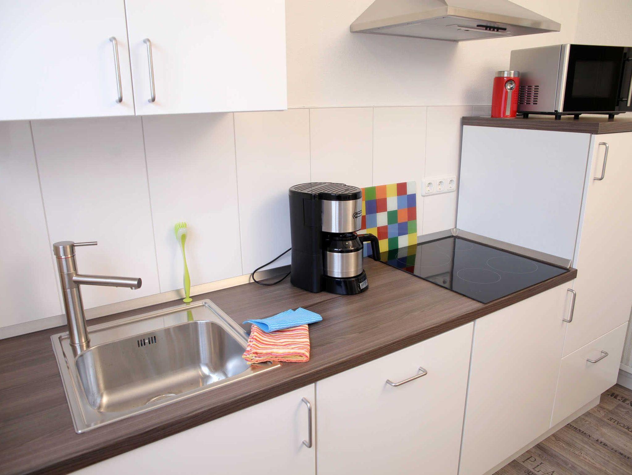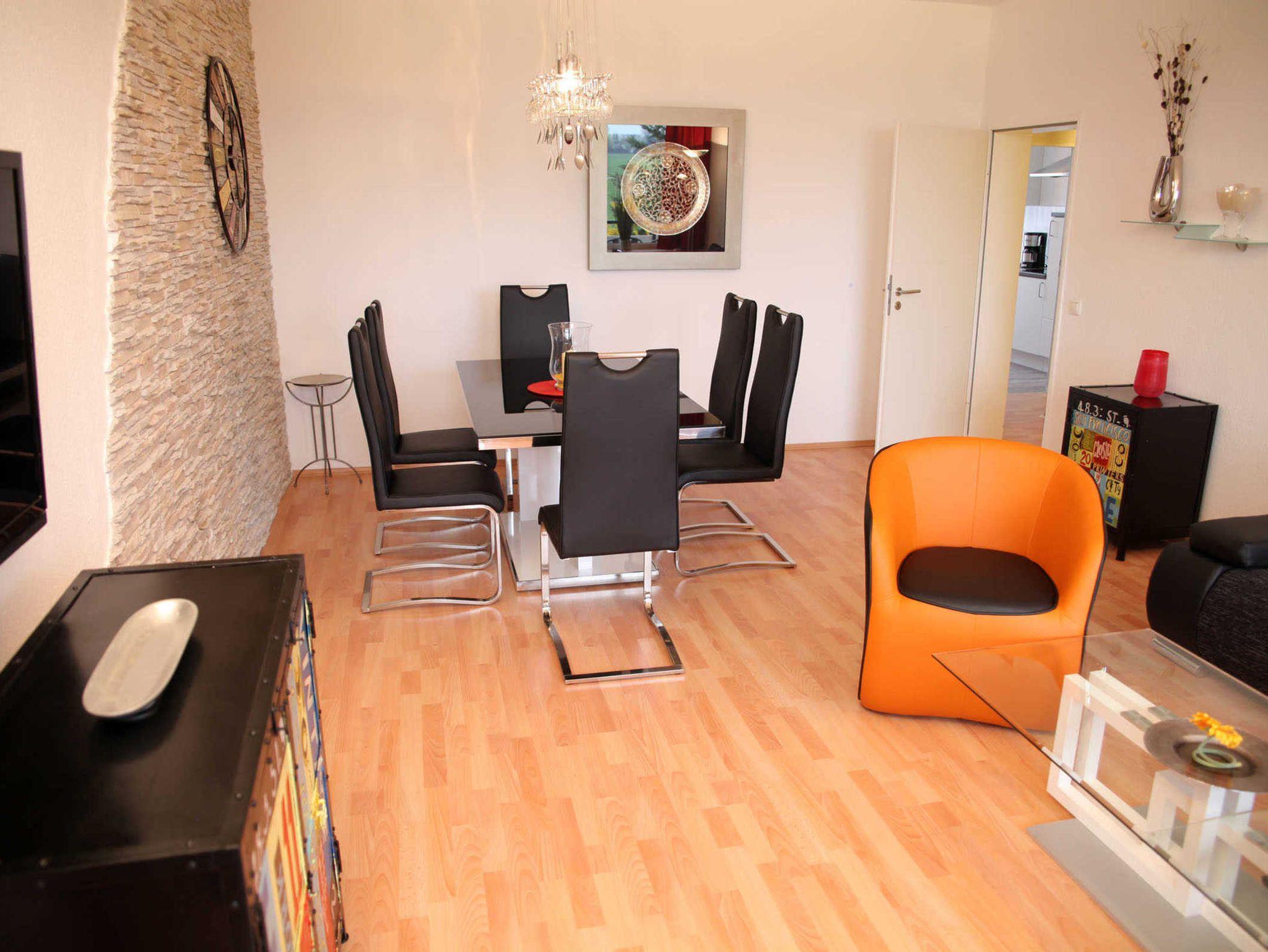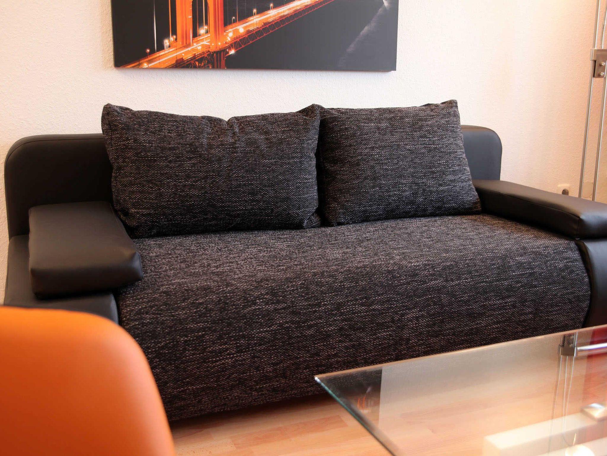 Das Wohnzimmer ist mit einer bequemen, ausziehbaren Schlafcouch mit Federkern ausgestattet, mit Flachbild-TV, DVD-Player und Hifi-Anlage. Des weiteren befindet sich hier ein sehr geräumiger Essbereich. Die Küche ist mit einer modernen Küchenzeile ausgestattet, das moderne Bad u.a. mit Dusche und separatem WC.