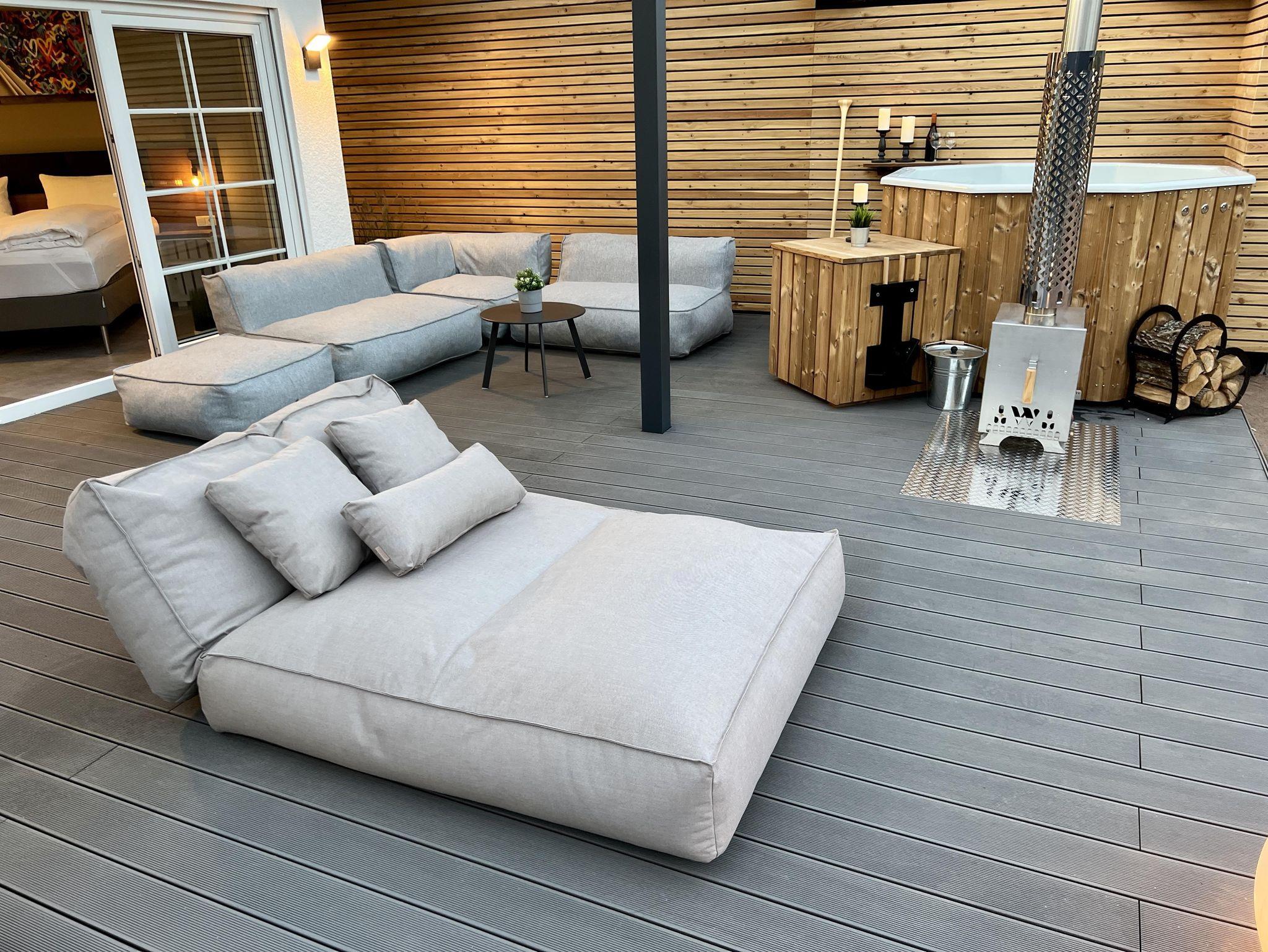 Mit privatem Spa-Bereich inklusive eigenem Hot-Tub und Fasssauna und riesiger Außenterrasse und Garten. Unsere Luxury Apartments schaffen ein Urlaubserlebnis der besonderen Art - so wie wir es uns selbst immer gewünscht haben. Daher haben wir die Unterkunft mit ganz viel Liebe zum Detail und Herzblut für unsere Gäste geschaffen.