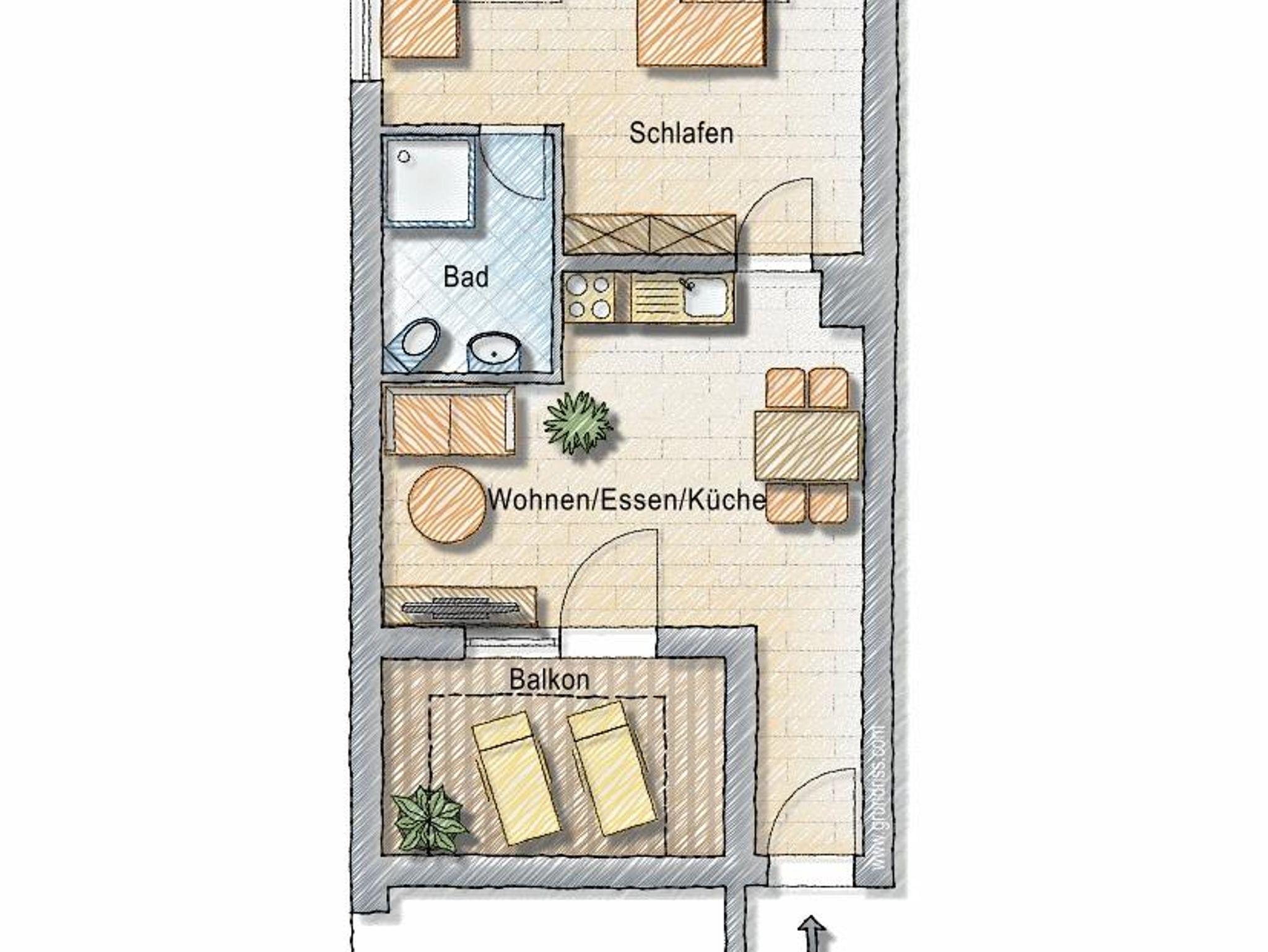Wunderschönes Apartment mit großzügigen 50 qm Wohnfläche, das bis zu drei Erwachsenen Platz bietet. Bestehend aus einem Wohn-/Essbereich mit voll ausgestatteter Küche, einem großen Schlafzimmer mit einem Doppelbett und separatem Einzelbett, sowie einem modernen Bad mit ebenerdiger Dusche, lädt an schönen Tagen vor allem der große Balkon/Loggia mit Lounge zum Verweilen ein. Bei Bedarf ist hier auch noch ausreichend Platz für ein zusätzliches Babyreisebett, das wir Ihnen gerne kostenfrei zur Verfügung stellen.