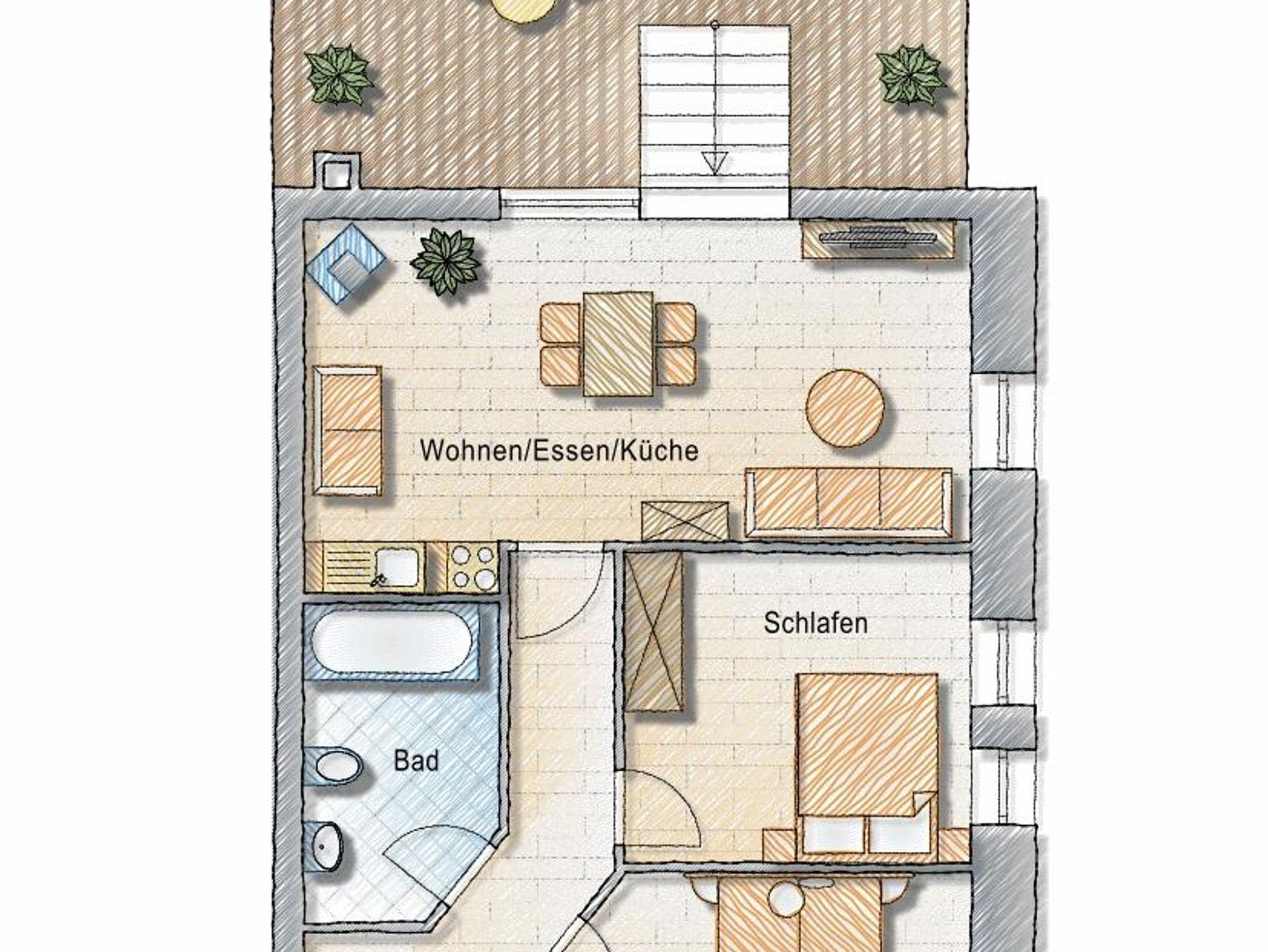 Dieses Apartment bietet absoluten Highclass-Wohnkomfort auf großzügigen 80 qm. Zwei große Schlafzimmer mit Doppelbetten, ein modernes Bad mit Badewanne, sowie ein Wohnbereich mit vollausgestatteter Küche mit Spülmaschine, Herd und Backofen sowie einer eigenen Terrasse sorgen dafür, dass selbst höchste Ansprüche hier mit Leichtigkeit erfüllt werden. Lassen Sie sich verzaubern in diesem absoluten Premium-Apartment!