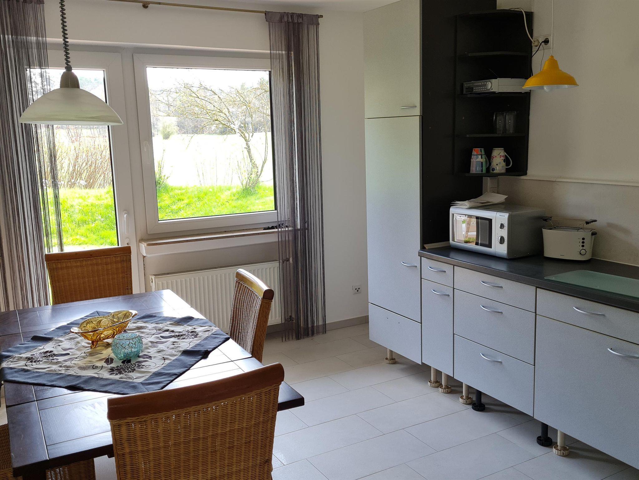 Die Ferienwohnung ist ebenerdig (rollstuhlgerecht) und liegt am Ahbach. Sonnenterasse mit Gartenbestuhlung und Liegewiese verführen zum Relaxen. Für die Kinder ist ein Klettergerüst mit Kinderschaukel vorhanden. Ein Schwenkgrill im Garten vervollständigt den Außenbereich.
