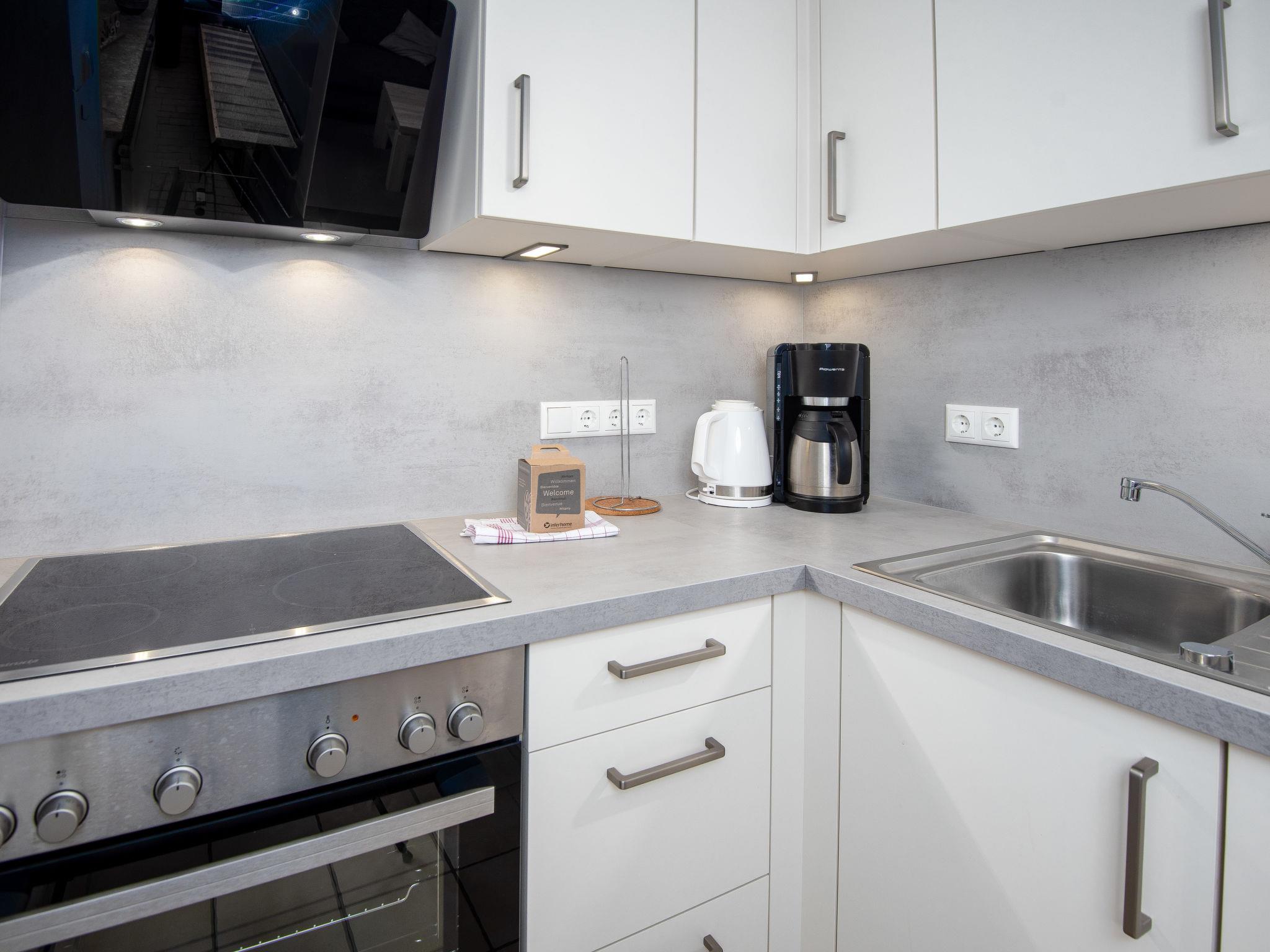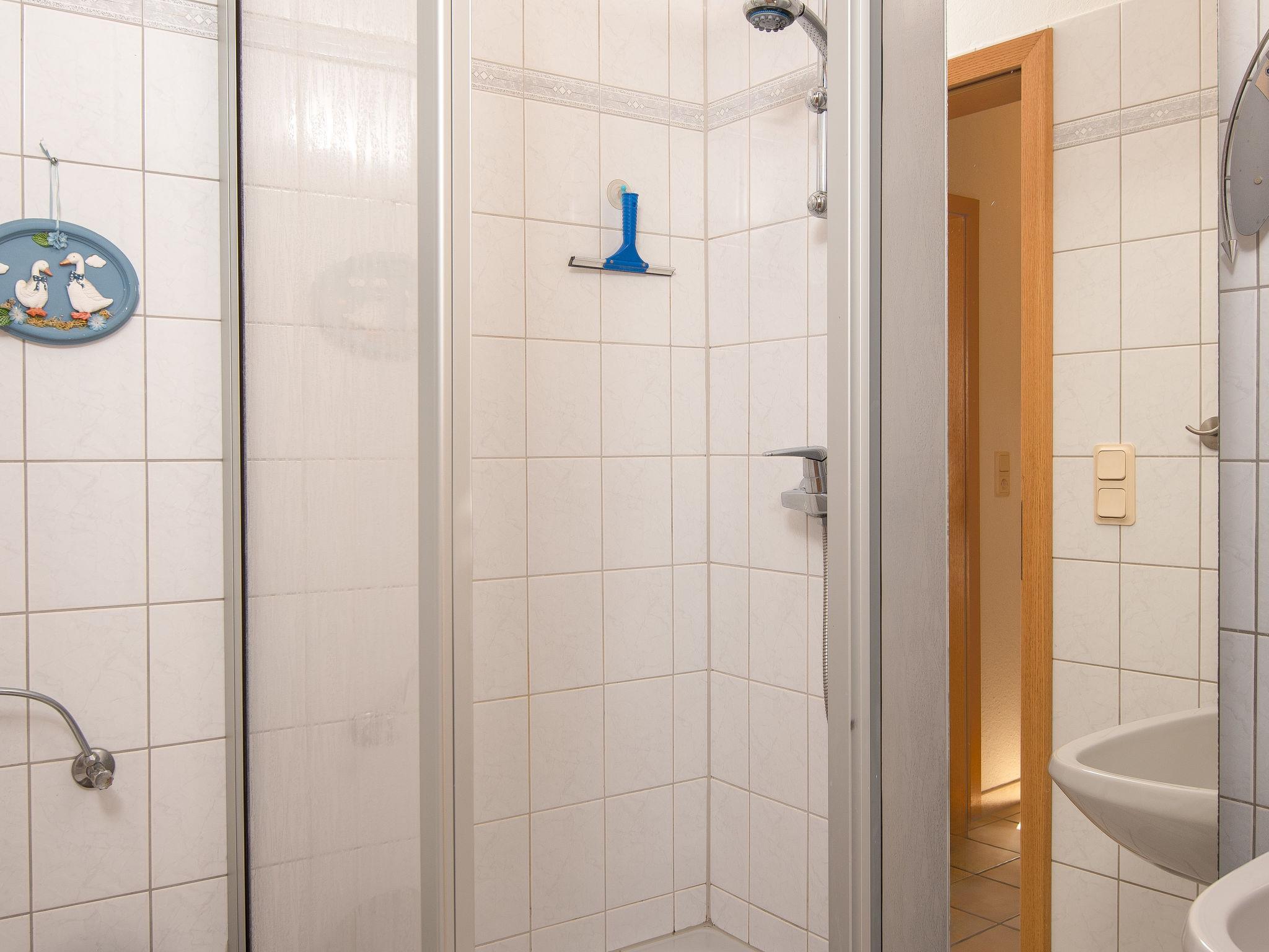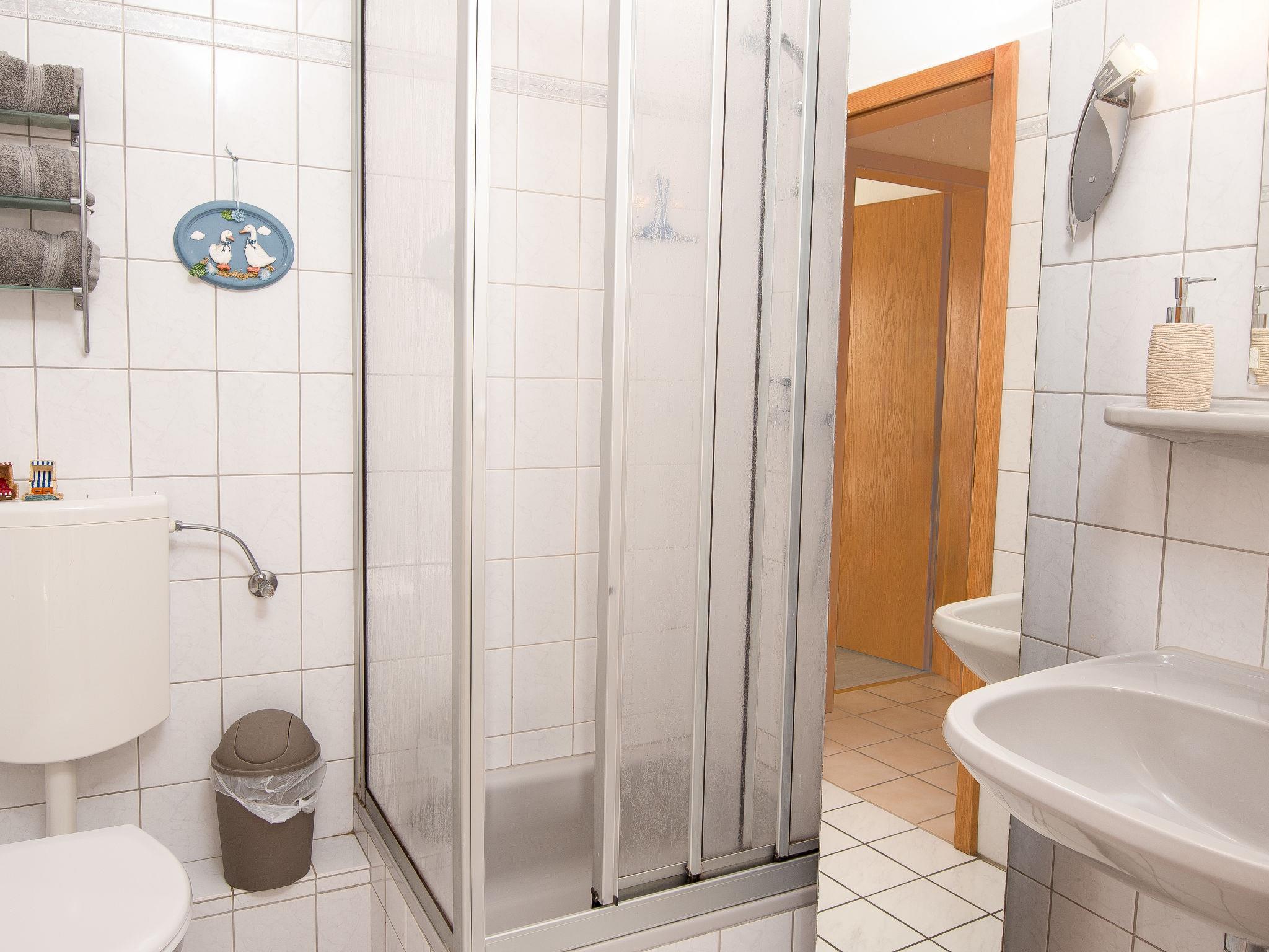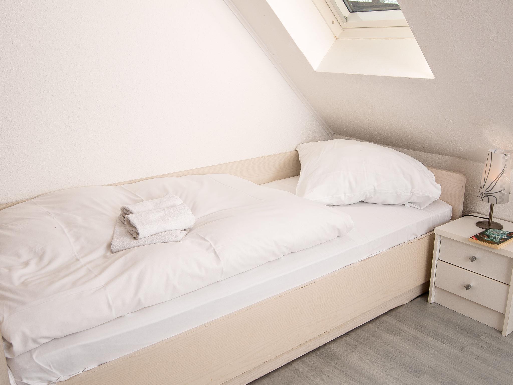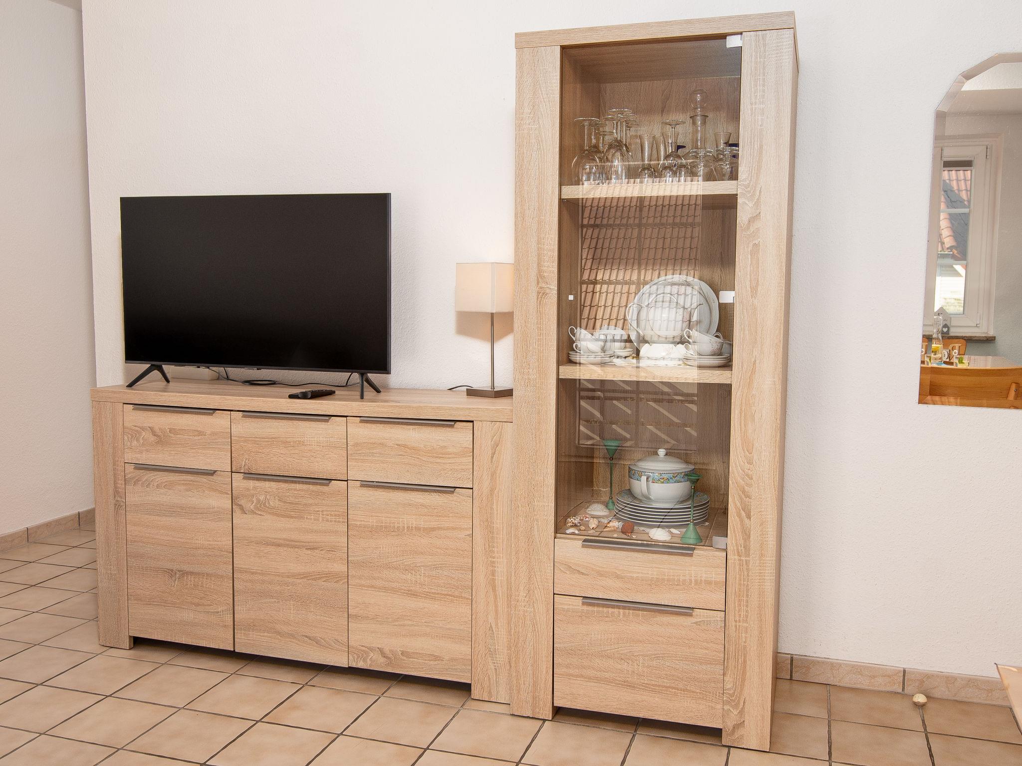 3-room apartment 65 m2, on the upper floor. Bright, partly with sloping ceilings, cosy furnishings: living/dining room 28 m2 with cable TV (flat screen), hi-fi system. Exit to the balcony. 1 room 9 m2 with 1 double bed (2 x 100 cm, length 200 cm). 1 room 8 m2 with 2 beds (90 cm, length 200 cm). Small kitchenette (4 hot plates, oven, dishwasher, toaster, kettle, microwave, electric coffee machine). Shower/WC. Balcony. Balcony furniture. Facilities: iron, children's high chair (extra). Internet (WiFi, free). Please note: non-smokers only. Smoke alarm. DE40827