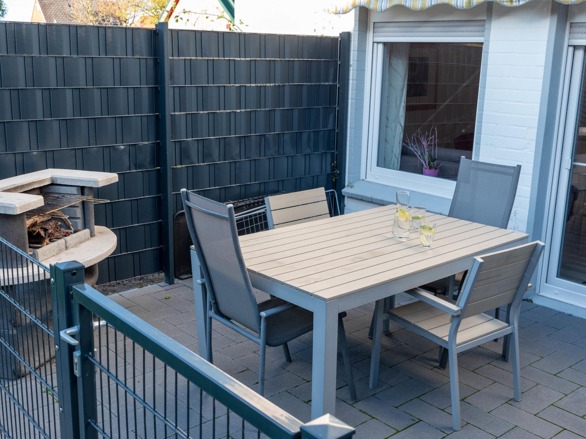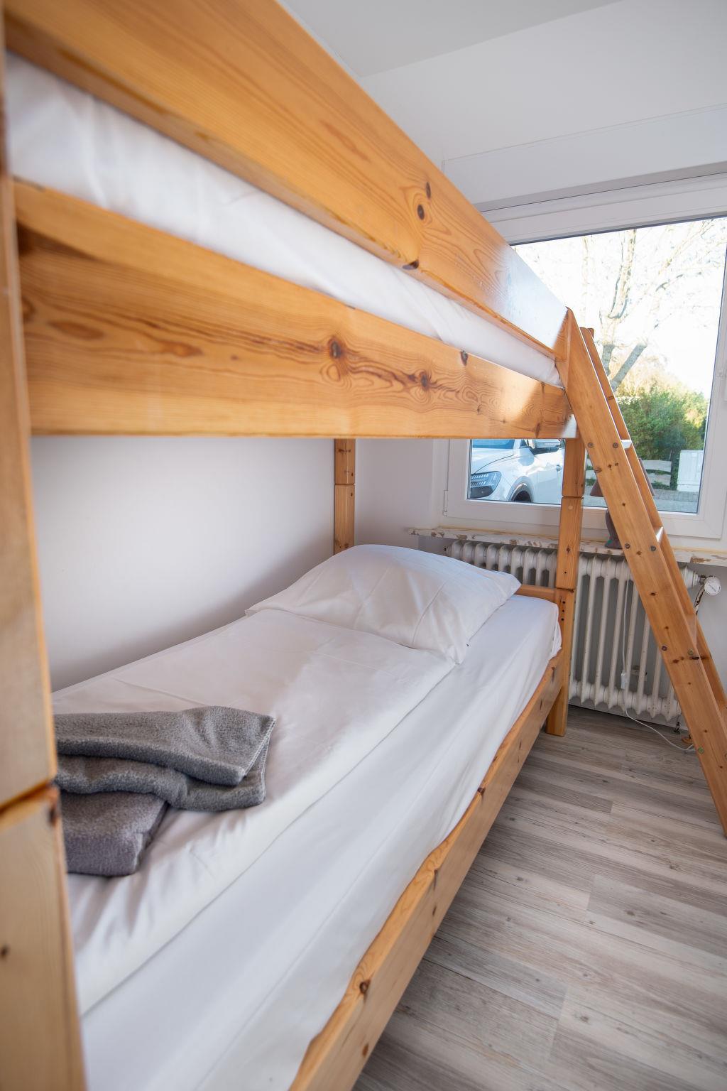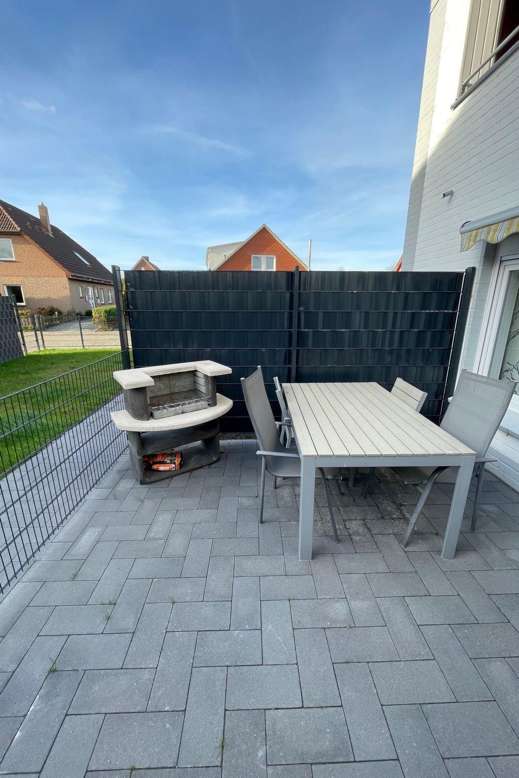 "Steuerbord", 3-room apartment 60 m2, on the ground floor. Living/dining room 17 m2 with satellite TV (flat screen), radio. Exit to the terrace. 1 room 9 m2 with 1 double bed (2 x 90 cm, length 200 cm). 1 room 5 m2 with 1 x 2 bunk beds (90 cm, length 200 cm). Small kitchen 5 m2 (4 hot plates, oven, toaster, kettle, microwave, electric coffee machine). Shower/WC. Small terrace. Terrace furniture. Facilities: children's high chair (extra). Internet (WiFi, free). Please note: non-smokers only. Maximum 1 pet/ dog allowed. Smoke alarm.