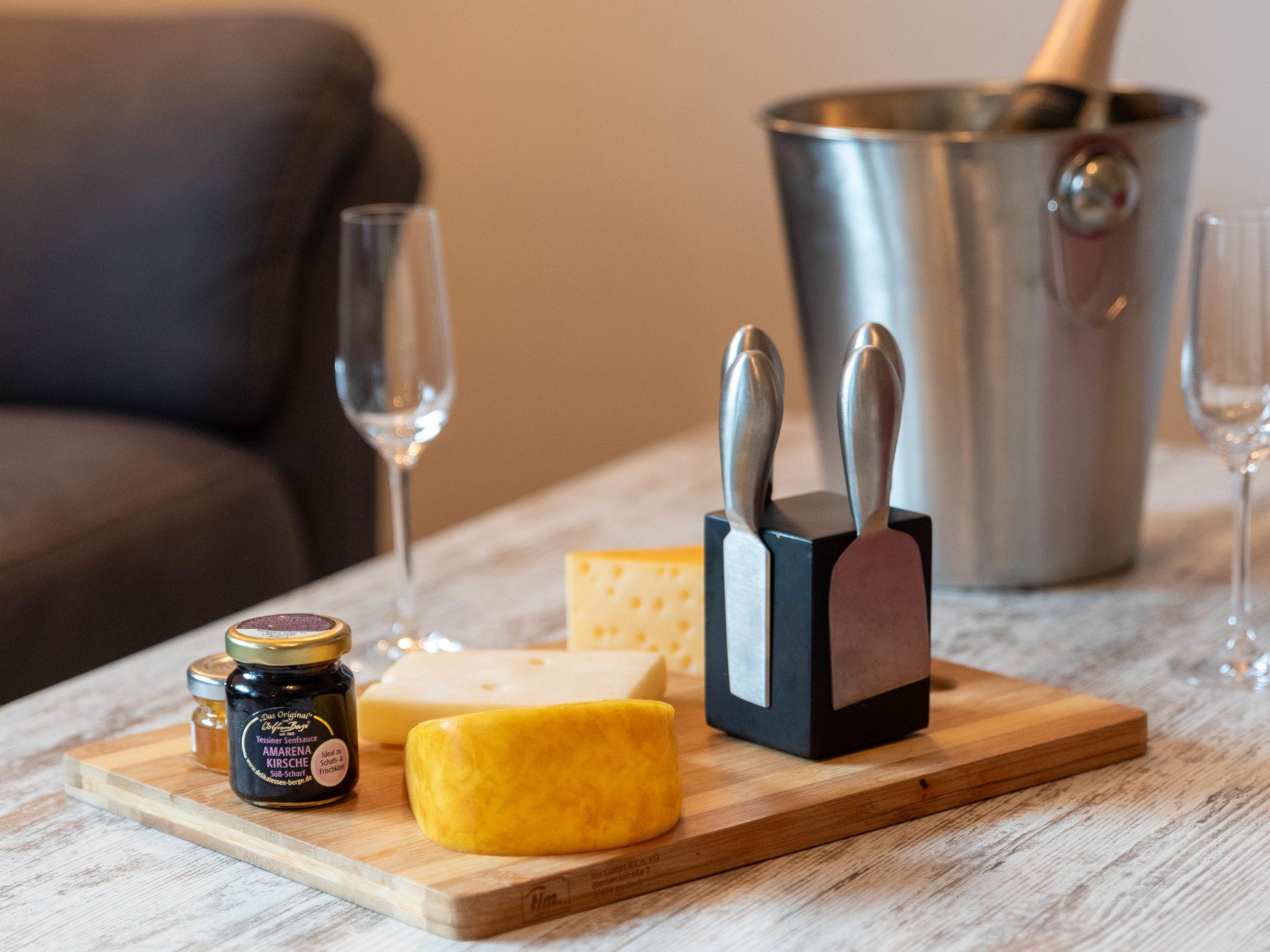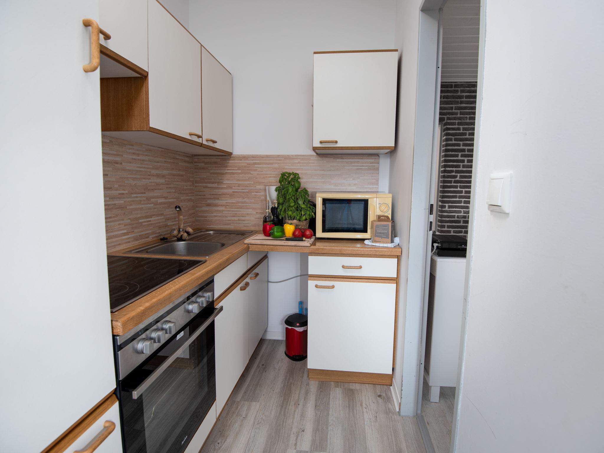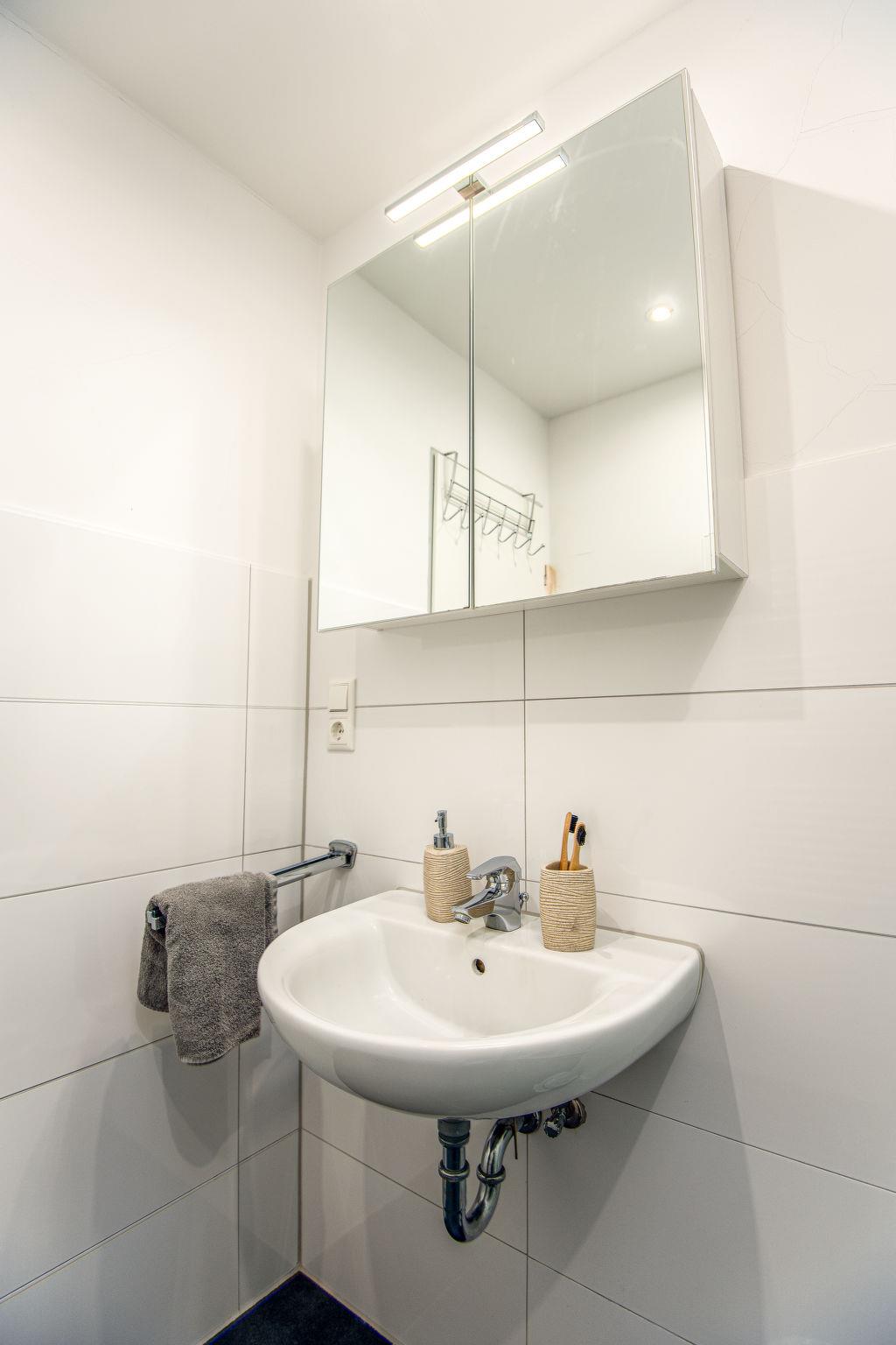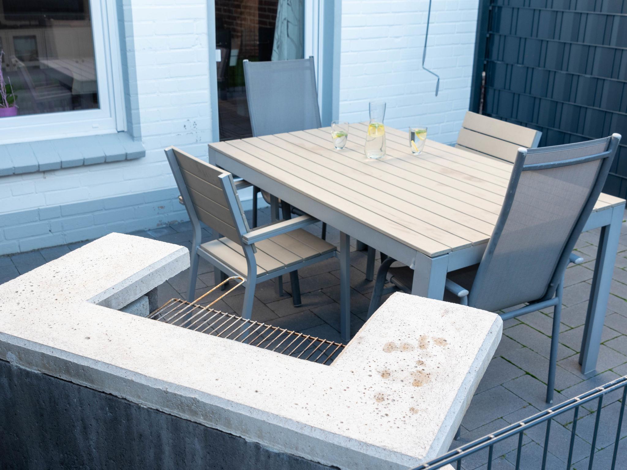 "Steuerbord", 3-room apartment 60 m2, on the ground floor. Living/dining room 17 m2 with satellite TV (flat screen), radio. Exit to the terrace. 1 room 9 m2 with 1 double bed (2 x 90 cm, length 200 cm). 1 room 5 m2 with 1 x 2 bunk beds (90 cm, length 200 cm). Small kitchen 5 m2 (4 hot plates, oven, toaster, kettle, microwave, electric coffee machine). Shower/WC. Small terrace. Terrace furniture. Facilities: children's high chair (extra). Internet (WiFi, free). Please note: non-smokers only. Maximum 1 pet/ dog allowed. Smoke alarm.