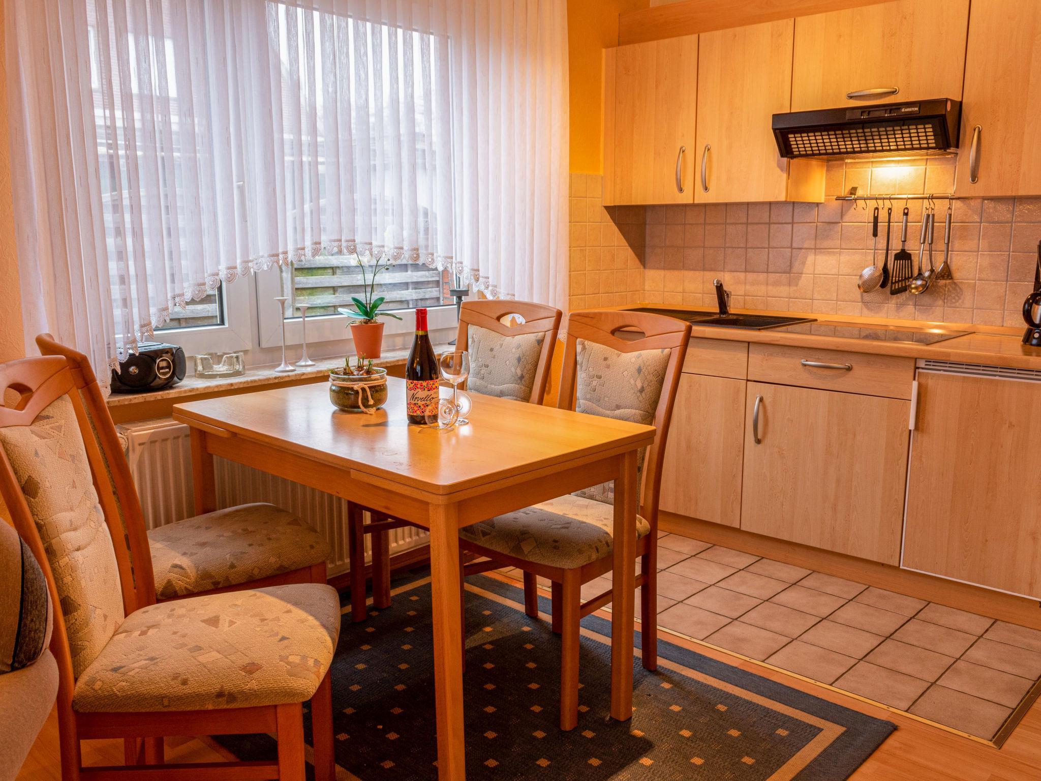3-room apartment 55 m2 on 2 levels, on the ground floor. Living/dining room 16 m2 with cable TV, flat screen and radio. Kitchenette (4 hot plates, toaster, kettle, microwave, electric coffee machine). Shower/WC. Upper floor: walk-through room 14 m2, with sloping ceilings with 1 double bed (2 x 100 cm, length 200 cm). 1 double bedroom 11 m2, with sloping ceilings with 1 double bed (2 x 90 cm, length 200 cm). Terrace 13 m2. Terrace furniture. Facilities: children's high chair (extra). Internet (WiFi, free). Please note: non-smokers only.