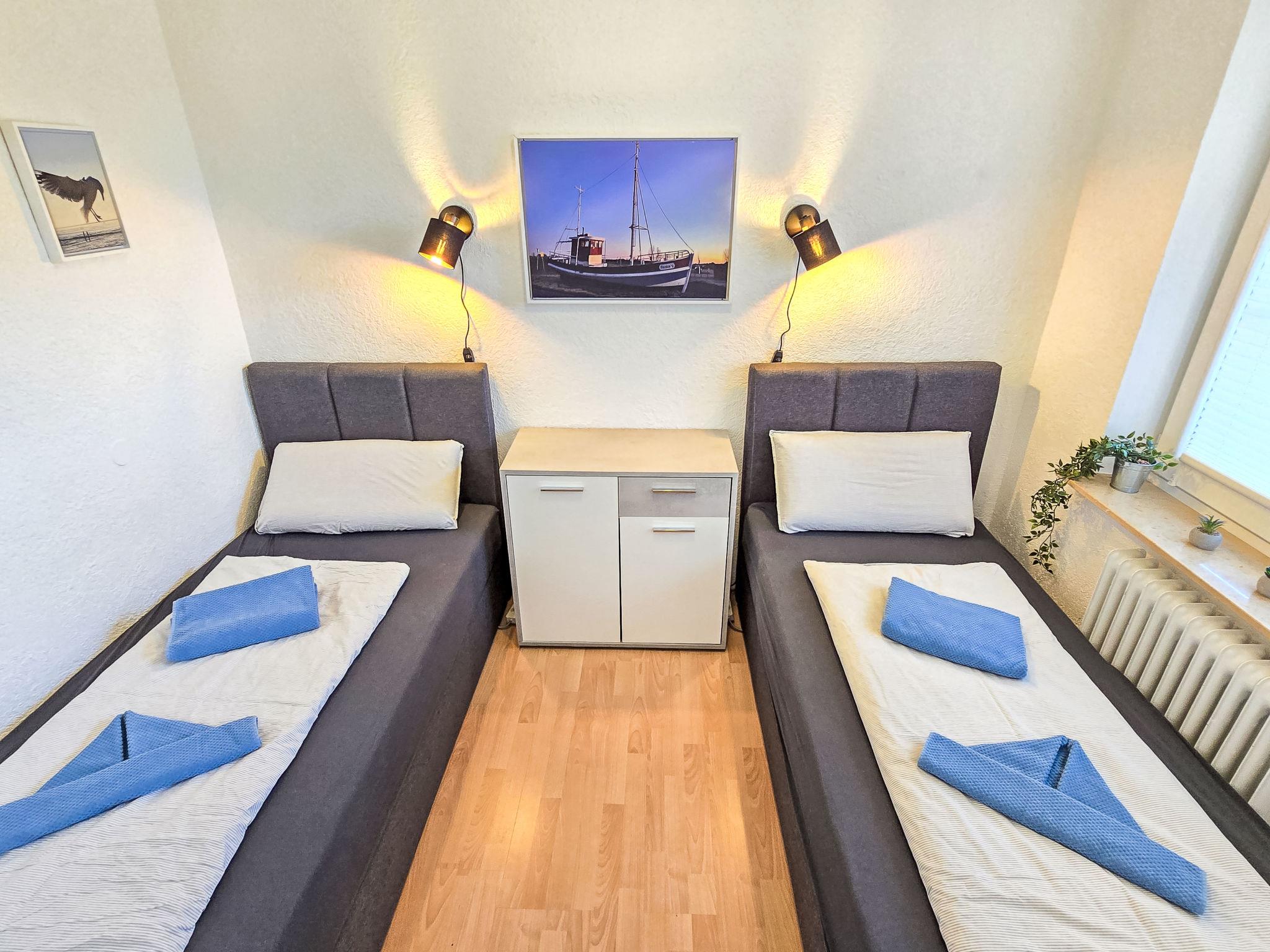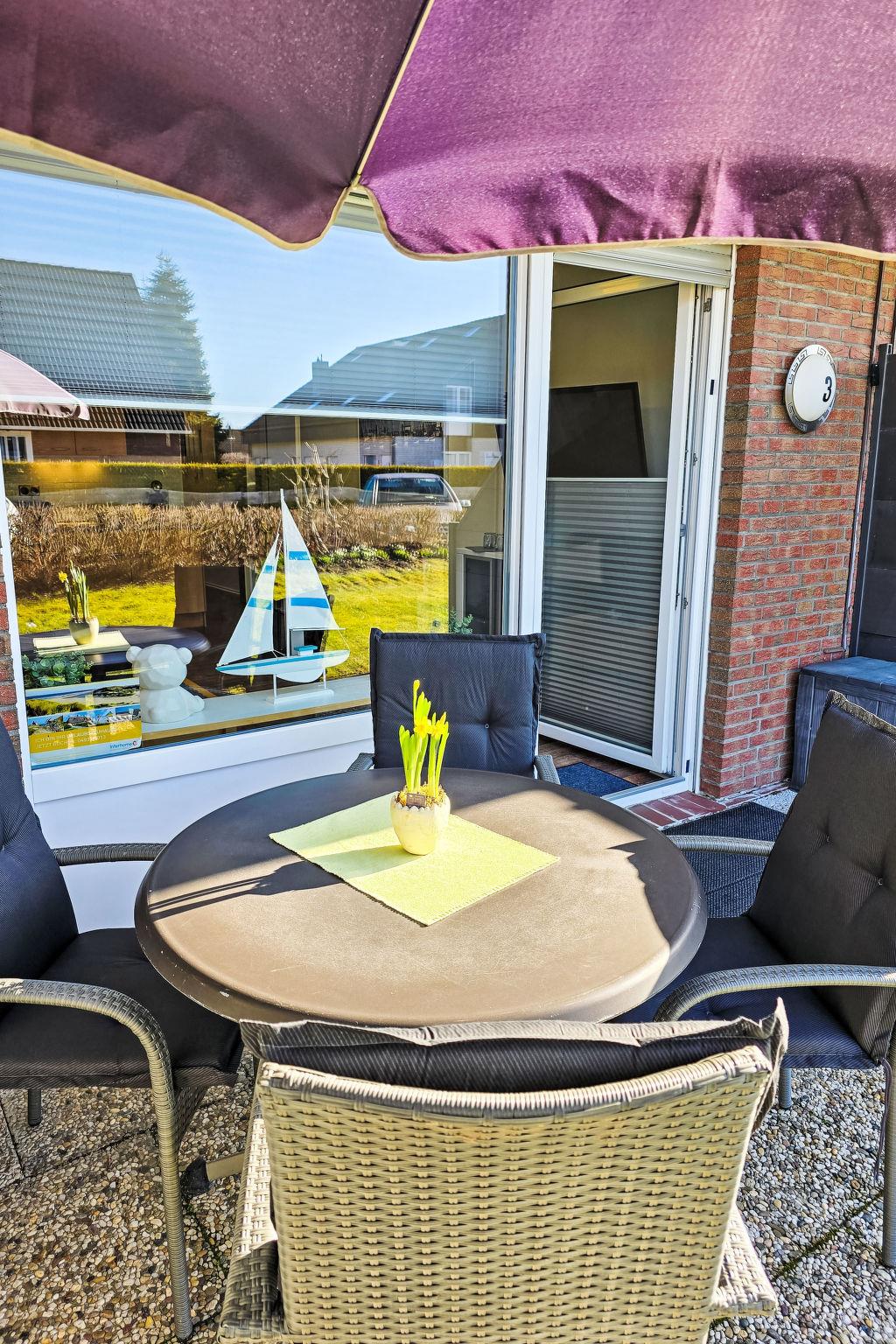 Well-maintained apartment house "Ankerweg". 1.2 km from the sea, 1.2 km from the beach. In the house: central heating system. Parking at the house. Supermarket 650 m, restaurant 200 m, bakery 600 m, bus stop 200 m, railway station 2 km, ferry 2 km, sandy beach 1.2 km, outdoor swimming pool 14 km, indoor swimming pool 700 m. Golf course (18 hole) 8 km, surf school 1.2 km, tennis 2.2 km.