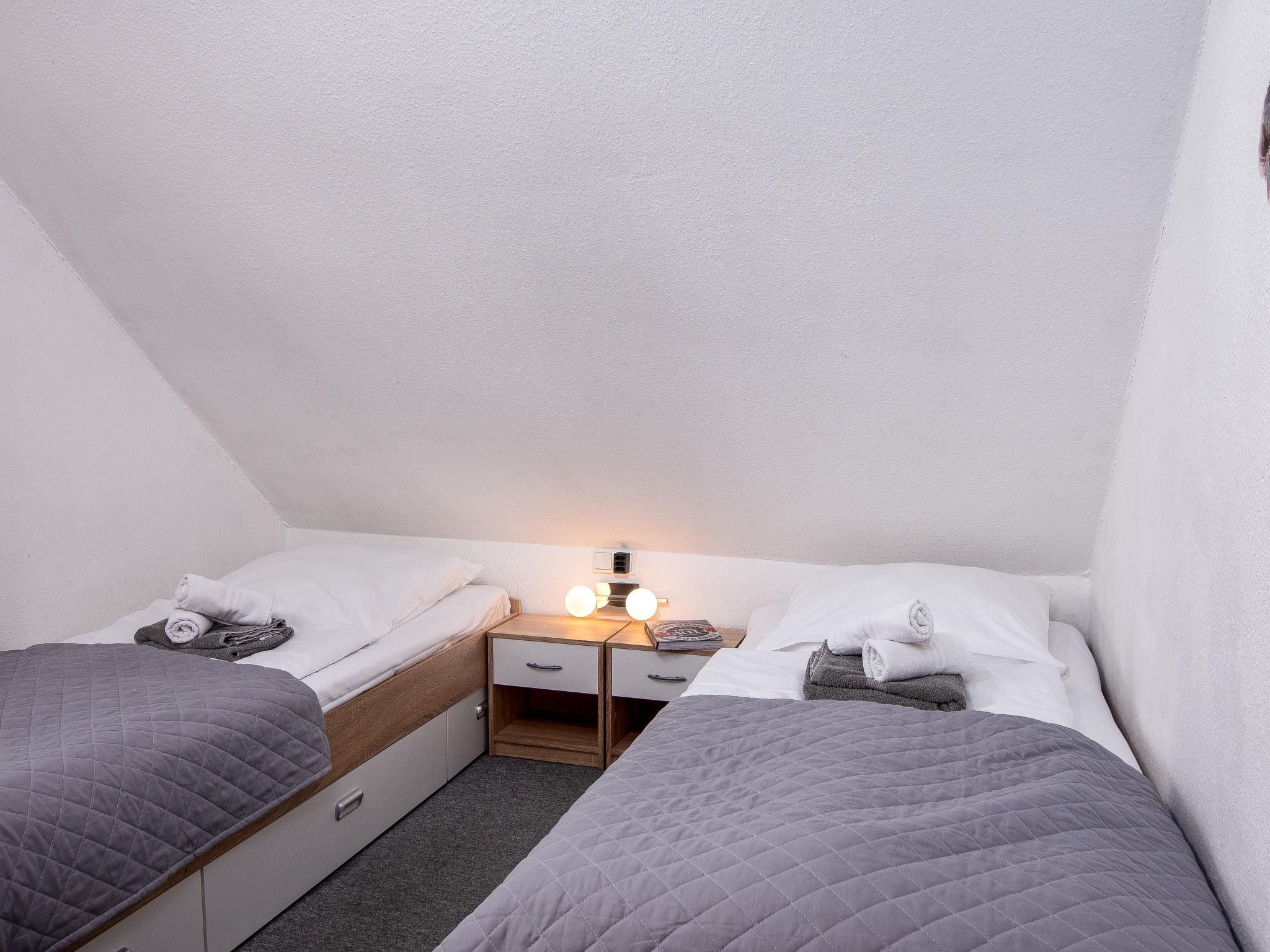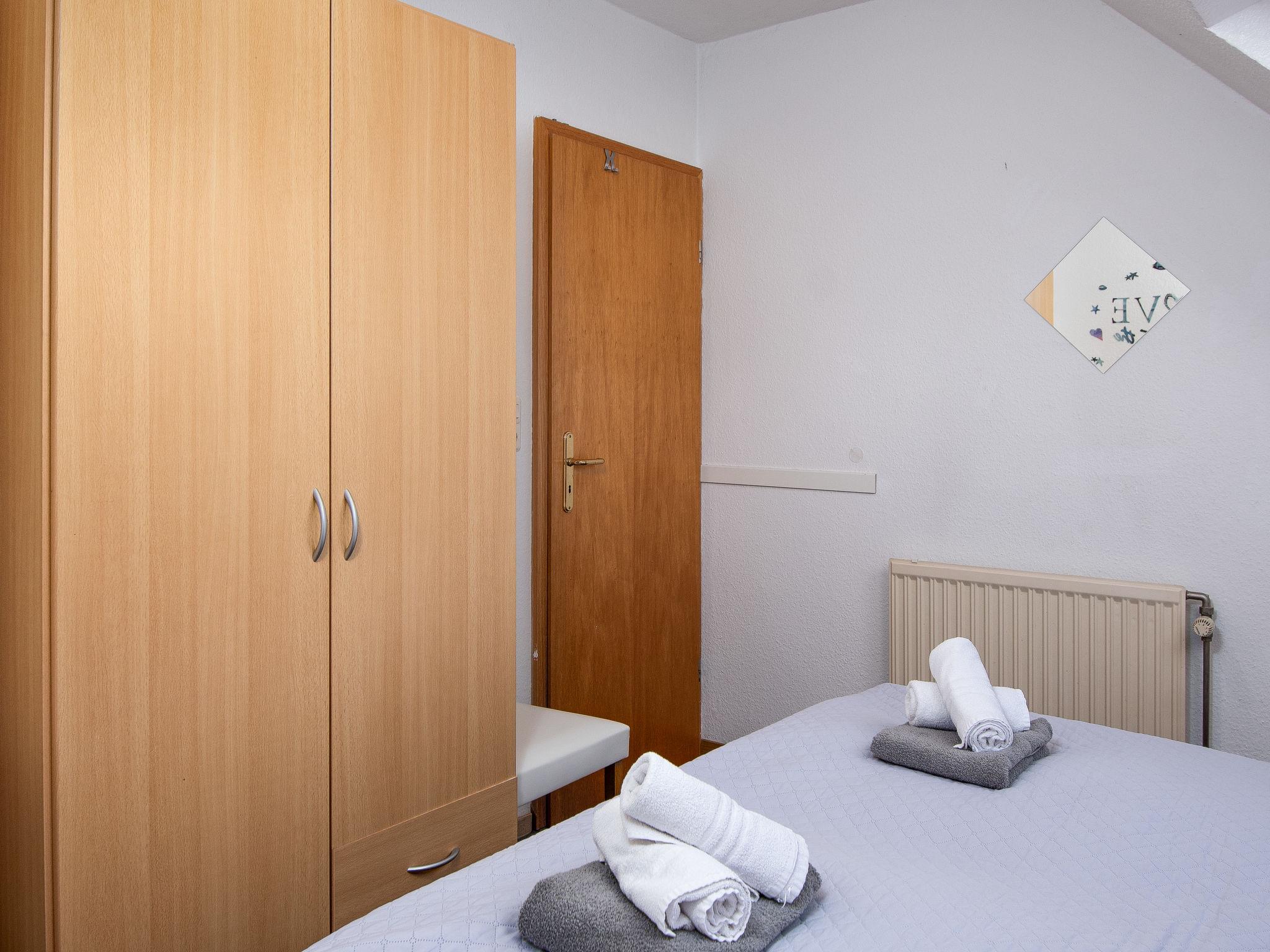"Robbe Puck", 3-room apartment 52 m2, on the upper floor. Object suitable for 2 adults + 2 children. Simple and practical furnishings: living/dining room with sloping ceilings with dining table and cable TV (flat screen). Exit to the balcony. 1 room with sloping ceilings with 1 double bed. 1 room with sloping ceilings with 2 beds. Small kitchen (dishwasher, 4 ceramic glass hob hotplates, toaster, kettle, electric coffee machine, combination microwave). Shower/WC. Balcony. Balcony furniture. Facilities: washing machine, children's high chair, baby cot for up to 2 year olds. Internet (WiFi, free). Parking at the house. Please note: non-smokers only. Maximum 1 pet/ dog allowed.