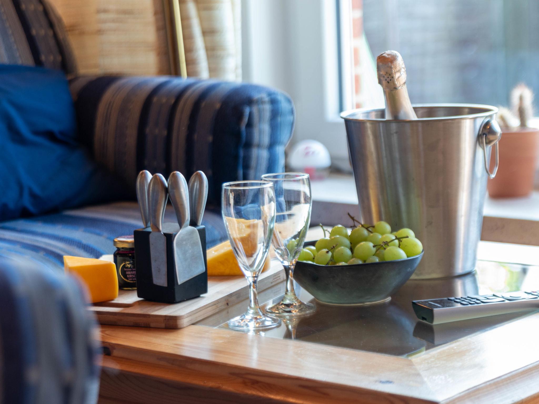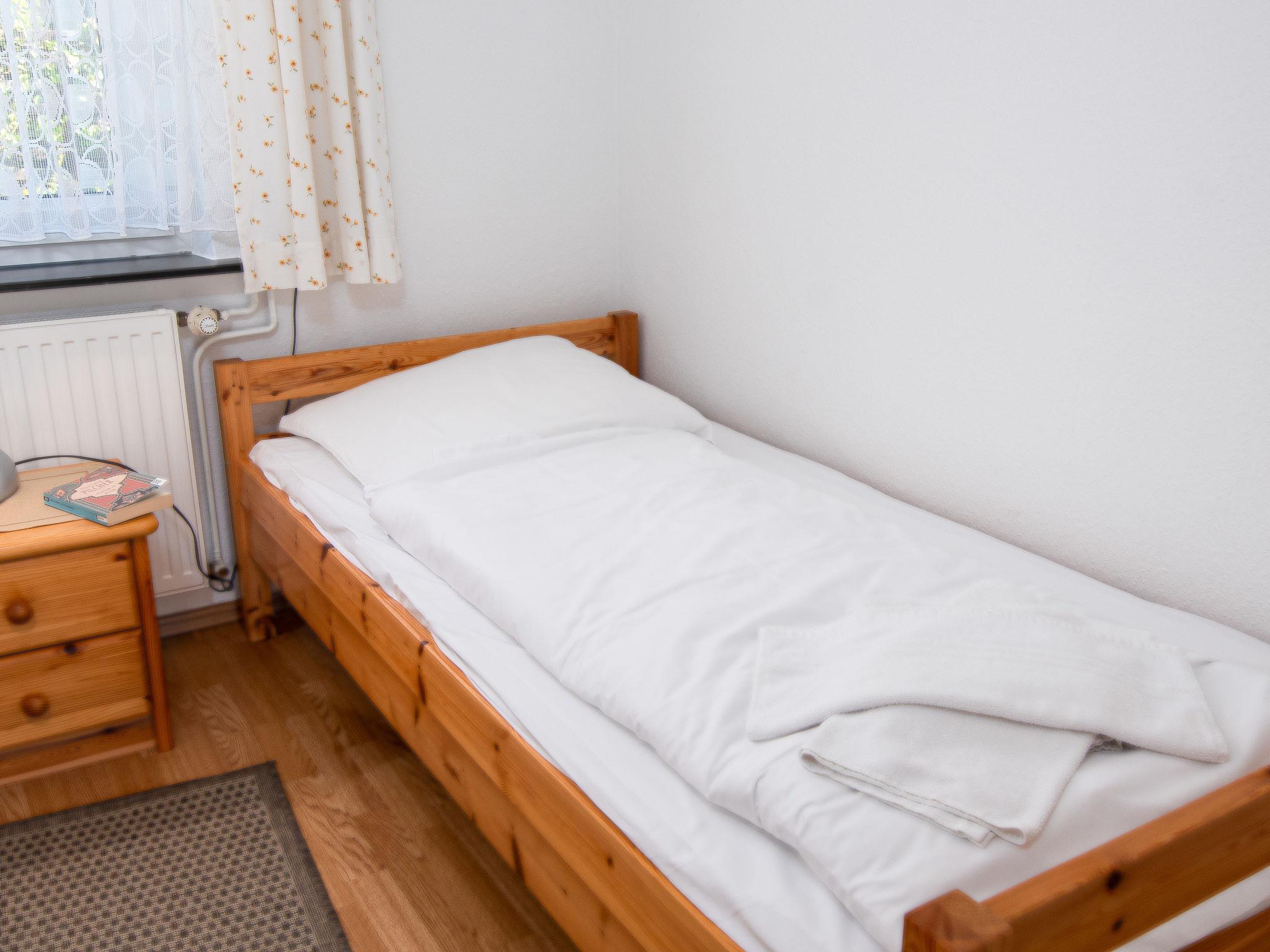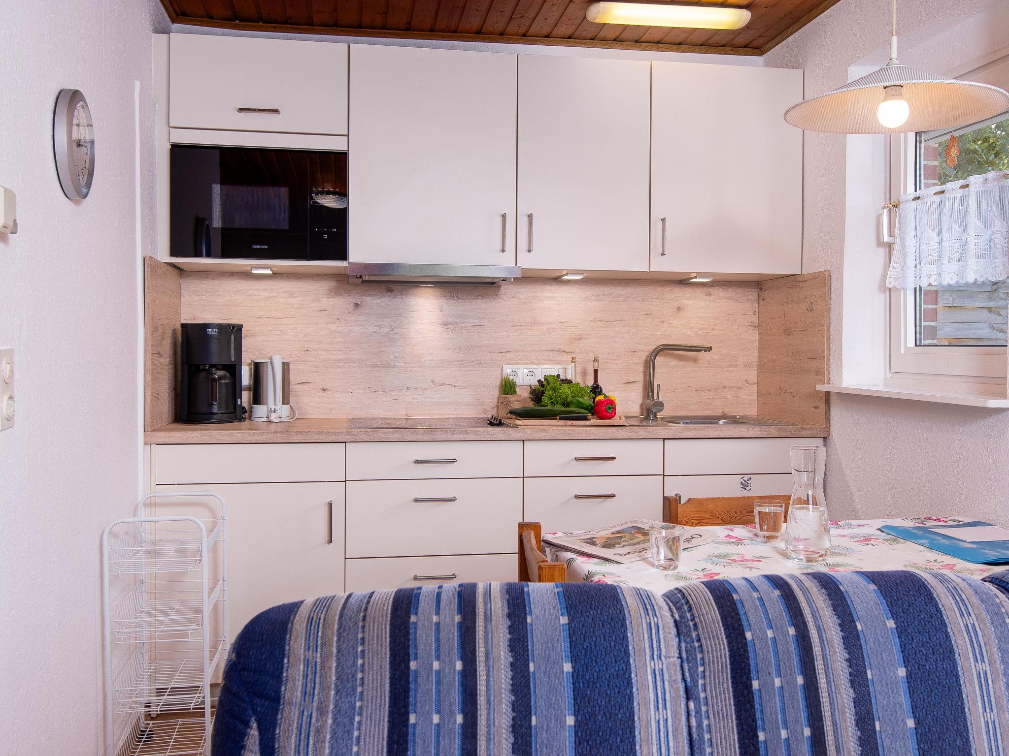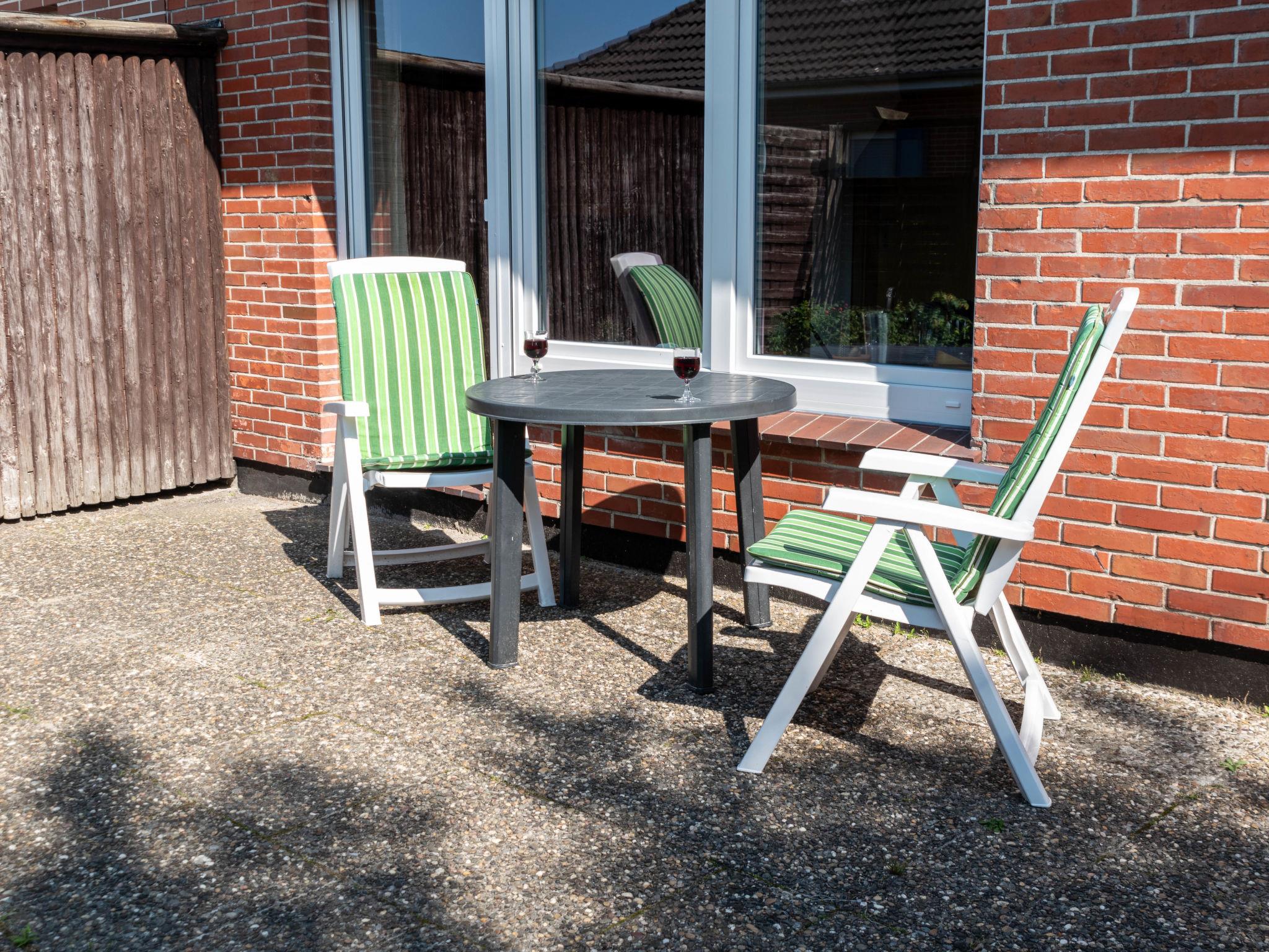 "Langeoog 12", 2-room semi-detached house 35 m2, on the ground floor. Cosy furnishings: living/dining room with satellite TV (flat screen), radio. Exit to the terrace. 1 room with 2 beds (90 cm, length 200 cm). Kitchenette (4 ceramic glass hob hotplates, toaster, kettle, microwave, electric coffee machine). Shower/WC. Terrace furniture, box-room. Please note: non-smokers only. Smoke alarm.