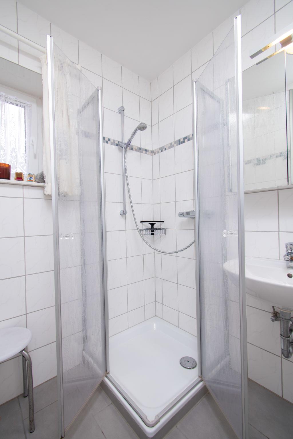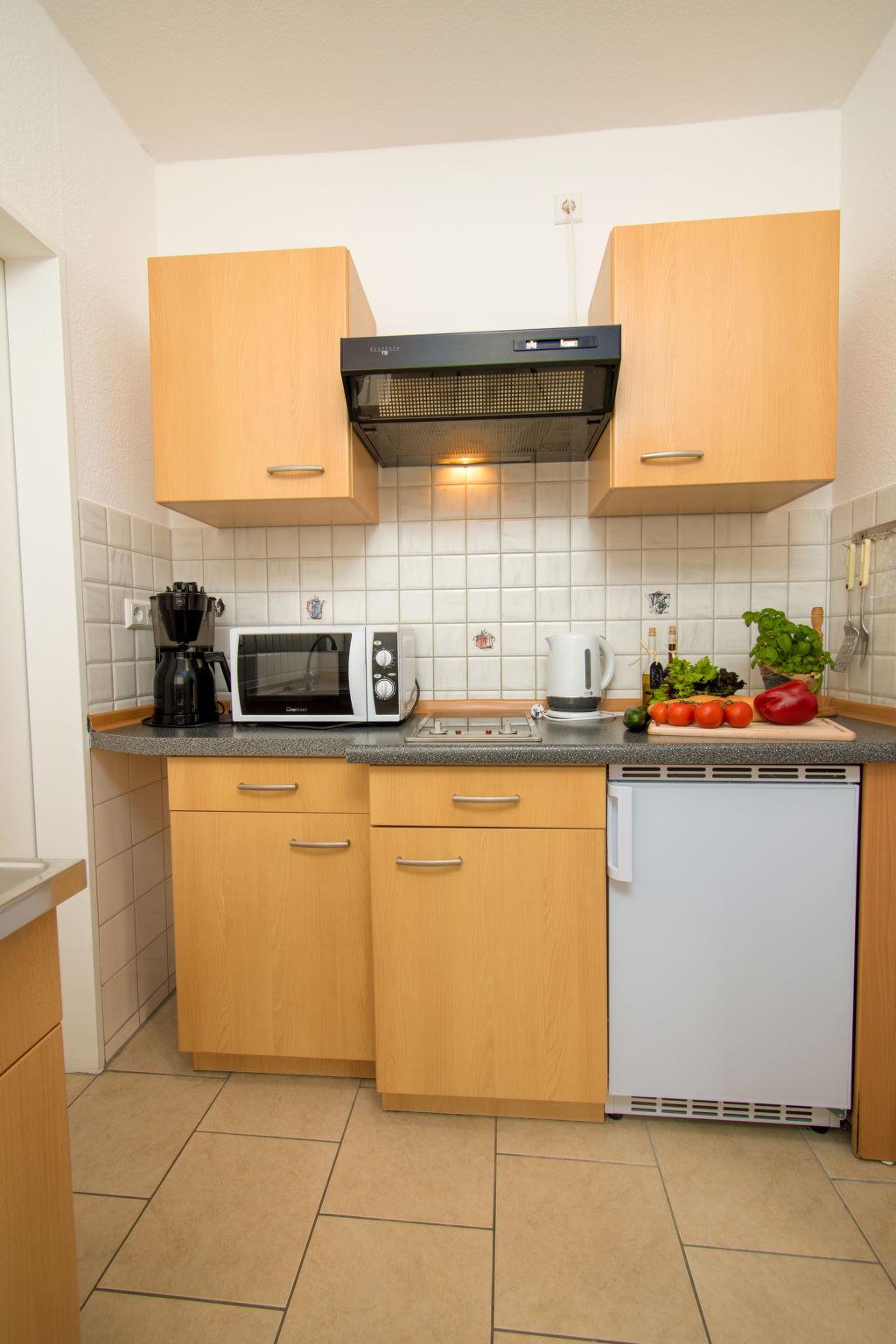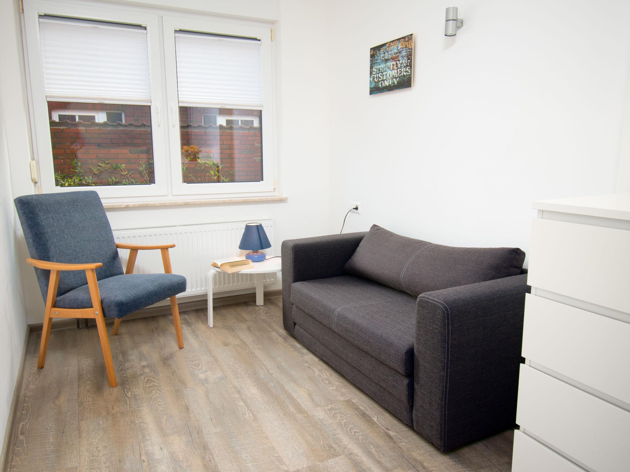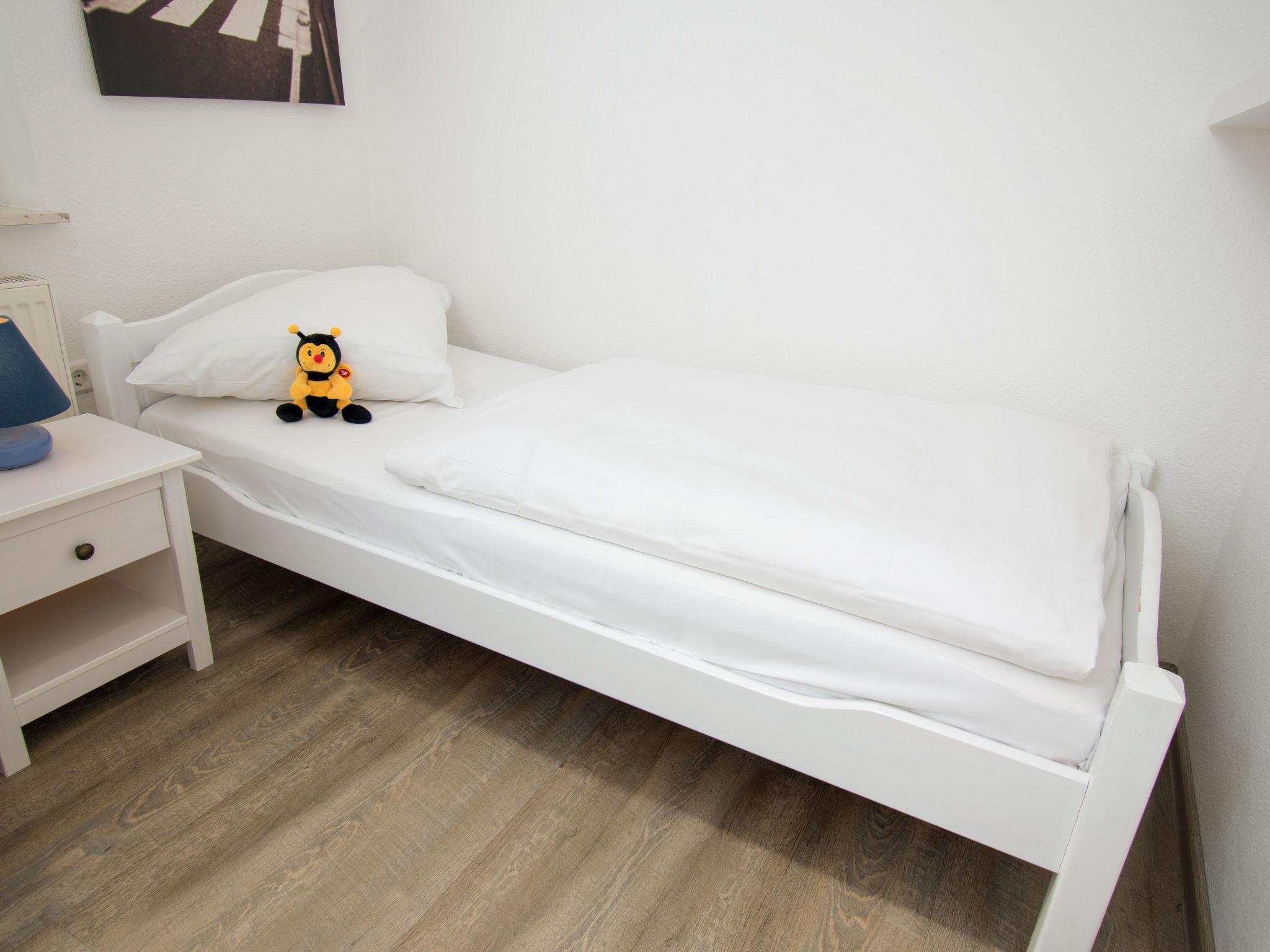 "Strandmuschel", 3-room apartment 56 m2, on the ground floor. Beautiful and cosy furnishings: living/dining room 22 m2 with satellite TV (flat screen), radio and CD-player. Exit to the garden, to the terrace. 1 room 20 m2 with 1 double bed (2 x 90 cm, length 200 cm). 1 room 6 m2 with 2 beds (90 cm, length 200 cm). Small kitchen (2 ceramic glass hob hotplates, electric coffee machine, pizza oven). Shower/WC. Terrace furniture, barbecue (portable). Facilities: children's high chair (extra). Please note: non-smokers only.