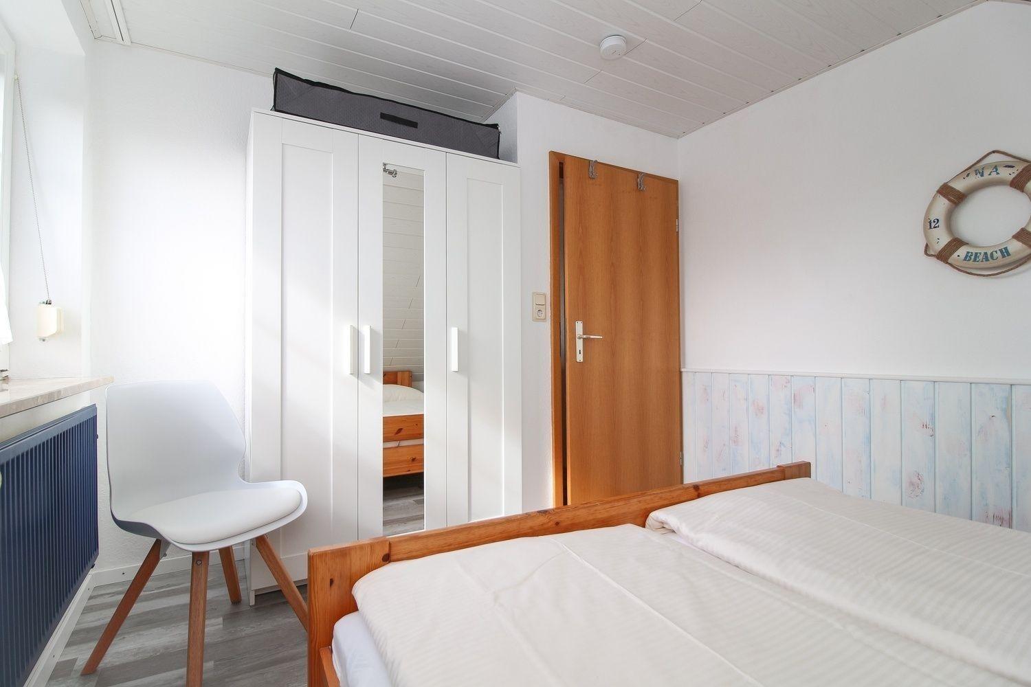 Das zweite Schlafzimmer beinhaltet zwei Einzelbetten und ebenfalls einen Kleiderschrank.