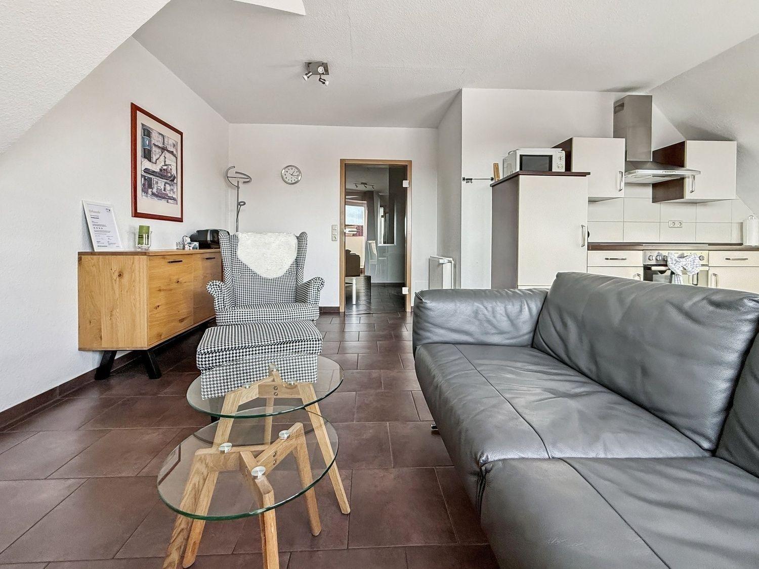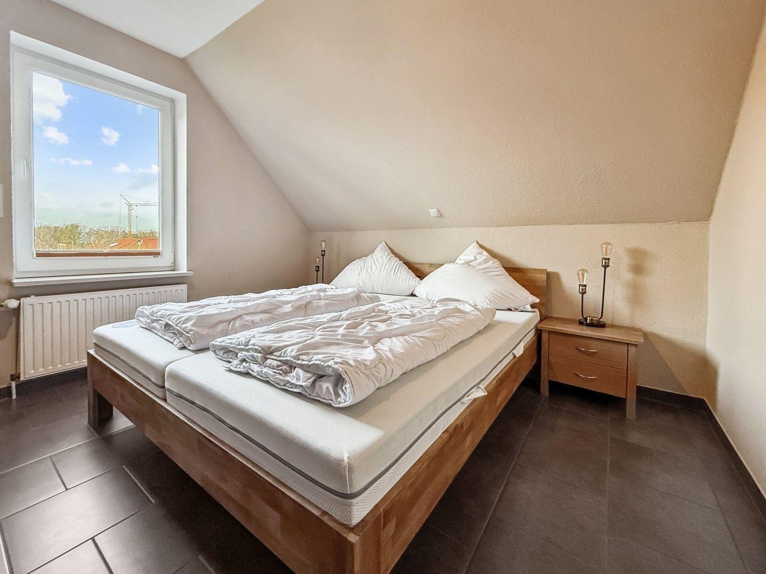 Genießen Sie Ihren Urlaub in der großzügigen Dachgeschosswohnung. Auf 75 qm verteilen sich zwei Schlafzimmer, ein großer Wohnraum( ca. 30qm), ein Büro sowie ein Bad.