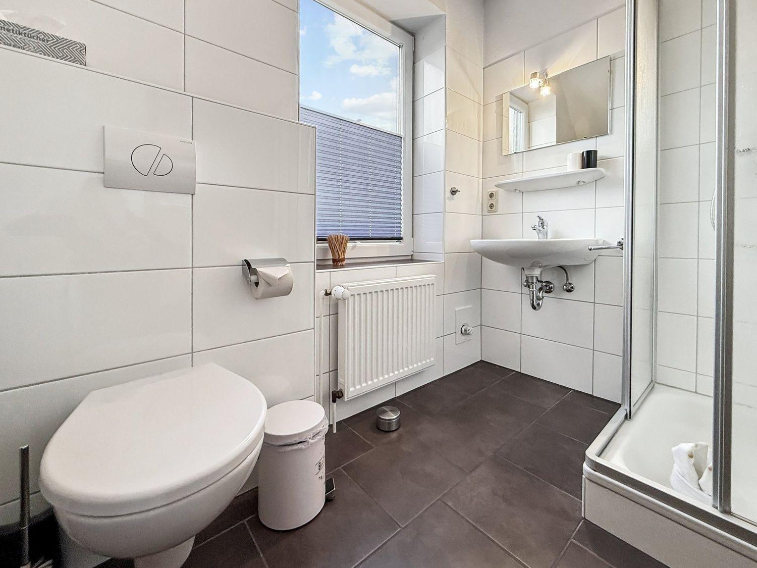 Das Tageslichtbad bietet eine Dusche, ein WC und ein Waschbecken .Die Waschmaschine findet dort ebenfalls Ihren Platz.