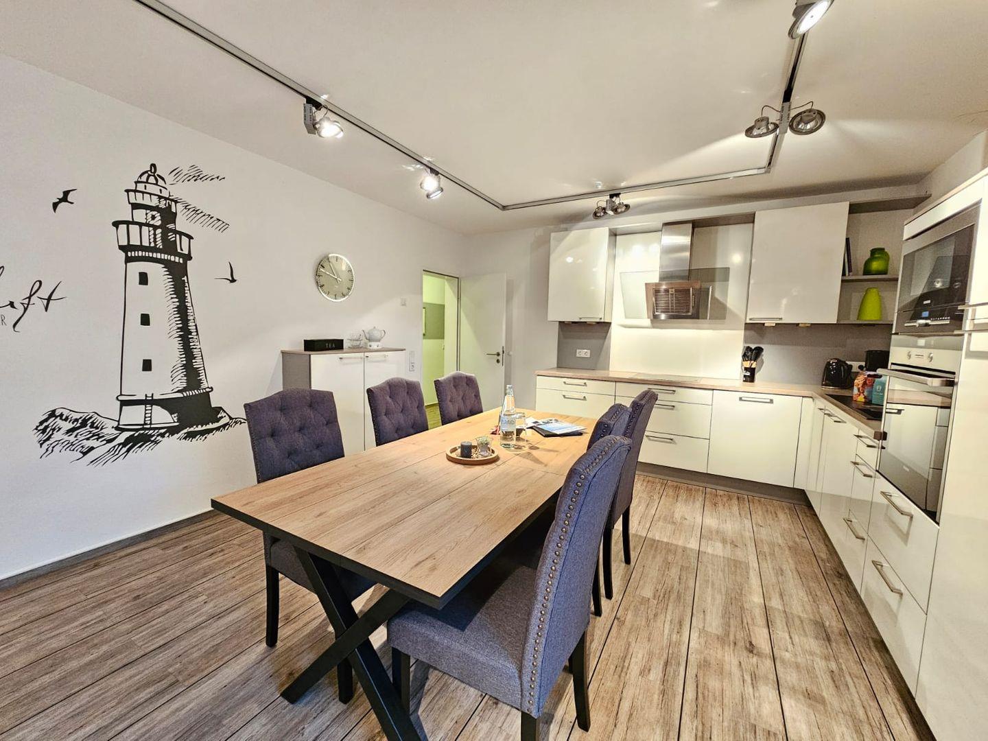 Die moderne Erdgeschoss-Ferienwohnung „Fiete“ in Norddeich bietet Ihnen ein helles, stilvolles Zuhause für Ihren Nordseeurlaub. Die Wohnung verfügt über zwei gemütliche Schlafzimmer für erholsame Nächte und einen großen, offenen Wohn- und Essbereich, der zum gemeinsamen Entspannen und Genießen einlädt.