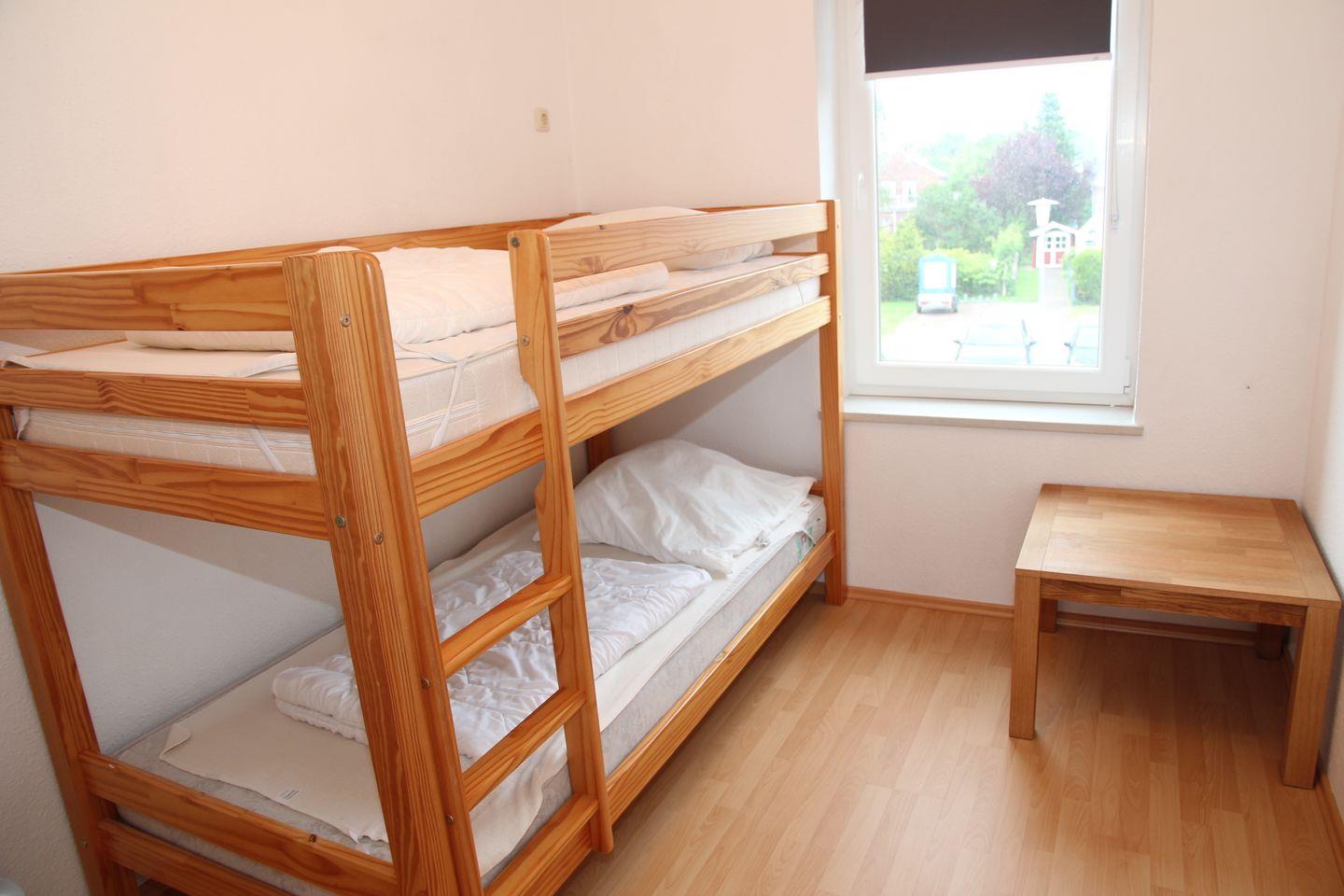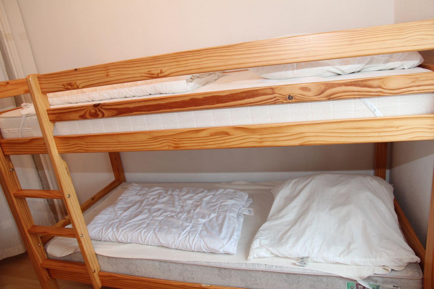 2 Schlafräume, eins mit einem Doppelbett und einmal 1 Etagenbett. Dusche-WC mit Waschmaschine. Balkon mit Mobiliar. Die Schlafräume können mit Rollos verdunkelt werden.