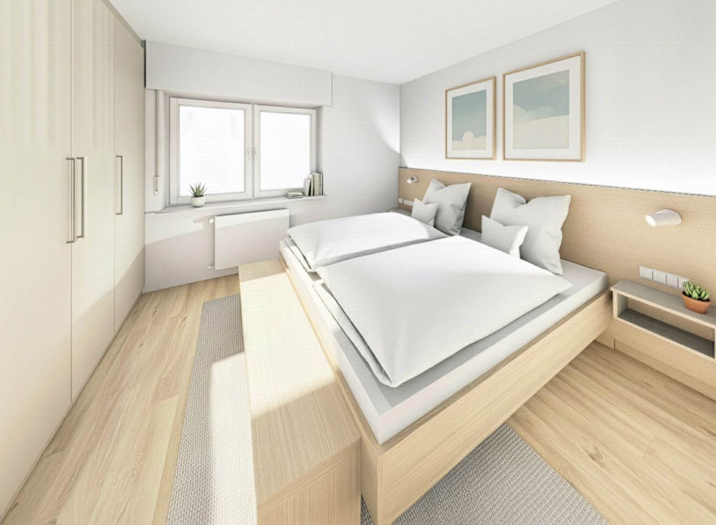 - Separates Schlafzimmer mit Doppelbett und geräumigem Kleiderschrank