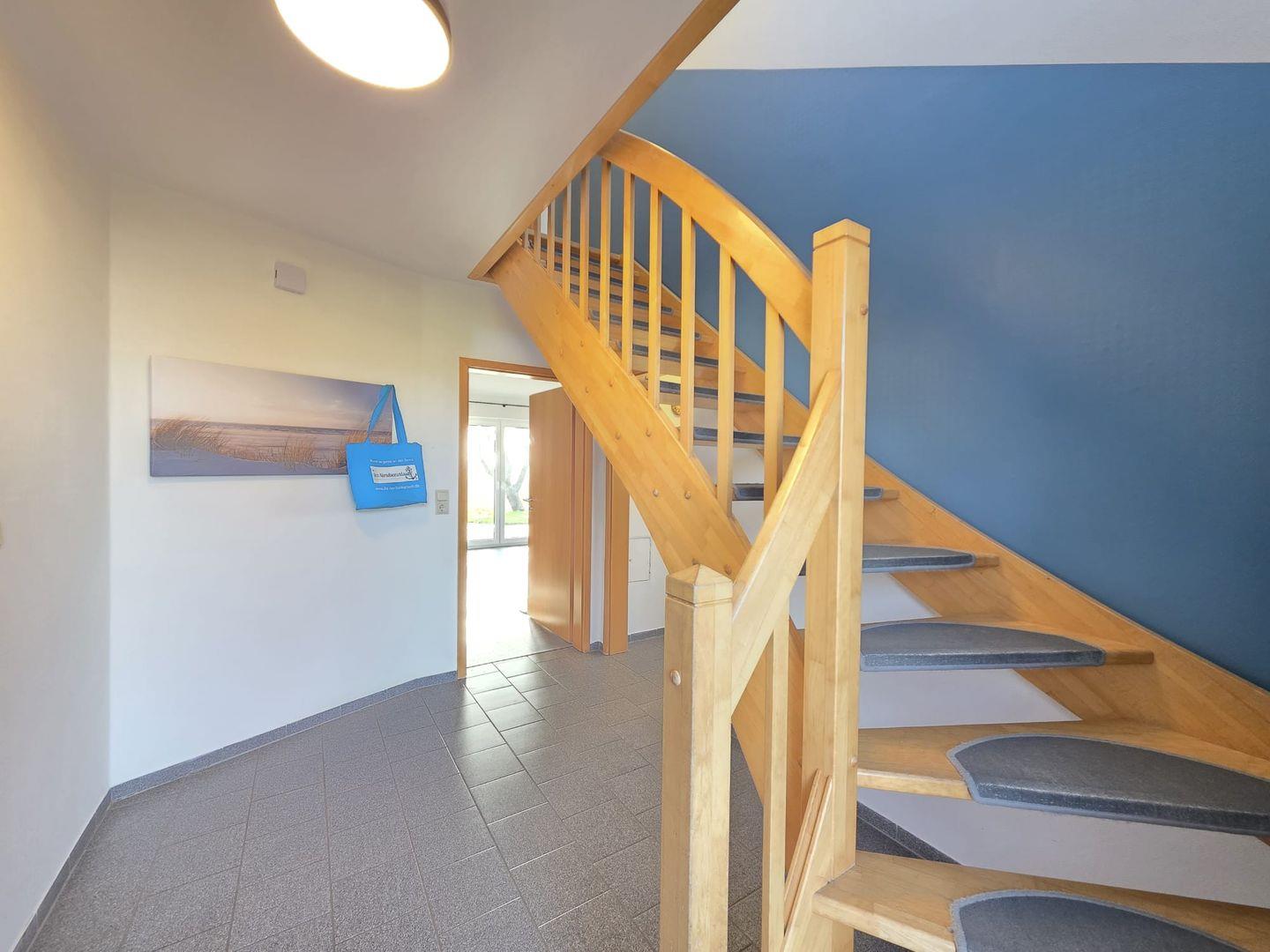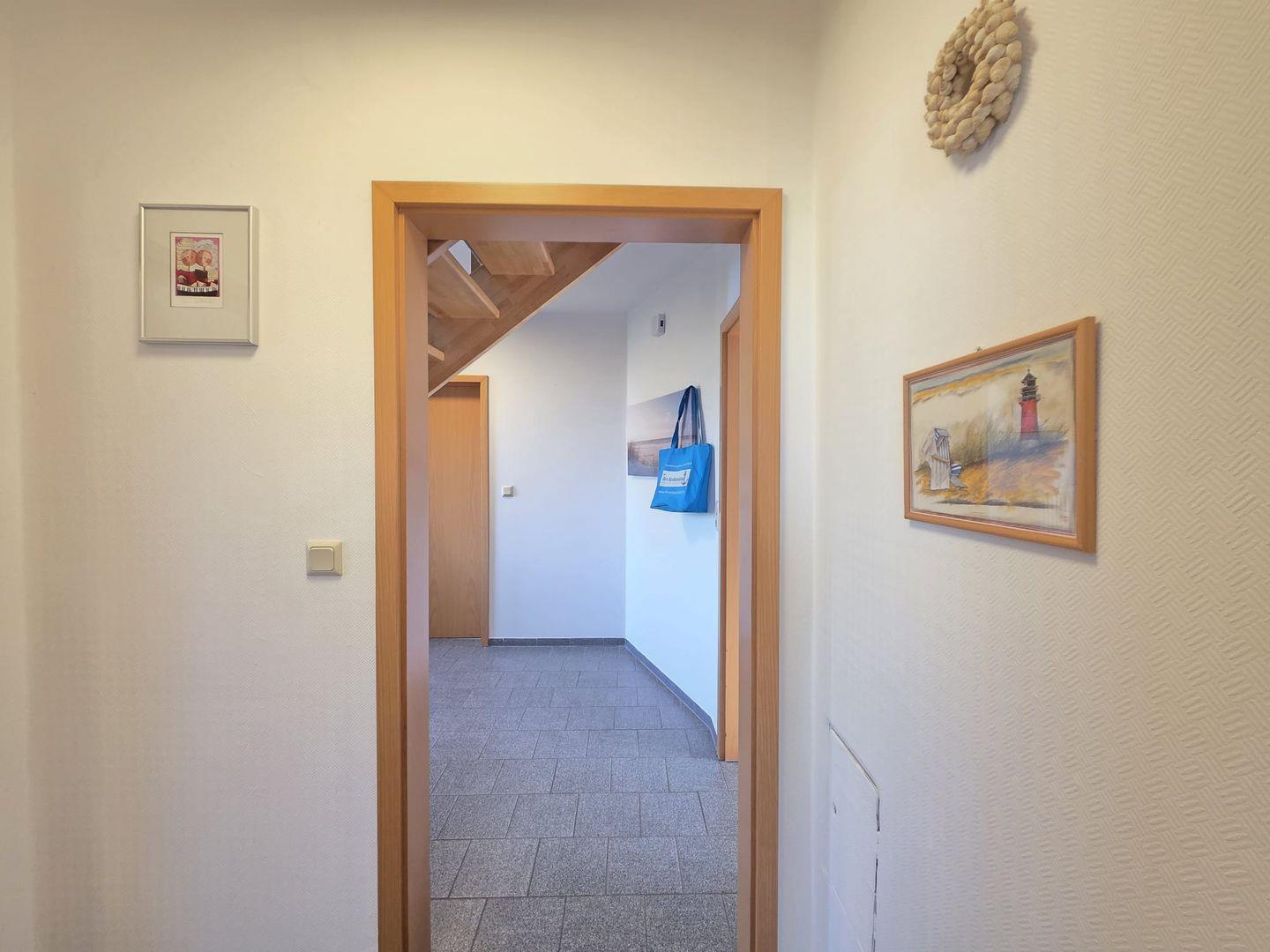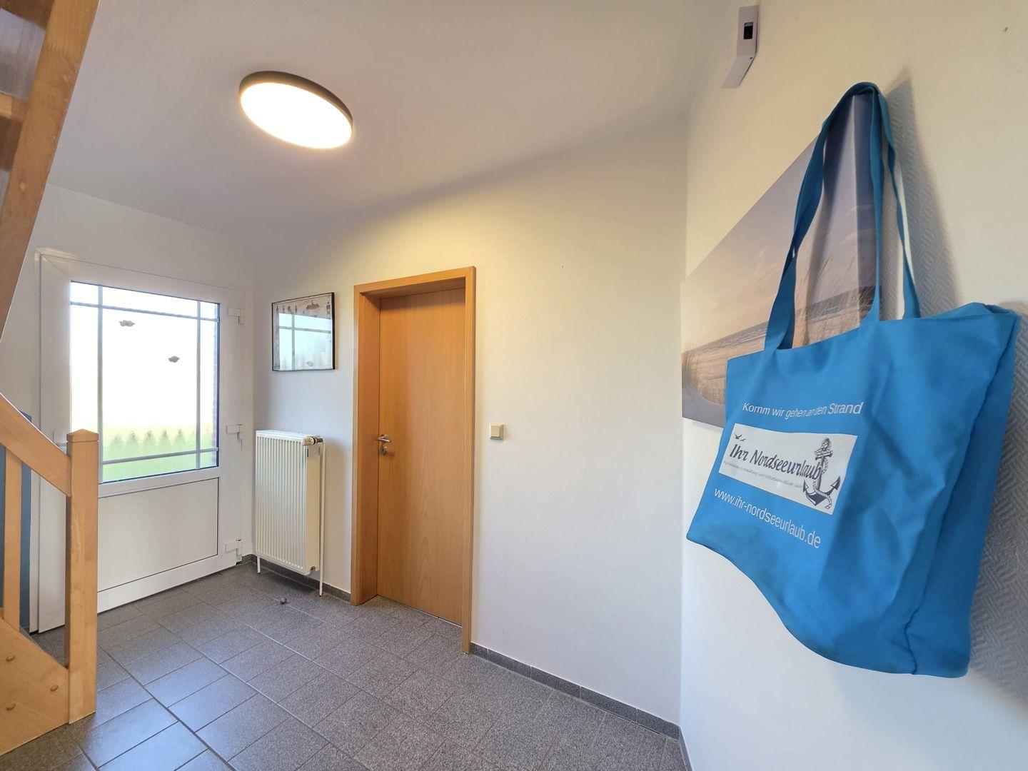 Das Ferienhaus liegt in ruhiger Lage in Norddeich, nur wenige Schritte vom Deich entfernt. Strand, Restaurants, Cafés und Einkaufsmöglichkeiten sind bequem zu Fuß oder mit dem Fahrrad erreichbar. Der Blick auf den Deich sorgt schon morgens für echtes Nordseegefühl.