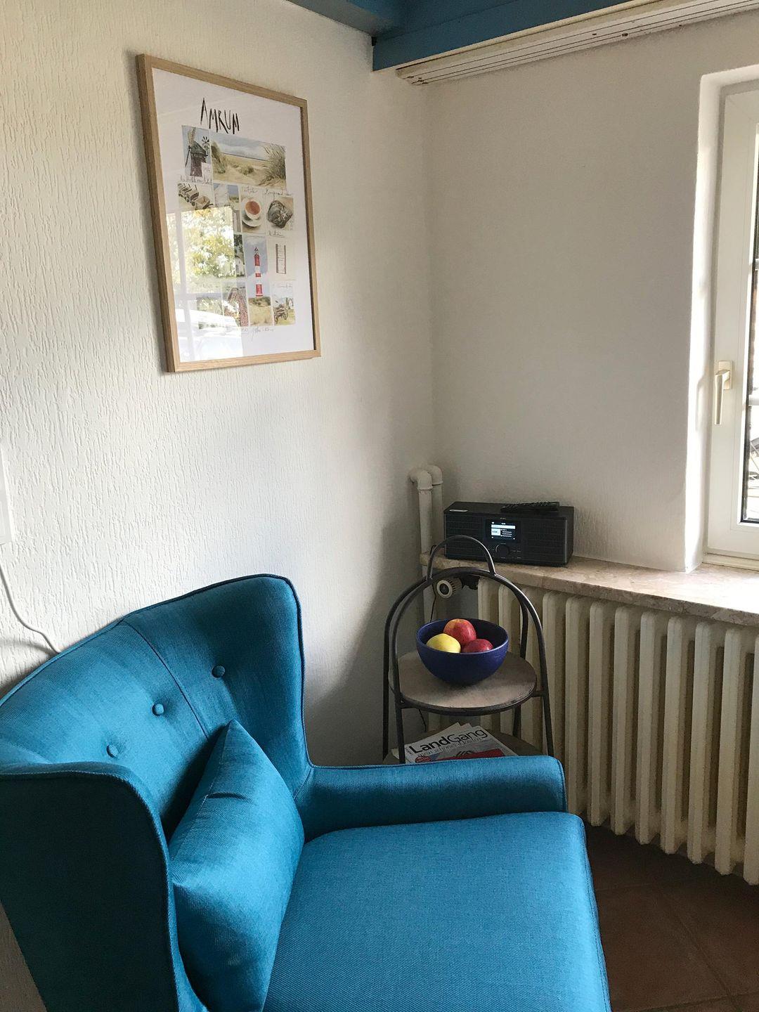 Ferienwohnung *Frisia 6* im Erdgeschoss des Hauses *Frisia* in Norddorf auf Amrum ist eine 3-Zimmer-Ferienwohnung (ca. 71 qm Grundfläche) mit Schlafmöglichkeiten für bis zu 1-5 Personen mit Blick auf die Salzwiesen, das Wattenmeer in Richtung Föhr.