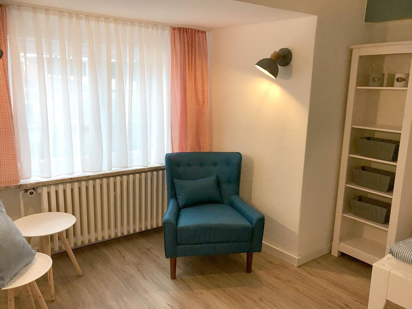 Die Ferienwohnung verfügt über 1 Wohnraum mit WLAN und Sat-TV und offener Küche, 2 Schlafzimmer, 1 Badezimmer mit Dusche und WC, Nord-Terrasse mit Gartenmöbeln und Strandkorb (April bis Oktober).
