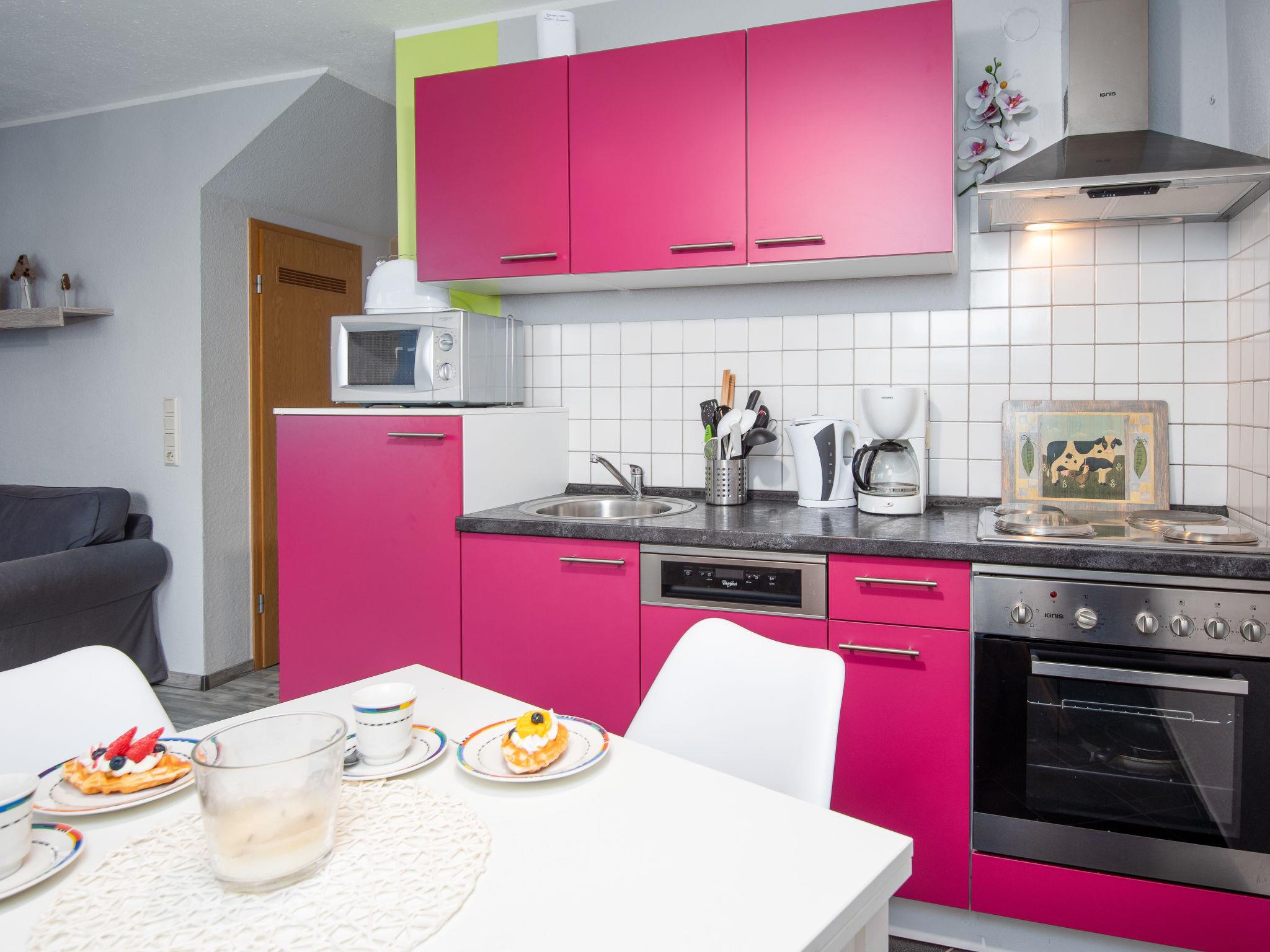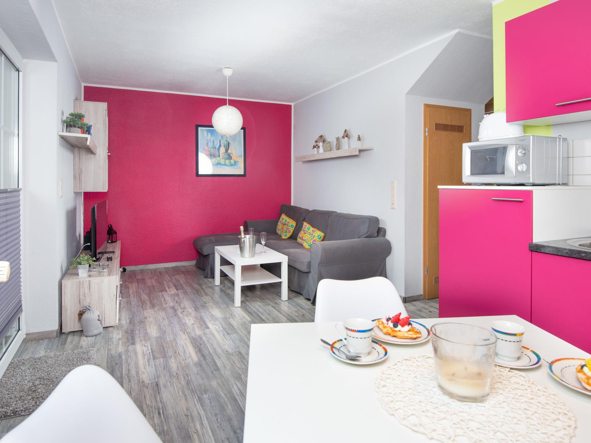 "Mars", 3-room apartment 54 m2, on the ground floor. Tasteful and cosy furnishings: living/dining room with satellite TV (flat screen). Exit to the terrace. 1 room with 1 double bed (2 x 90 cm, length 200 cm). 1 room with 2 beds (100 cm, length 200 cm). Kitchenette (4 hot plates, oven, dishwasher, toaster, kettle, microwave, electric coffee machine). Shower/WC. Terrace. Terrace furniture, barbecue. Facilities: Internet (WiFi, free). Please note: non-smokers only. Smoke alarm.