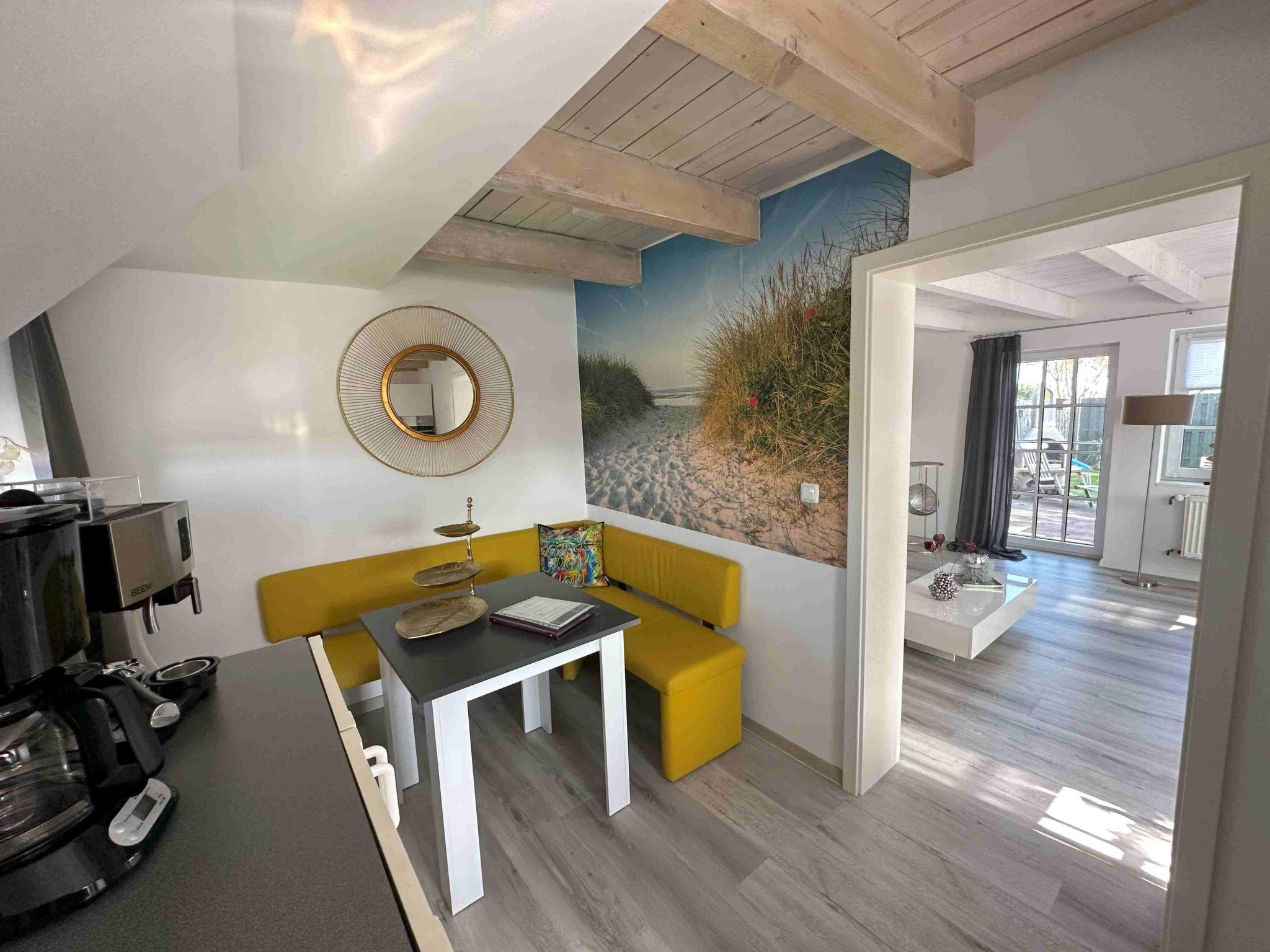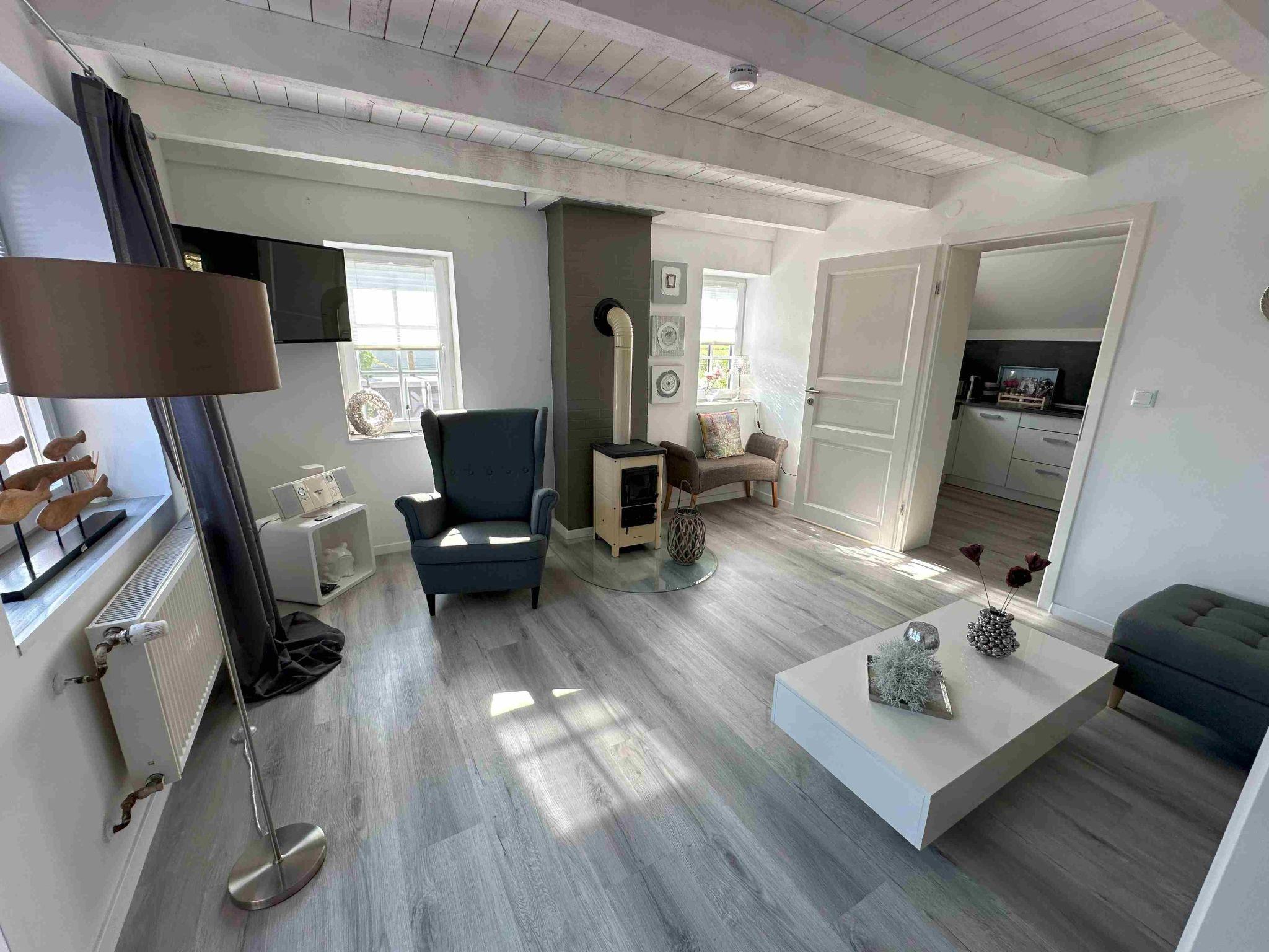 Inside, the semi-detached house impresses with high-quality furnishings that leave nothing to be desired. The cosy and bright living room invites you to linger, furnished with a corner sofa, a small wood-burning stove and direct access to the wooden terrace. The modern kitchen is fully equipped with all amenities such as a dishwasher, washing machine with tumble dryer, fridge, oven, coffee machine and other kitchen utensils. A large box-spring bed in the bedroom and a floor-to-ceiling shower in the bathroom also guarantee maximum comfort and relaxation.