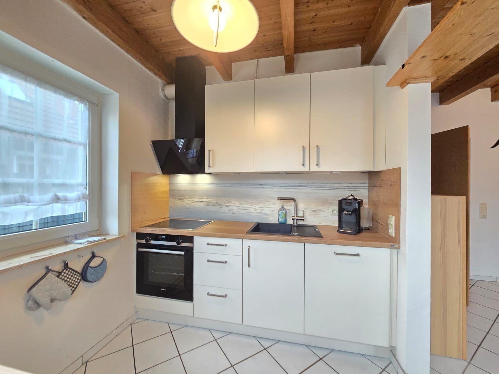 Diese großzügige Ferienwohnung bietet auf 3 Schlafzimmern Platz für Erholung und Entspannung. Ausgestattet mit zwei Doppelbetten und zwei Einzelbetten, ist sie ideal für Familien oder Gruppen. Die offene Küche ist ein Highlight und verfügt über alle modernen Annehmlichkeiten, darunter einen Geschirrspüler, Elektro-/Gasherd, Backofen, Mikrowelle und Kühlschrank. Eine Kaffeemaschine und ein Toaster stehen ebenfalls bereit.