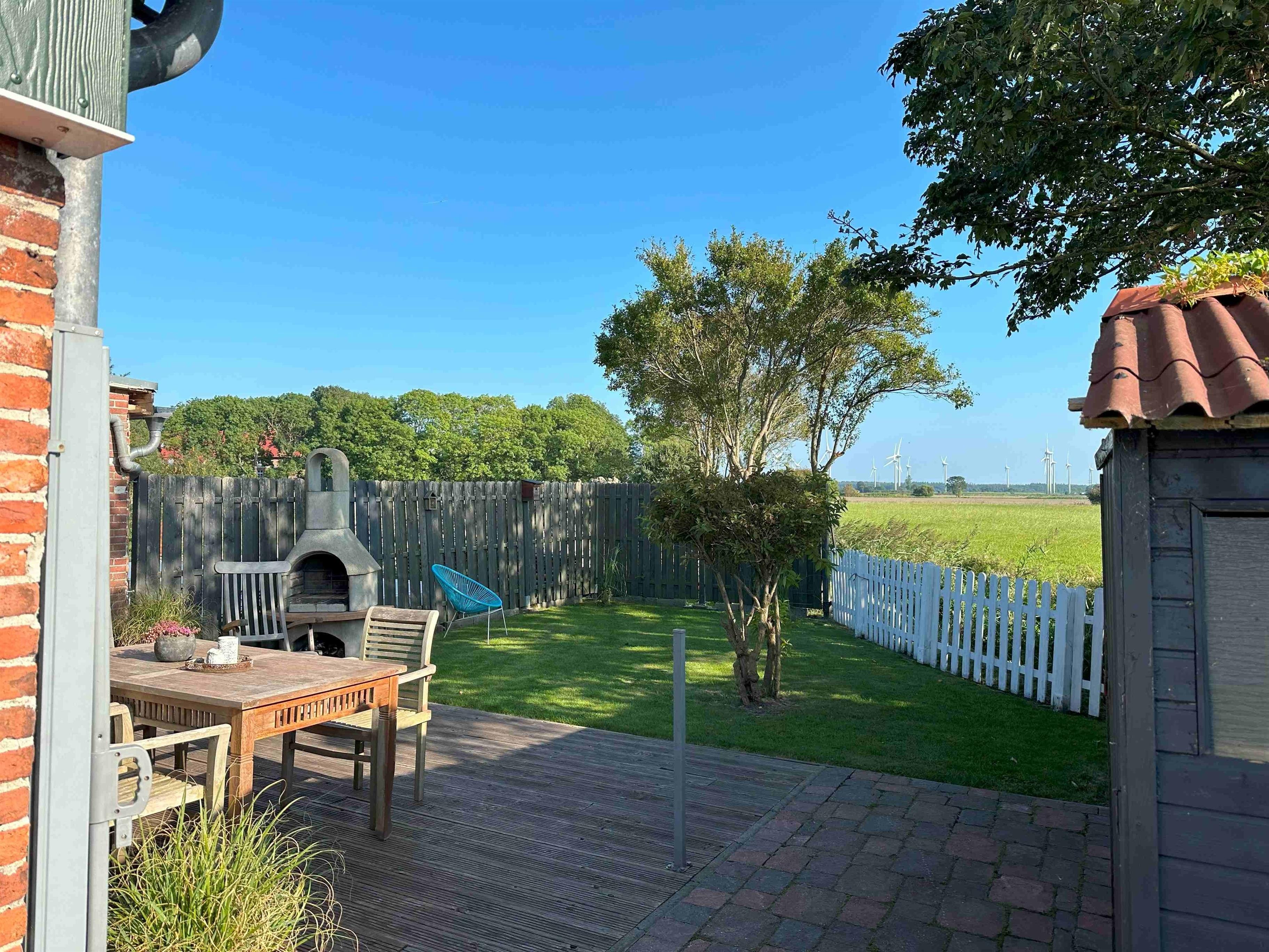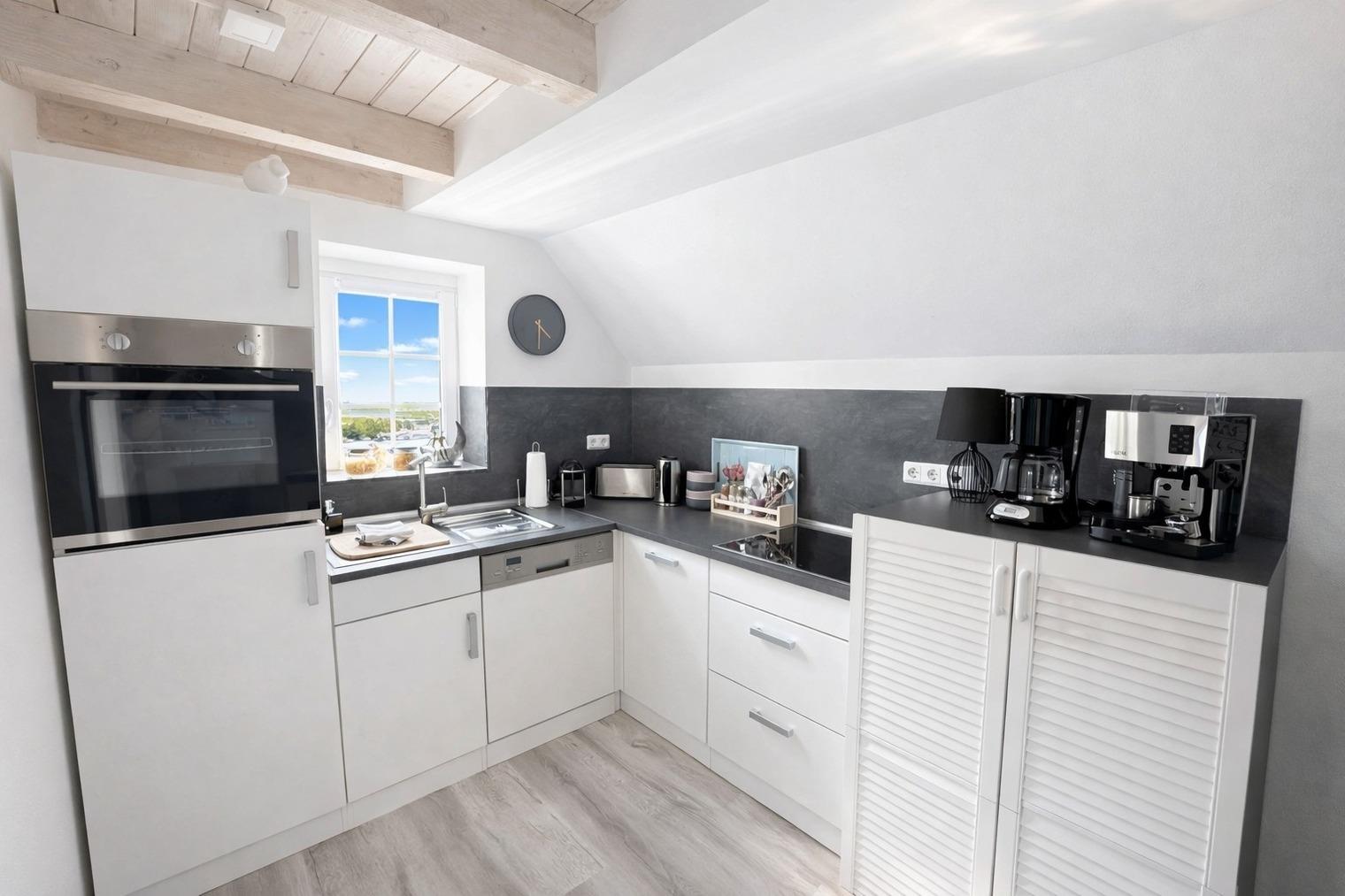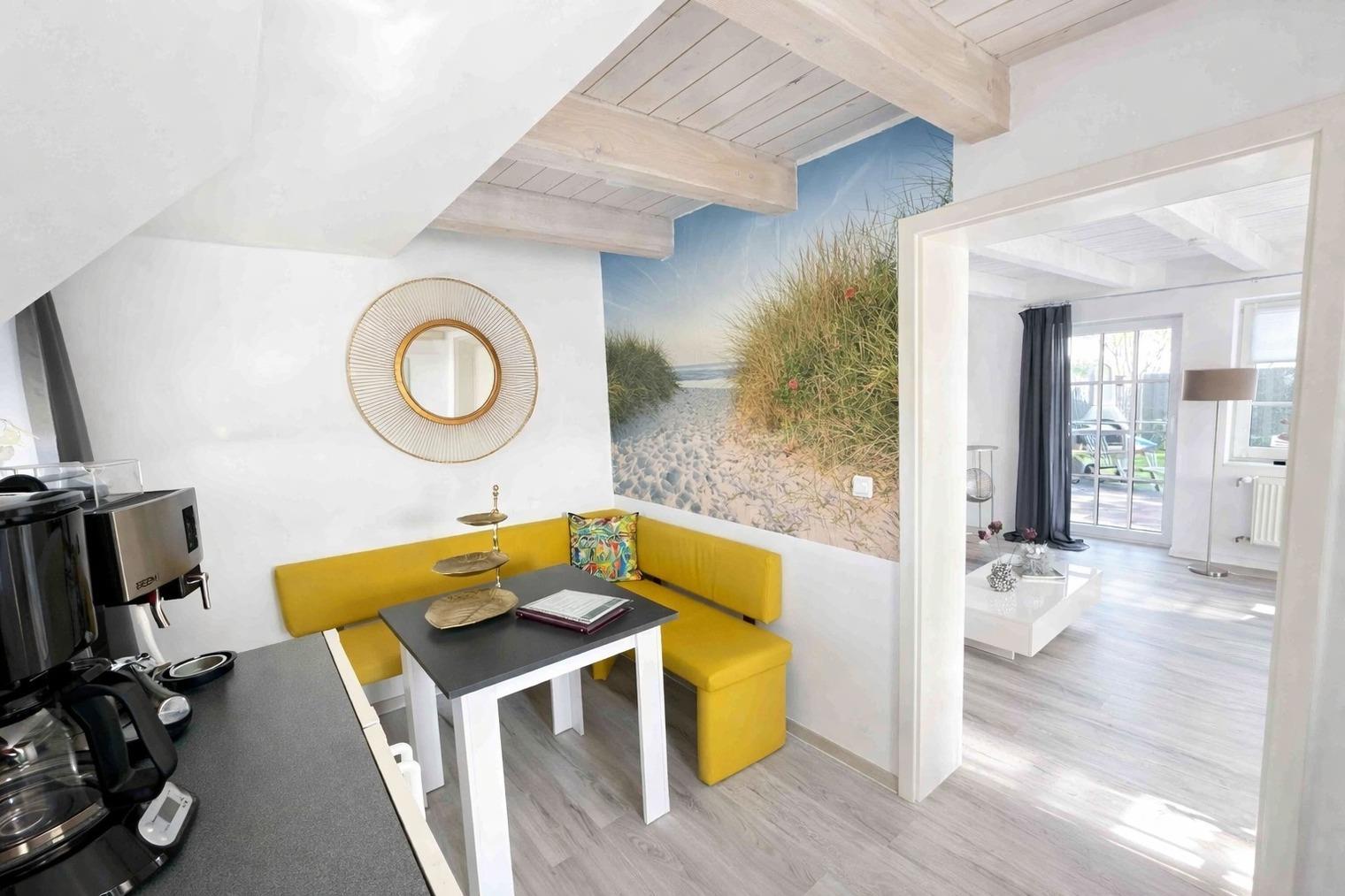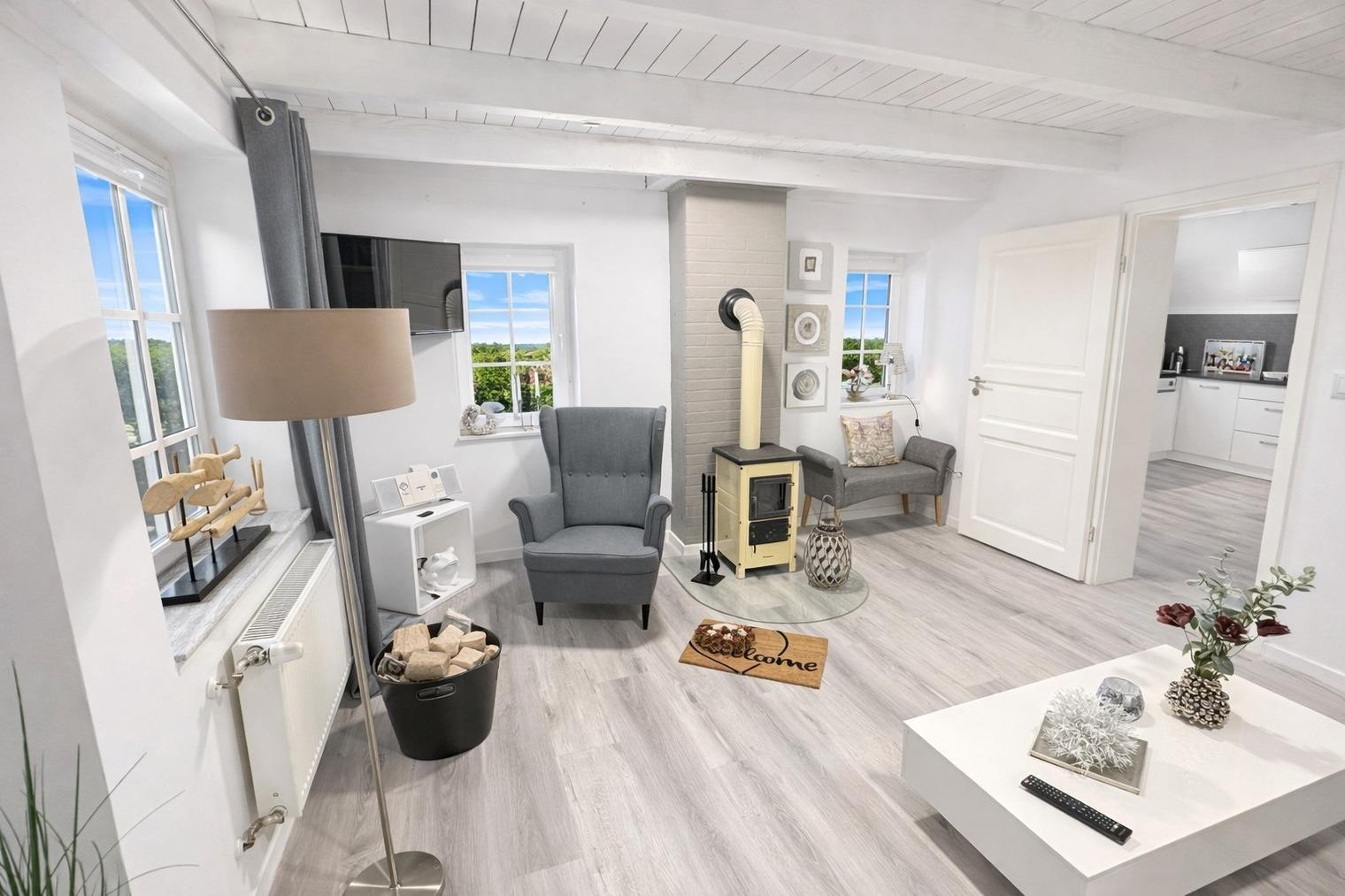 ?? **Huus an´t Diek – Stilvolle Maisonette-Ferienwohnung in Deichnähe** ?? Willkommen im **„Huus an´t Diek“**, Ihrer gemütlichen Maisonette-Ferienwohnung im idyllischen Norden, Ortsteil **Ostermarsch**. In ruhiger Lage, nur ca. **900 Meter vom Deich und der Nordsee entfernt**, erwartet Sie ein liebevoll eingerichtetes Feriendomizil mit Wohlfühlgarantie und typisch ostfriesischem Charme ??. Bereits von der Straße aus genießen Sie den Blick auf den **Leuchtturm von Norderney** – ein echtes Highlight und der perfekte Urlaubsauftakt ??. --- ?? **Wohnen & Genießen** Die helle und moderne **Doppelhaushälfte** bietet alles, was Sie für einen entspannten Aufenthalt benötigen. ??? **Voll ausgestattete Küche** Die Küche verfügt über: • Spülmaschine • Waschmaschine mit Trocknerfunktion • Kühlschrank • Cerankochfeld & Backofen • Kaffeemaschinen, Toaster & reichlich Geschirr Auf der gemütlichen **Eckbank** frühstücken Sie mit Blick Richtung Deich – hier beginnt jeder Urlaubstag besonders schön ???. ??? **Wohnzimmer** Das freundliche Wohnzimmer lädt mit kleiner Eckcouch, **Smart-TV** ?? und einem **Kaminofen** ?? (Holz bitte selbst mitbringen) zu entspannten Abenden ein. Von hier aus gelangen Sie direkt auf die **Holzterrasse**. --- ?? **Terrasse & Garten** Die Terrasse führt in einen kleinen, gepflegten **Garten mit weitem Blick**. Zur Ausstattung gehören: • Strandkorb ?? • Holzkohlegrill ?? • Gartentisch mit 4 Stühlen Perfekt für sonnige Stunden, gemütliche Grillabende oder einfach zum Abschalten ??. --- ??? **Schlafen & Bad** Das **Schlafzimmer** ist ausgestattet mit: • komfortablem **Boxspringbett (180 × 200 cm)** • gemütlichem Ohrensessel • **Smart-TV** ?? Ideal für erholsame Nächte ??. ?? **Badezimmer** Das moderne Bad verfügt über eine **bodentiefe Dusche mit Regendusche**. ?? Handtücher sind selbstverständlich inklusive. --- ?? **Lage & Umgebung** Bis zum Deich sind es nur wenige Minuten mit dem Fahrrad ??. Dort genießen Sie den freien Blick auf die **Nordsee** – mit der Insel **Norderney** am Horizont ??. Ostermarsch liegt ideal zwischen **Norddeich und Neßmersiel**. Von hier erreichen Sie: • Sandstrände, Häfen & Freizeitangebote • Fähren zu den Inseln **Norderney, Juist & Baltrum** ?? • wunderschöne Radwege direkt am Deich ?? Ein kleiner Flughafen in der Nähe bietet zudem **Rundflüge zu den Inseln** an – ein besonderes Erlebnis! --- ?? **Ideal für Paare** Die Maisonette-Wohnung ist **ideal für zwei Gäste**. Kinder sind herzlich willkommen, schlafen jedoch auf der Couch oder auf mitgebrachten Schlafmöglichkeiten. --- ?? **Service & Tipps vor Ort** • ?? **Kostenloser Parkplatz** direkt am Haus • ?? **Fahrradverleih Gäde** (inkl. E-Bikes, Lieferung bis zur Haustür): ?? [www.fahrradservice-norden.de](http://www.fahrradservice-norden.de) • ?? **Hofladen & Hofcafé Kleemann** (frische Eier, Kartoffeln, Kuchen) ?? Steinweg 18, 26506 Norden • ?? **Kleinste Waffelstube der Welt – Lüttje Hörn** • ?? **Frischer Fisch & Fischbrötchen:** Luth Eilts Fischimbiss • ?? **Waloseum & Seehundstation Norddeich** • ?? **Strandkorbvermietung Norddeich** (online buchbar) --- ?? **Virtueller Rundgang** Erleben Sie das Ferienhaus schon vorab mit unserem **360°-Rundgang**: ?? [https://my.matterport.com/show/?m=UFoDZLVLgrD](https://my.matterport.com/show/?m=UFoDZLVLgrD) --- ?? **Weitere Unterkunft** Die zweite Doppelhaushälfte **„Huus an´t Diek – Erdgeschosswohnung mit Pool“** (für bis zu 4 Personen, 2 Schlafzimmer) kann ebenfalls bei uns gebucht werden. --- ?? **Wir sind Ostfriesen und lieben unsere Küste.** Mit unseren liebevoll eingerichteten Ferienwohnungen möchten wir Ihnen einen **unvergesslichen Urlaub an der ostfriesischen Nordsee** ermöglichen. ? **Wir freuen uns auf Sie – im Huus an´t Diek.** ?