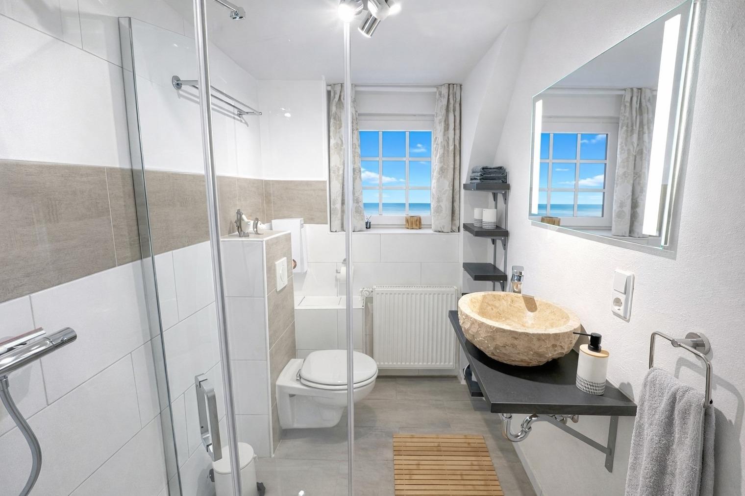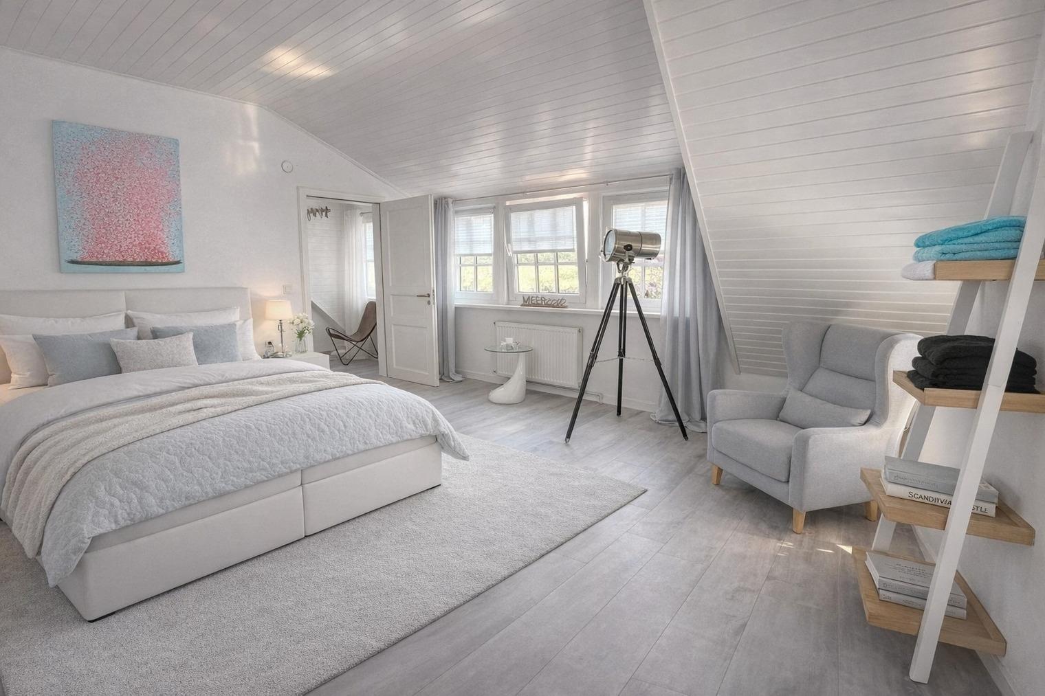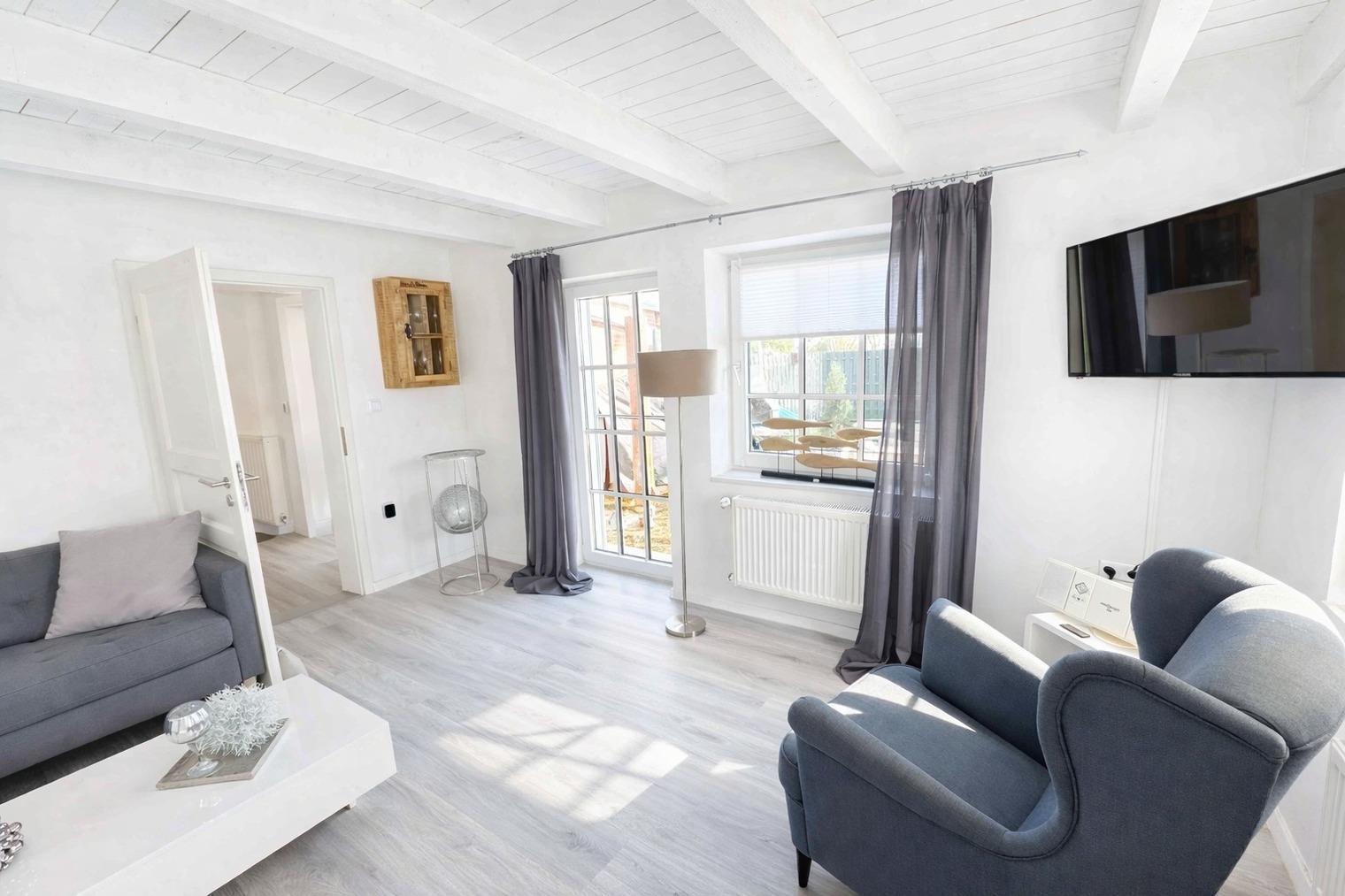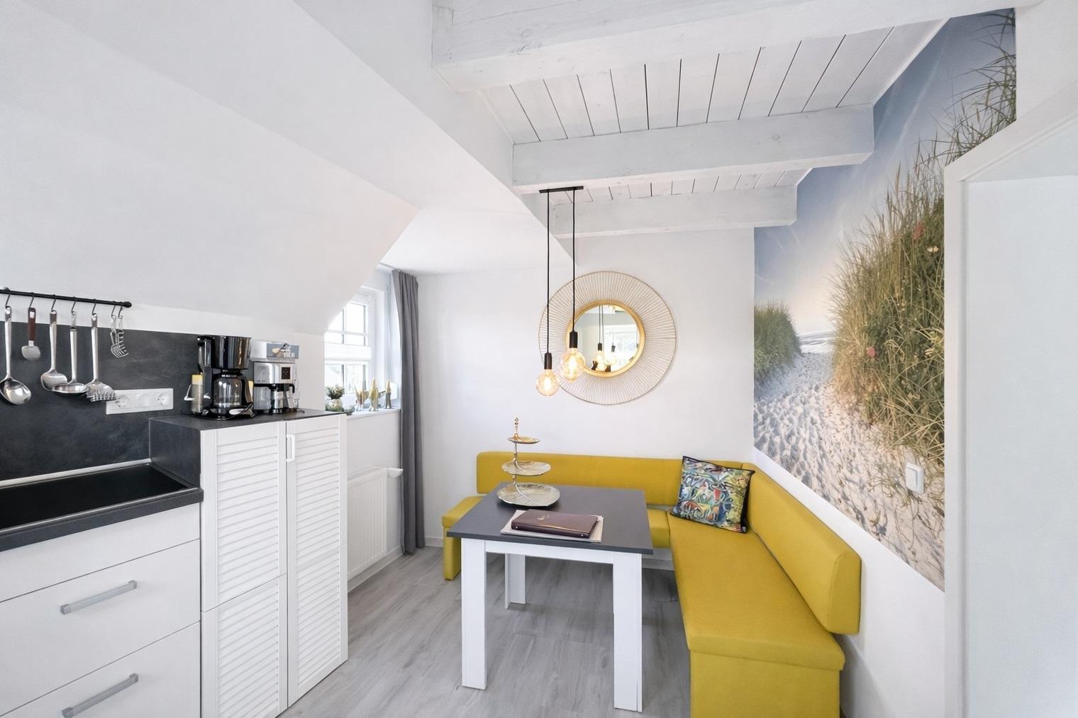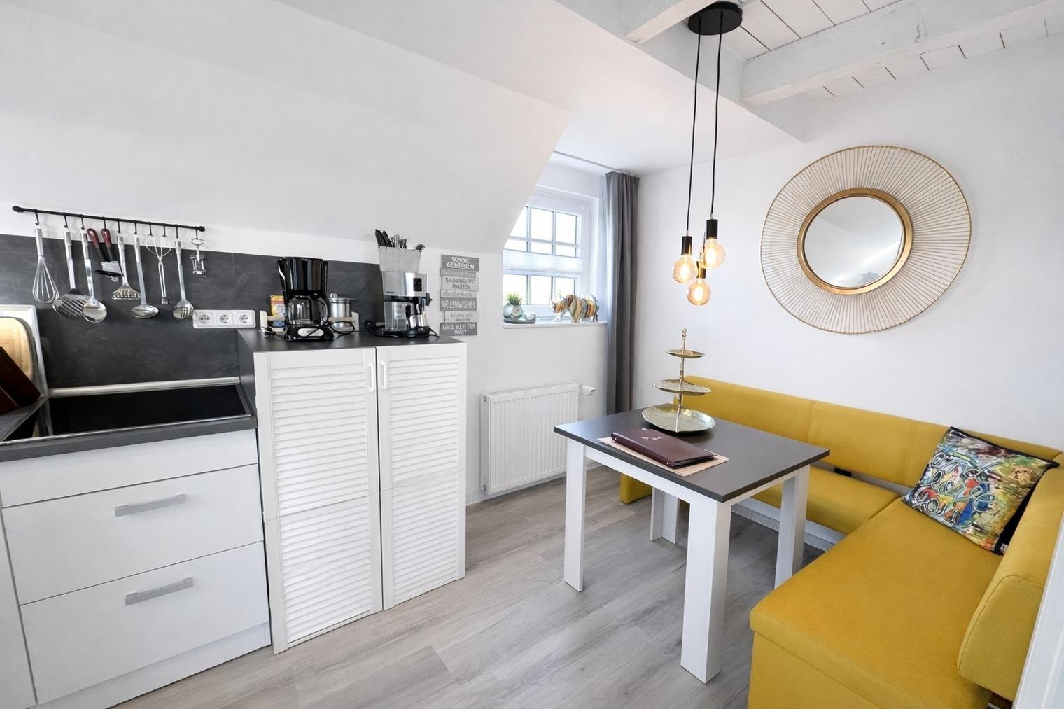 ?? **Huus an´t Diek – Stilvolle Maisonette-Ferienwohnung in Deichnähe** ?? Willkommen im **„Huus an´t Diek“**, Ihrer gemütlichen Maisonette-Ferienwohnung im idyllischen Norden, Ortsteil **Ostermarsch**. In ruhiger Lage, nur ca. **900 Meter vom Deich und der Nordsee entfernt**, erwartet Sie ein liebevoll eingerichtetes Feriendomizil mit Wohlfühlgarantie und typisch ostfriesischem Charme ??. Bereits von der Straße aus genießen Sie den Blick auf den **Leuchtturm von Norderney** – ein echtes Highlight und der perfekte Urlaubsauftakt ??. --- ?? **Wohnen & Genießen** Die helle und moderne **Doppelhaushälfte** bietet alles, was Sie für einen entspannten Aufenthalt benötigen. ??? **Voll ausgestattete Küche** Die Küche verfügt über: • Spülmaschine • Waschmaschine mit Trocknerfunktion • Kühlschrank • Cerankochfeld & Backofen • Kaffeemaschinen, Toaster & reichlich Geschirr Auf der gemütlichen **Eckbank** frühstücken Sie mit Blick Richtung Deich – hier beginnt jeder Urlaubstag besonders schön ???. ??? **Wohnzimmer** Das freundliche Wohnzimmer lädt mit kleiner Eckcouch, **Smart-TV** ?? und einem **Kaminofen** ?? (Holz bitte selbst mitbringen) zu entspannten Abenden ein. Von hier aus gelangen Sie direkt auf die **Holzterrasse**. --- ?? **Terrasse & Garten** Die Terrasse führt in einen kleinen, gepflegten **Garten mit weitem Blick**. Zur Ausstattung gehören: • Strandkorb ?? • Holzkohlegrill ?? • Gartentisch mit 4 Stühlen Perfekt für sonnige Stunden, gemütliche Grillabende oder einfach zum Abschalten ??. --- ??? **Schlafen & Bad** Das **Schlafzimmer** ist ausgestattet mit: • komfortablem **Boxspringbett (180 × 200 cm)** • gemütlichem Ohrensessel • **Smart-TV** ?? Ideal für erholsame Nächte ??. ?? **Badezimmer** Das moderne Bad verfügt über eine **bodentiefe Dusche mit Regendusche**. ?? Handtücher sind selbstverständlich inklusive. --- ?? **Lage & Umgebung** Bis zum Deich sind es nur wenige Minuten mit dem Fahrrad ??. Dort genießen Sie den freien Blick auf die **Nordsee** – mit der Insel **Norderney** am Horizont ??. Ostermarsch liegt ideal zwischen **Norddeich und Neßmersiel**. Von hier erreichen Sie: • Sandstrände, Häfen & Freizeitangebote • Fähren zu den Inseln **Norderney, Juist & Baltrum** ?? • wunderschöne Radwege direkt am Deich ?? Ein kleiner Flughafen in der Nähe bietet zudem **Rundflüge zu den Inseln** an – ein besonderes Erlebnis! --- ?? **Ideal für Paare** Die Maisonette-Wohnung ist **ideal für zwei Gäste**. Kinder sind herzlich willkommen, schlafen jedoch auf der Couch oder auf mitgebrachten Schlafmöglichkeiten. --- ?? **Service & Tipps vor Ort** • ?? **Kostenloser Parkplatz** direkt am Haus • ?? **Fahrradverleih Gäde** (inkl. E-Bikes, Lieferung bis zur Haustür): ?? [www.fahrradservice-norden.de](http://www.fahrradservice-norden.de) • ?? **Hofladen & Hofcafé Kleemann** (frische Eier, Kartoffeln, Kuchen) ?? Steinweg 18, 26506 Norden • ?? **Kleinste Waffelstube der Welt – Lüttje Hörn** • ?? **Frischer Fisch & Fischbrötchen:** Luth Eilts Fischimbiss • ?? **Waloseum & Seehundstation Norddeich** • ?? **Strandkorbvermietung Norddeich** (online buchbar) --- ?? **Virtueller Rundgang** Erleben Sie das Ferienhaus schon vorab mit unserem **360°-Rundgang**: ?? [https://my.matterport.com/show/?m=UFoDZLVLgrD](https://my.matterport.com/show/?m=UFoDZLVLgrD) --- ?? **Weitere Unterkunft** Die zweite Doppelhaushälfte **„Huus an´t Diek – Erdgeschosswohnung mit Pool“** (für bis zu 4 Personen, 2 Schlafzimmer) kann ebenfalls bei uns gebucht werden. --- ?? **Wir sind Ostfriesen und lieben unsere Küste.** Mit unseren liebevoll eingerichteten Ferienwohnungen möchten wir Ihnen einen **unvergesslichen Urlaub an der ostfriesischen Nordsee** ermöglichen. ? **Wir freuen uns auf Sie – im Huus an´t Diek.** ?